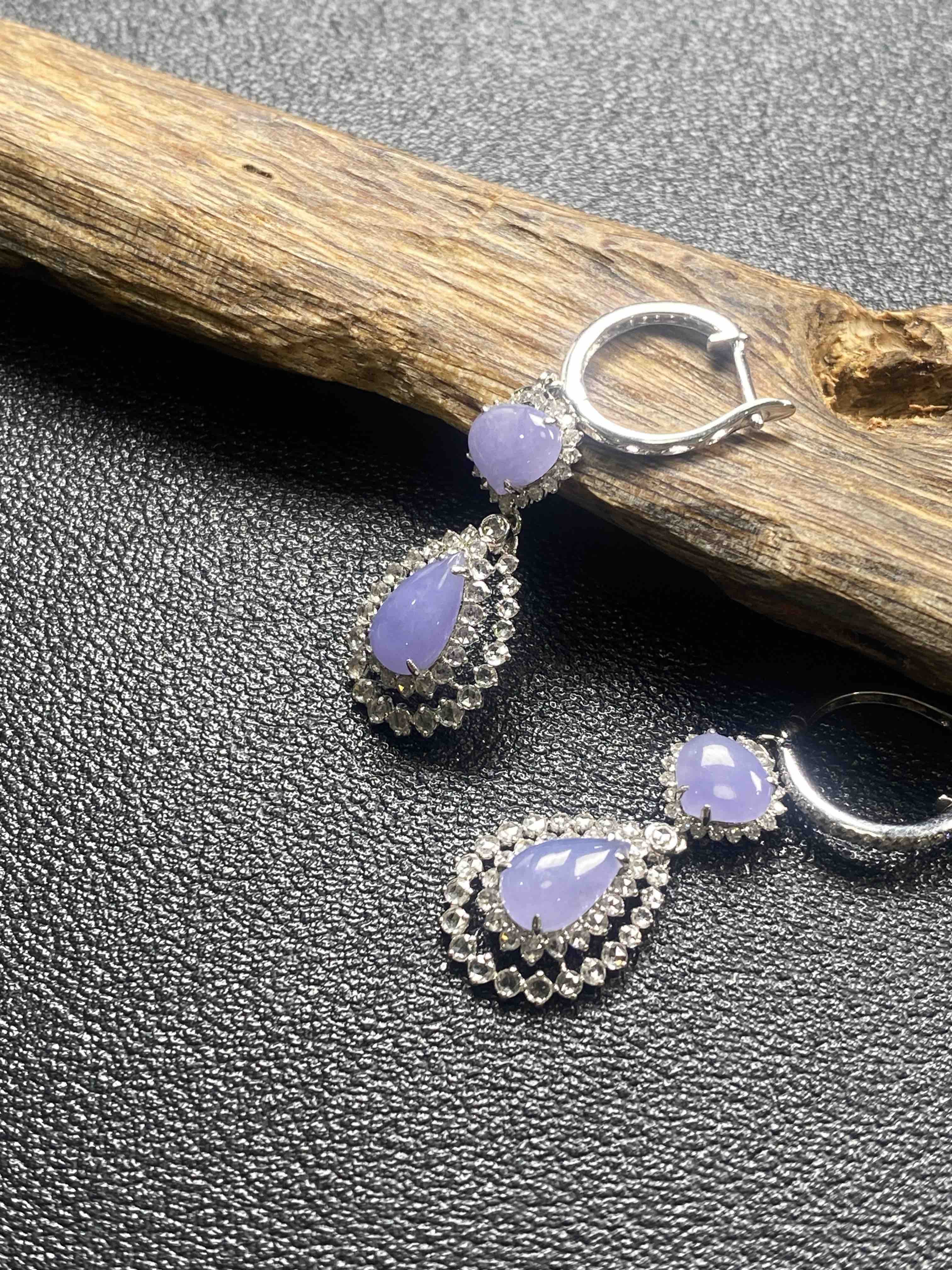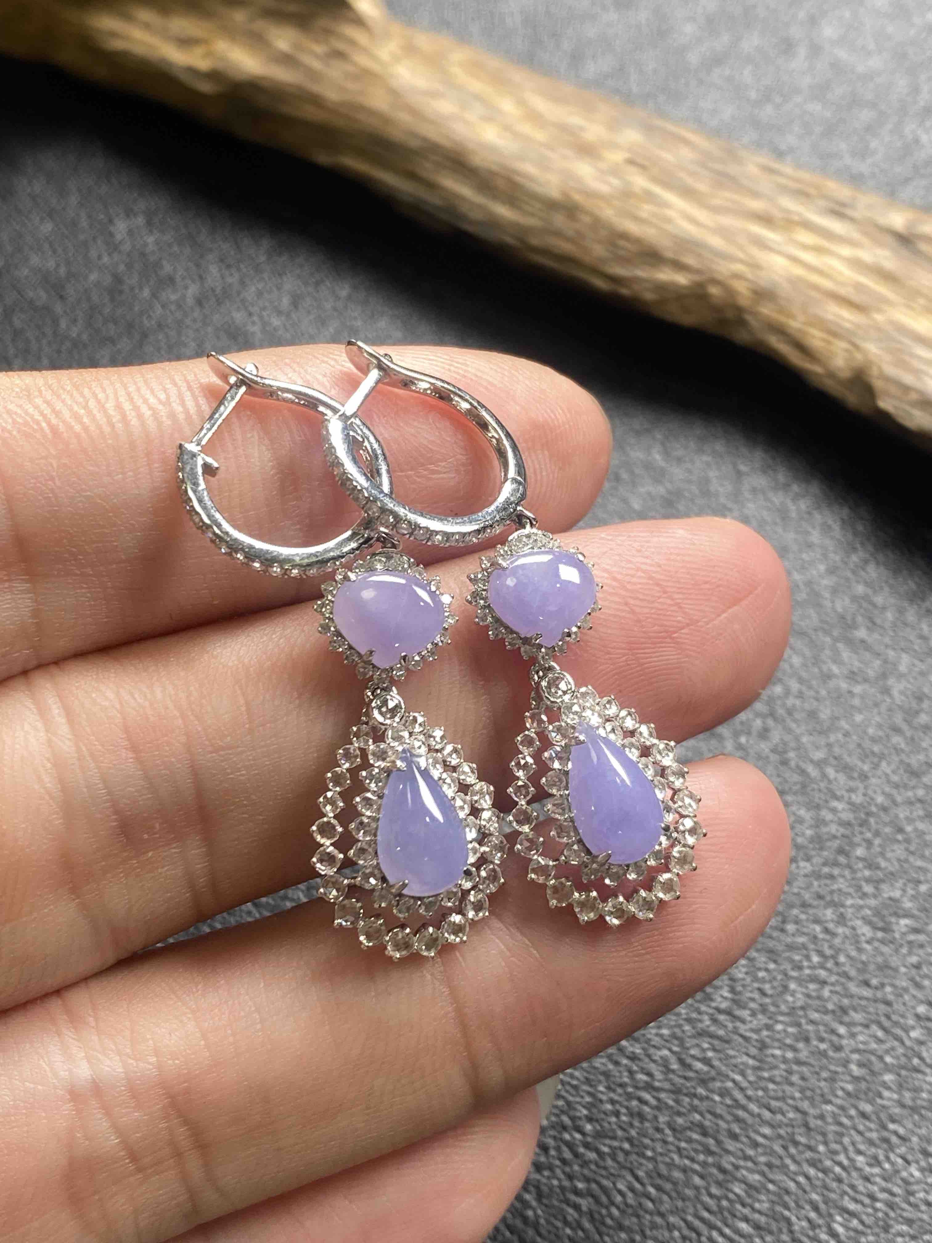 【FC0145】18K镶嵌翡翠冰紫水滴耳坠 色泽娇艳 款式精美 佩戴尽显优雅气质 裸石尺寸:8.5*5.2*3/5.6*6.5*2.8mm 超值价💰26000