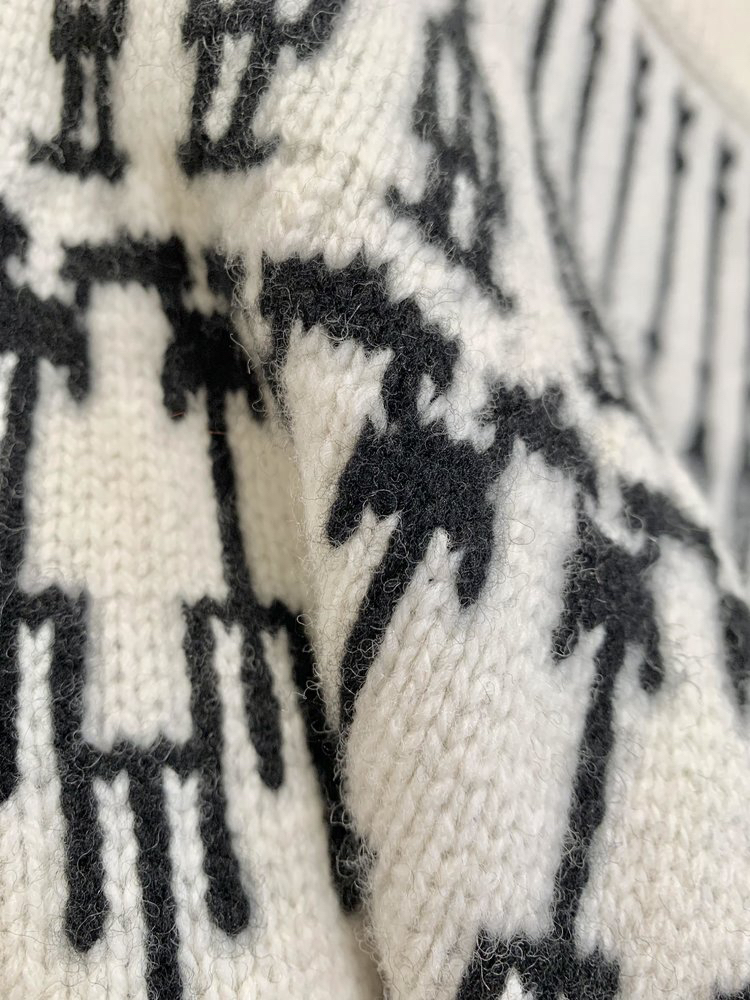 在错综复杂的几何图案上赋予灵魂织法,还原经典费尔岛毛衣的弧形图案,织造上更耗时耗功夫。