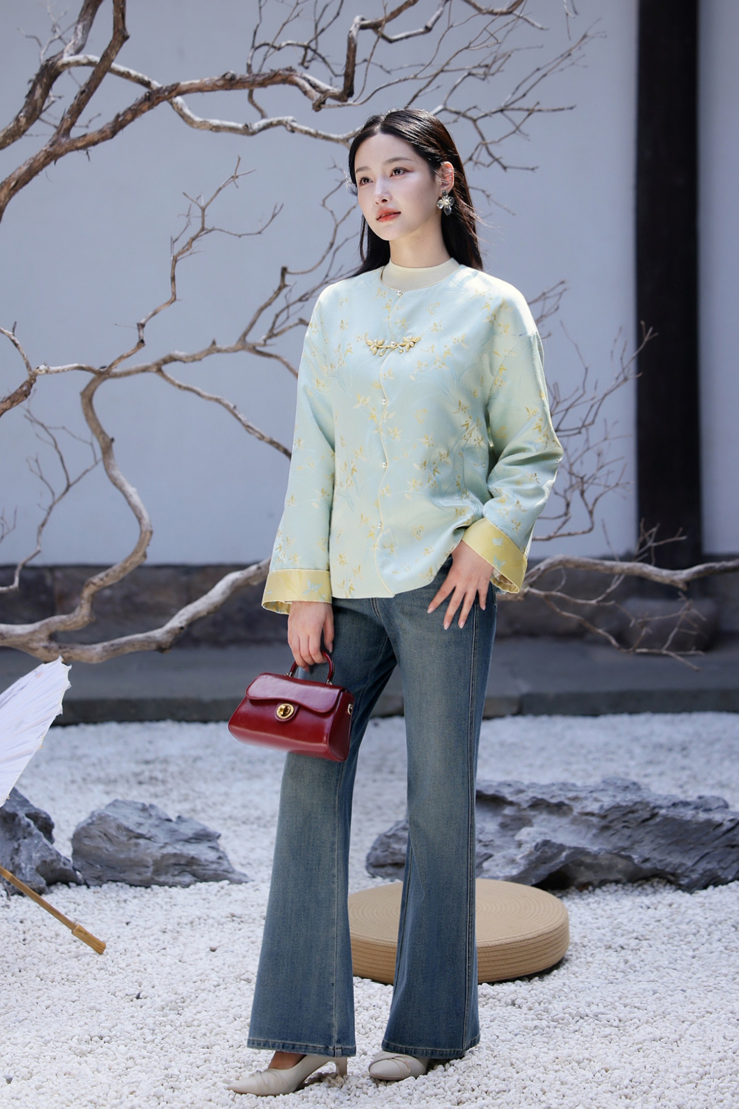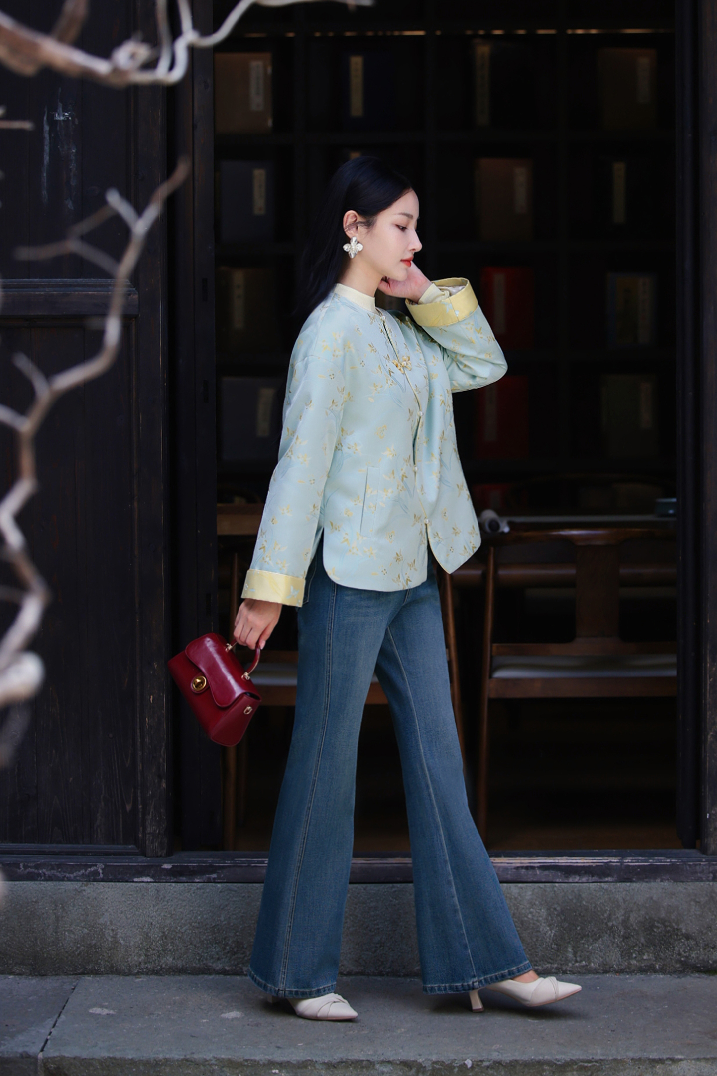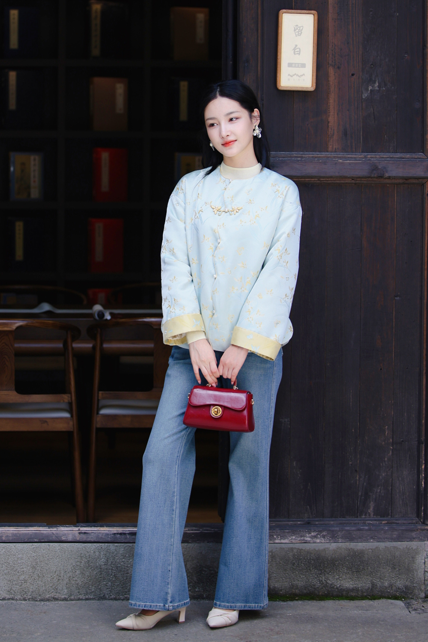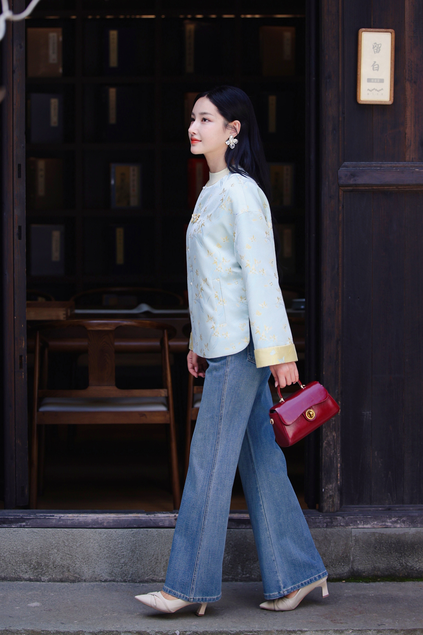牛仔裤嘛,本就是随性自在的感觉,所以能搭配新中式这种传统韵味的上衣,也就等于能搭配所有的上衣了。