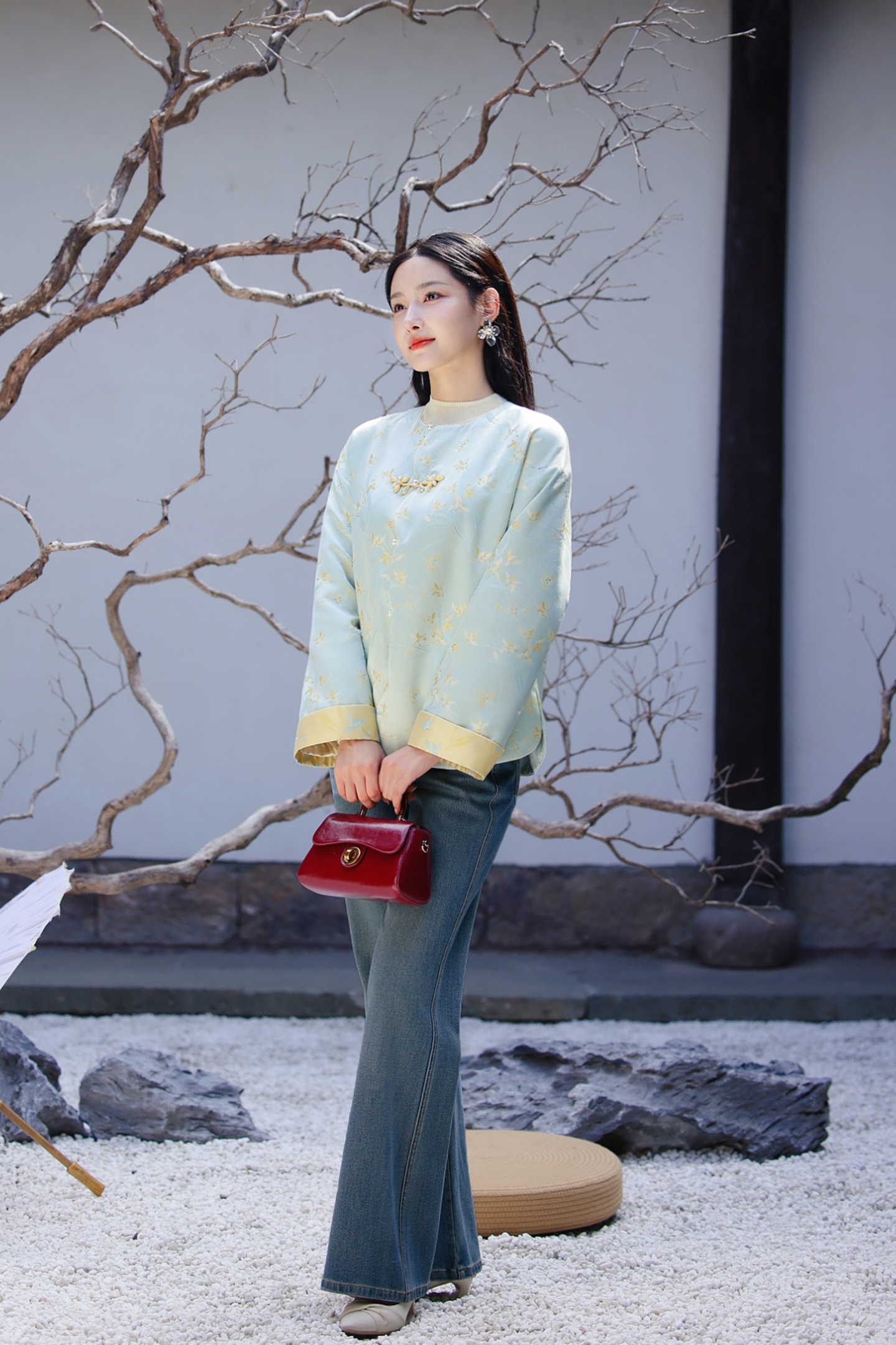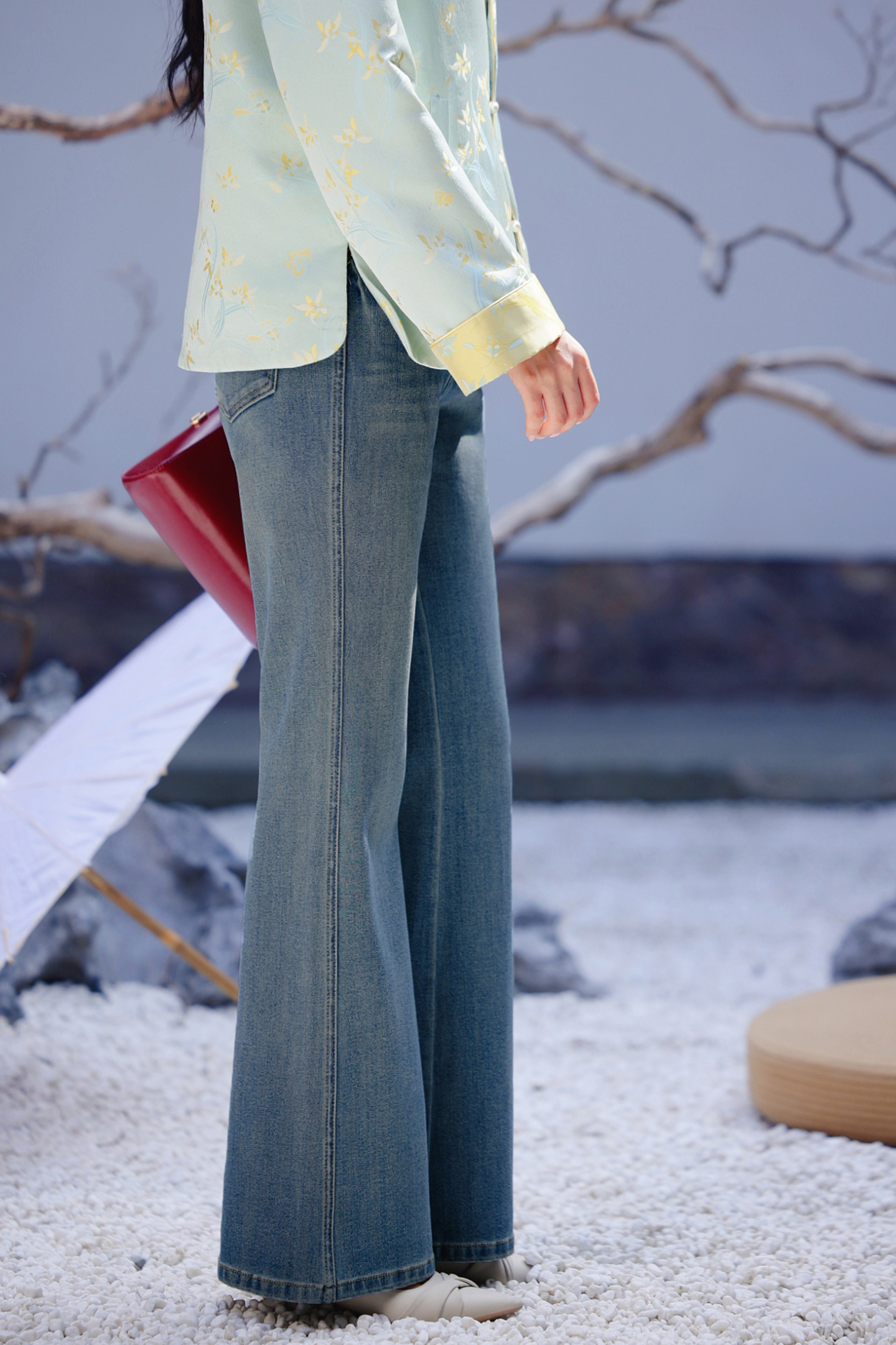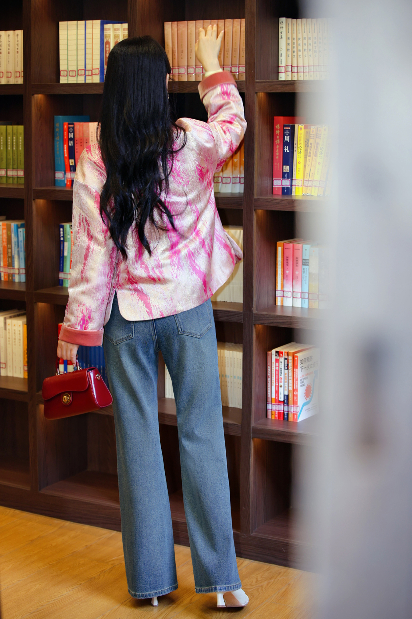 牛仔裤嘛,本就是随性自在的感觉,所以能搭配新中式这种传统韵味的上衣,也就等于能搭配所有的上衣了。