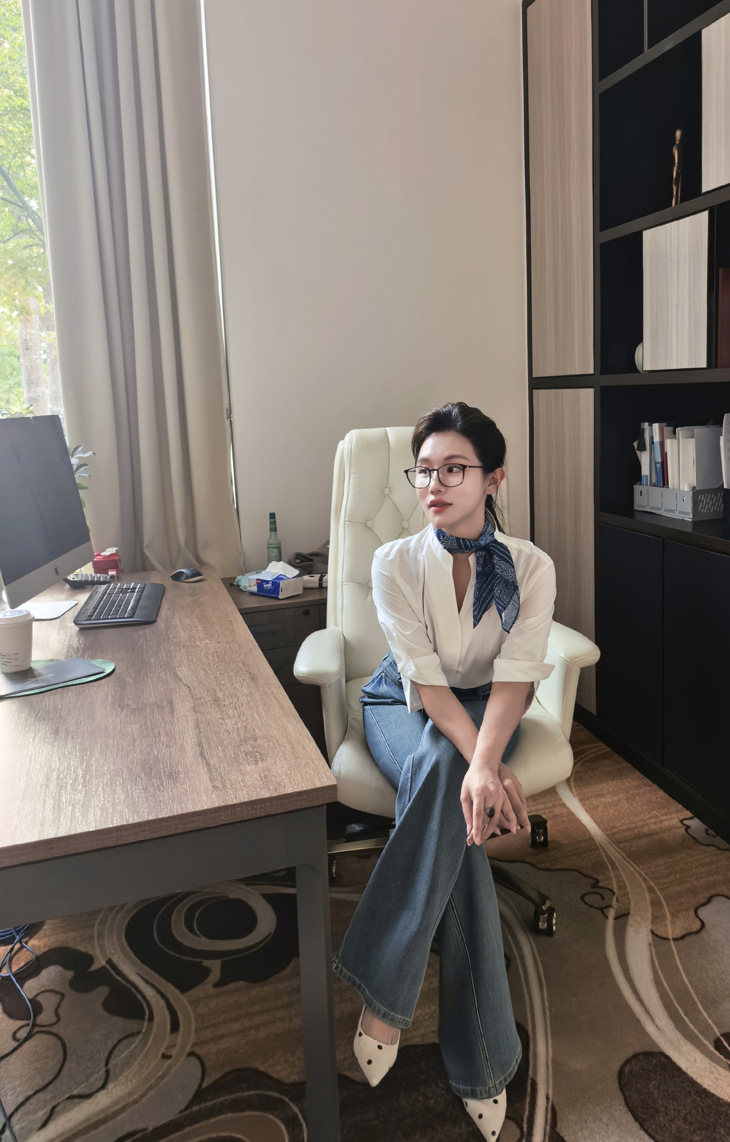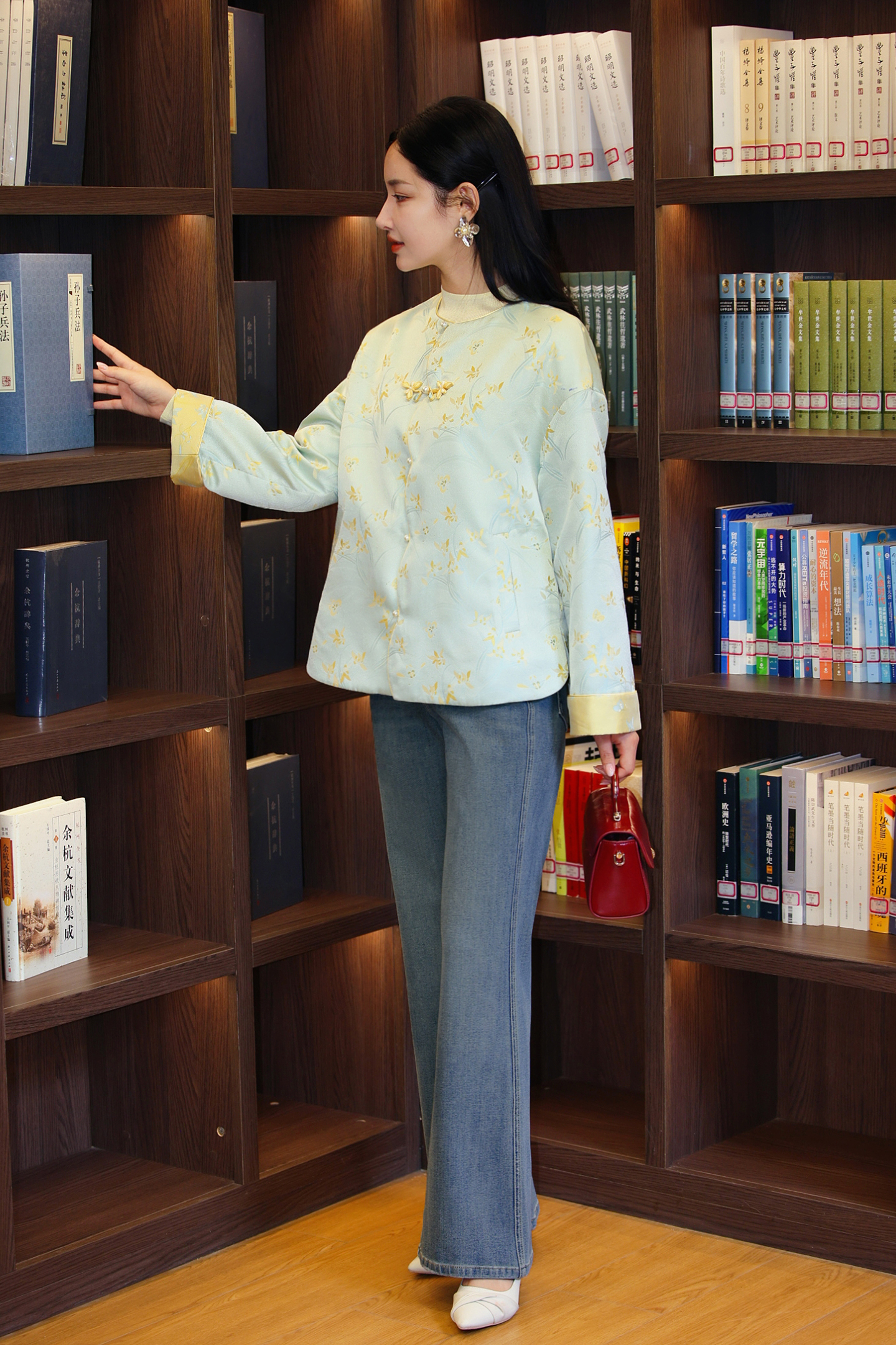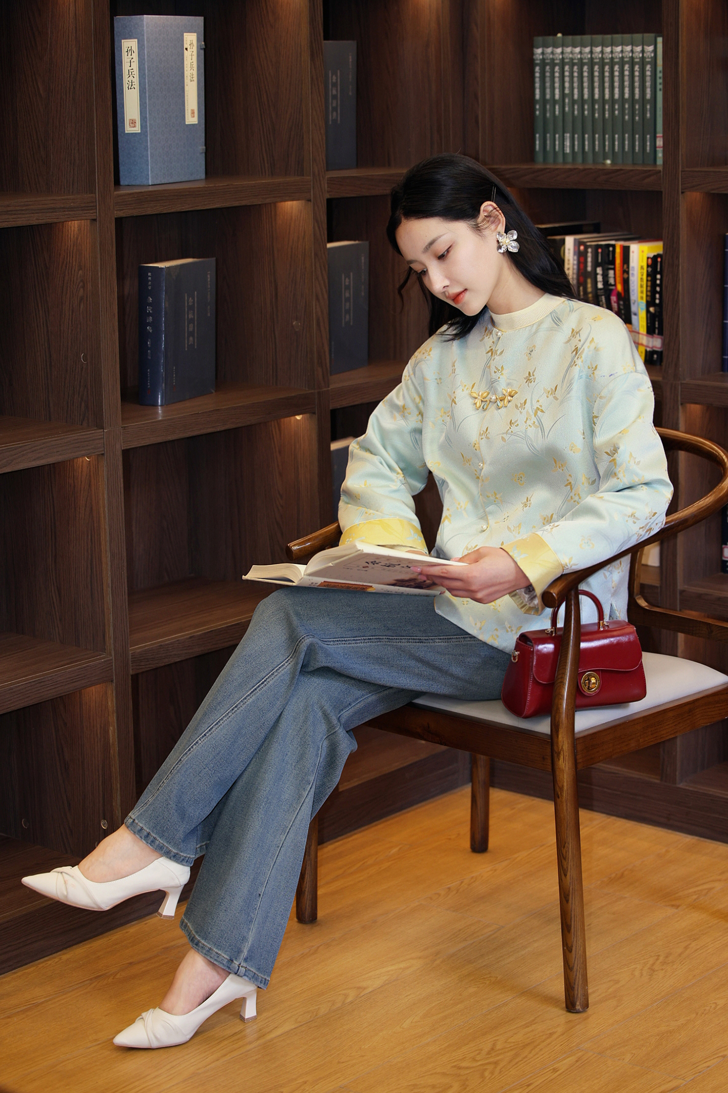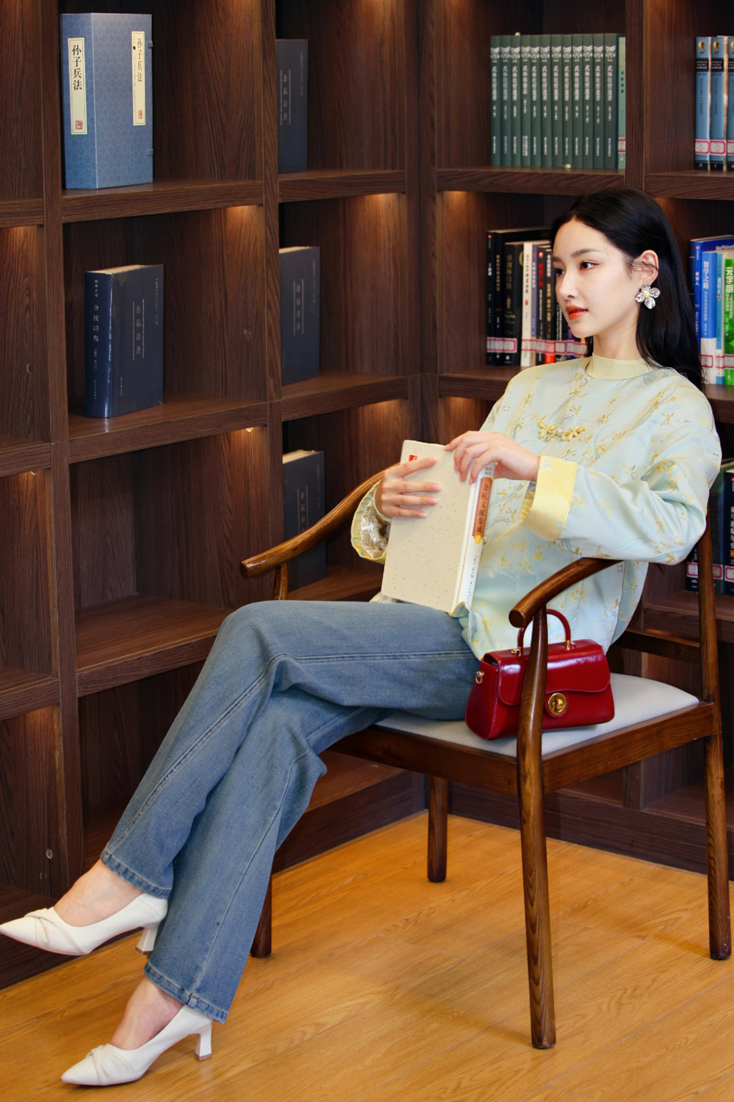 牛仔裤嘛,本就是随性自在的感觉,所以能搭配新中式这种传统韵味的上衣,也就等于能搭配所有的上衣了。