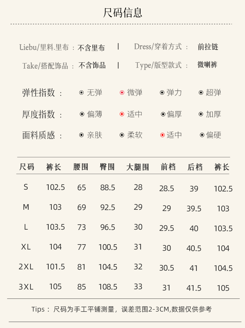 微喇叭直筒裤型的版型,很显腿直、修饰小腿肉肉;