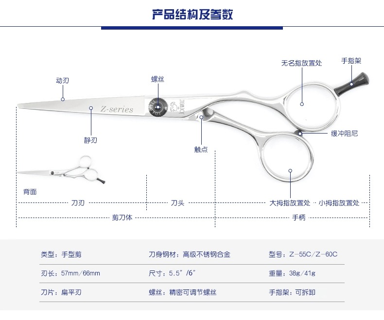 JOEWELL井上鸡牌日本原装进口Z-55C美发剪刀专业理发直剪平剪手型