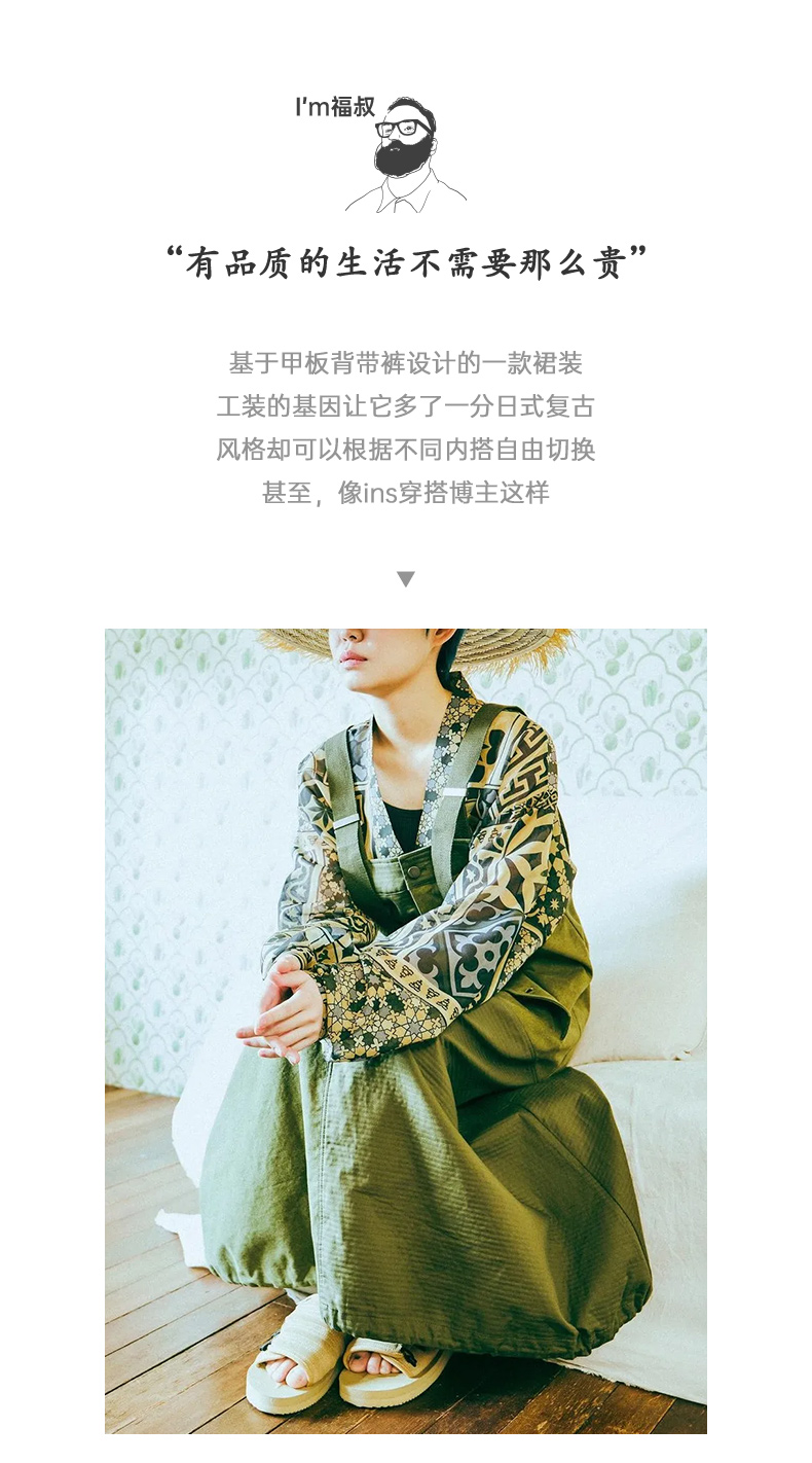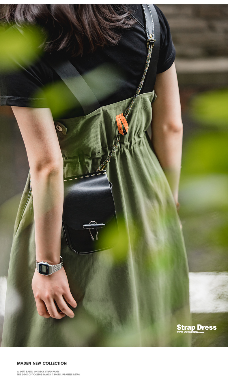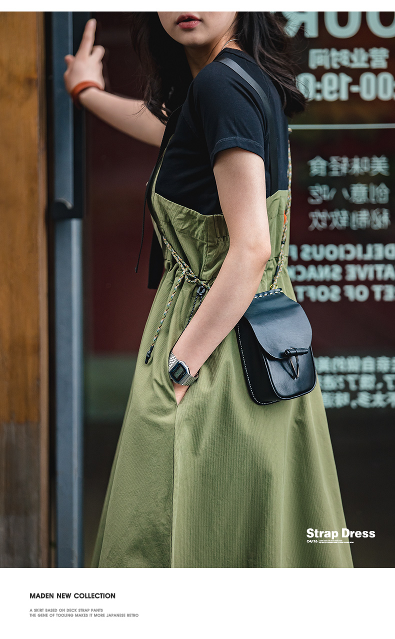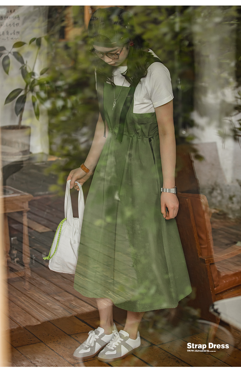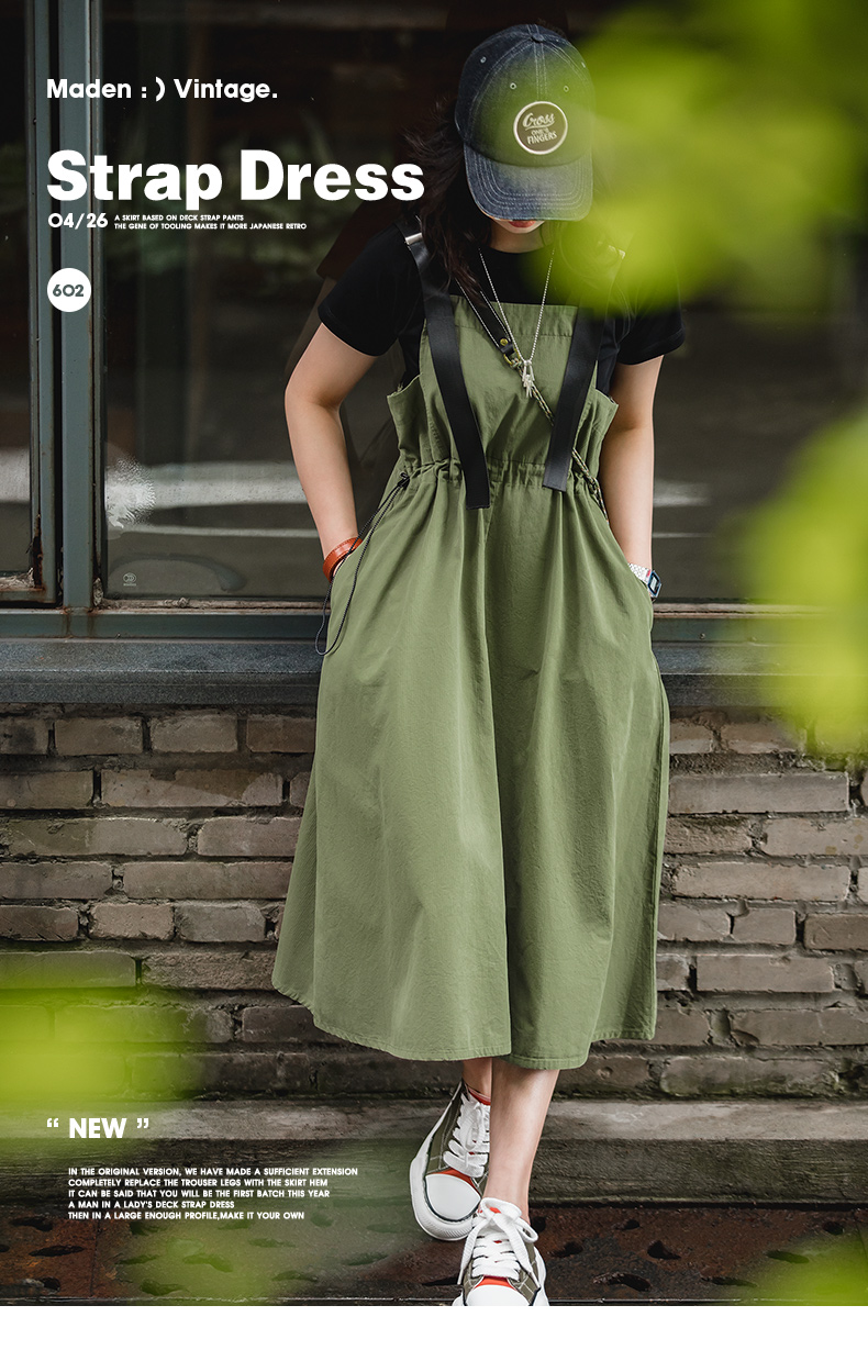 马登夏女生工装背带裙军绿色裙子日系收腰长裙大码吊带连衣裙女