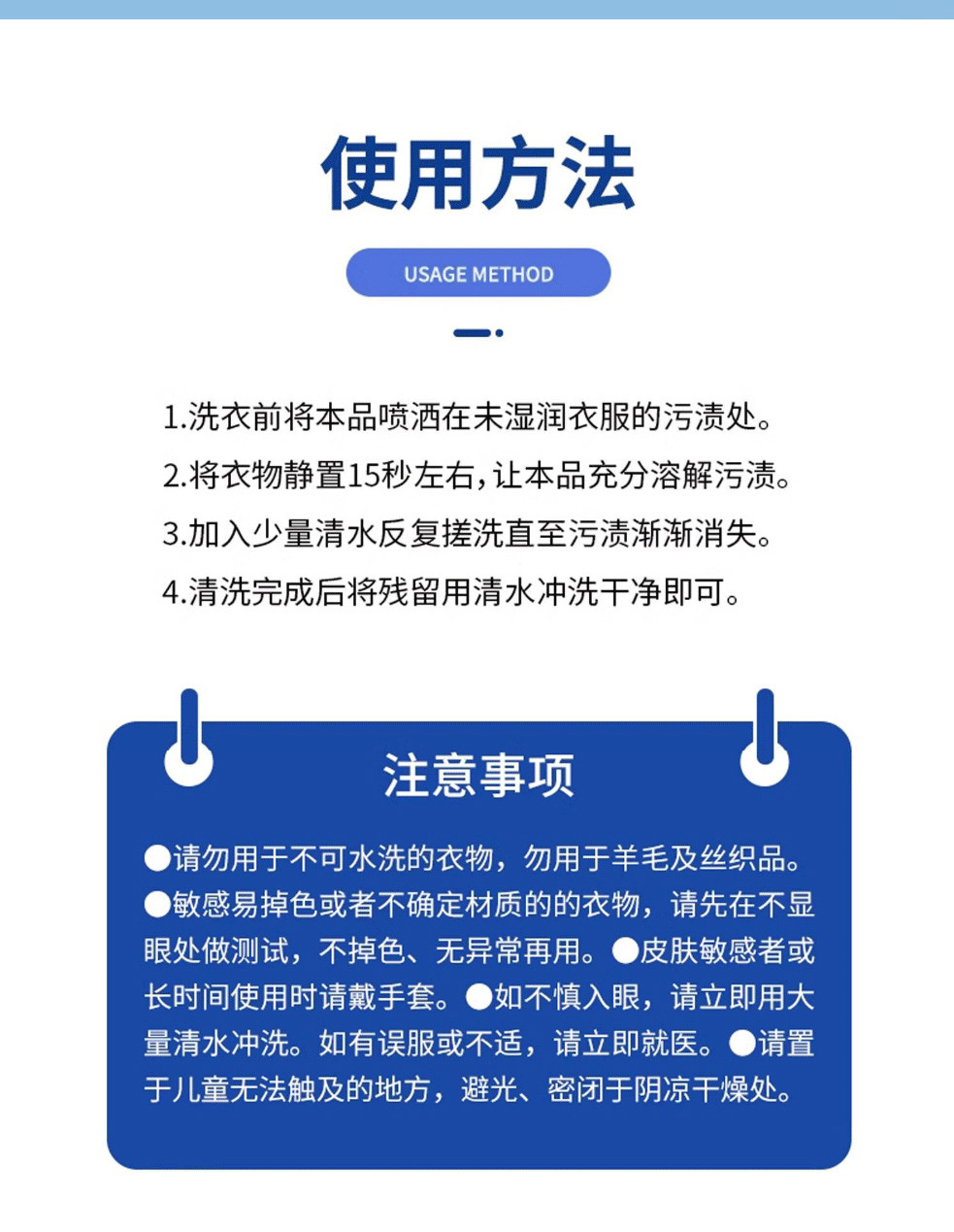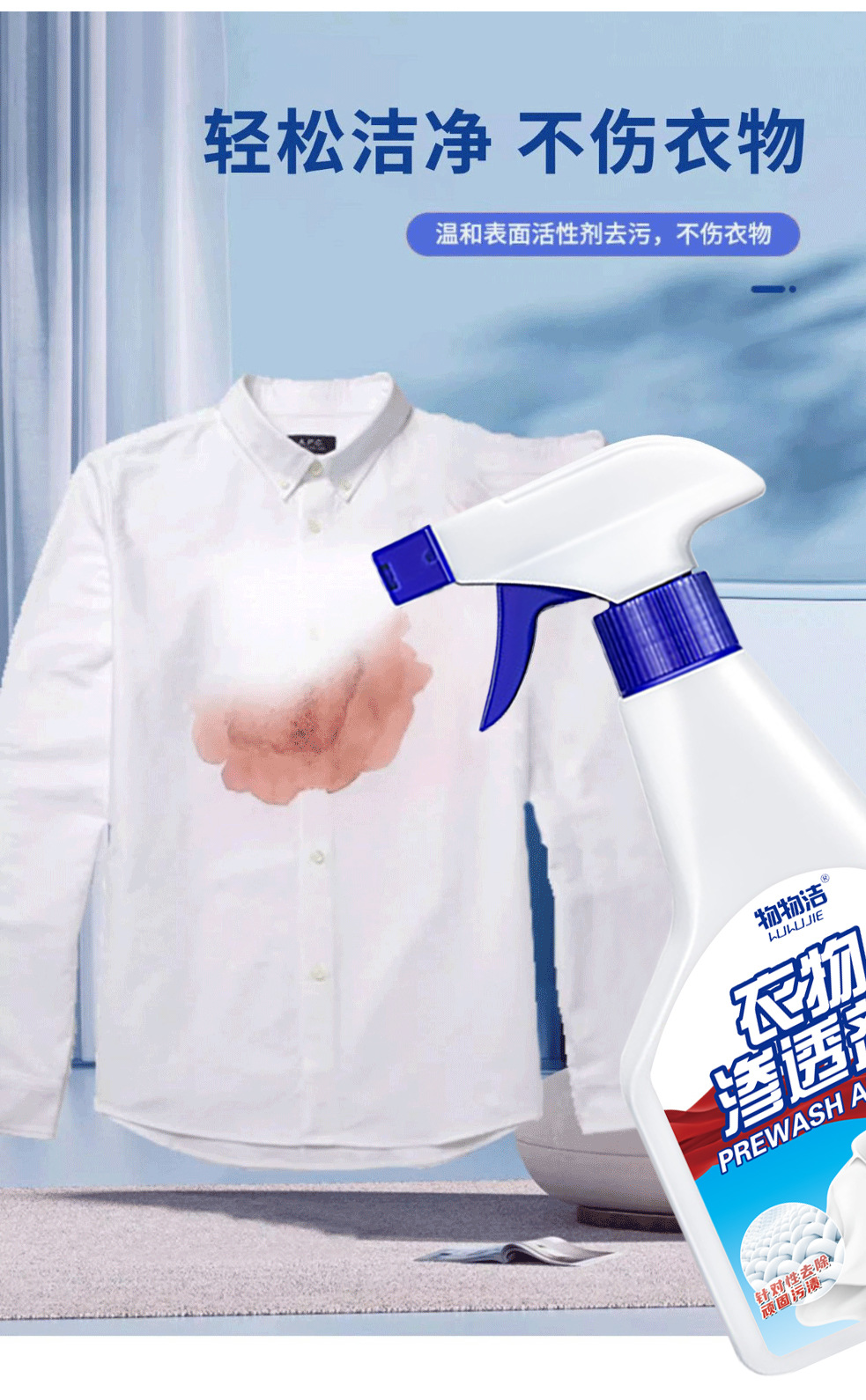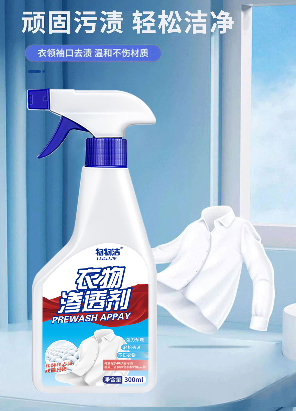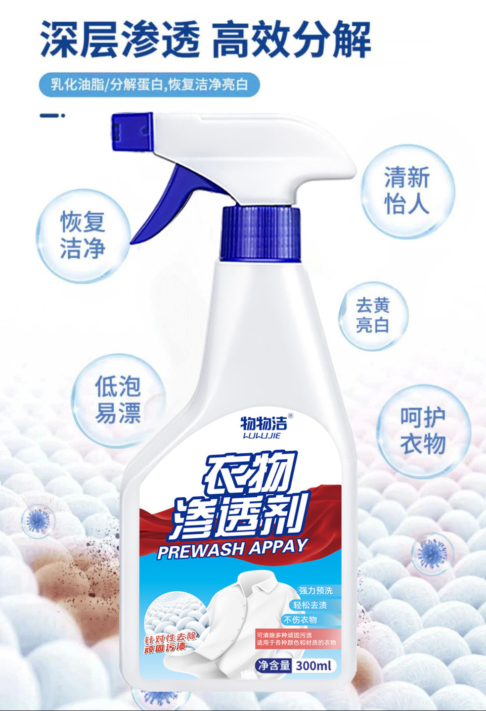 物物洁 衣物渗透剂300ml去油渍家用衣物去渍去黄白衣去霉清洗剂不留痕迹