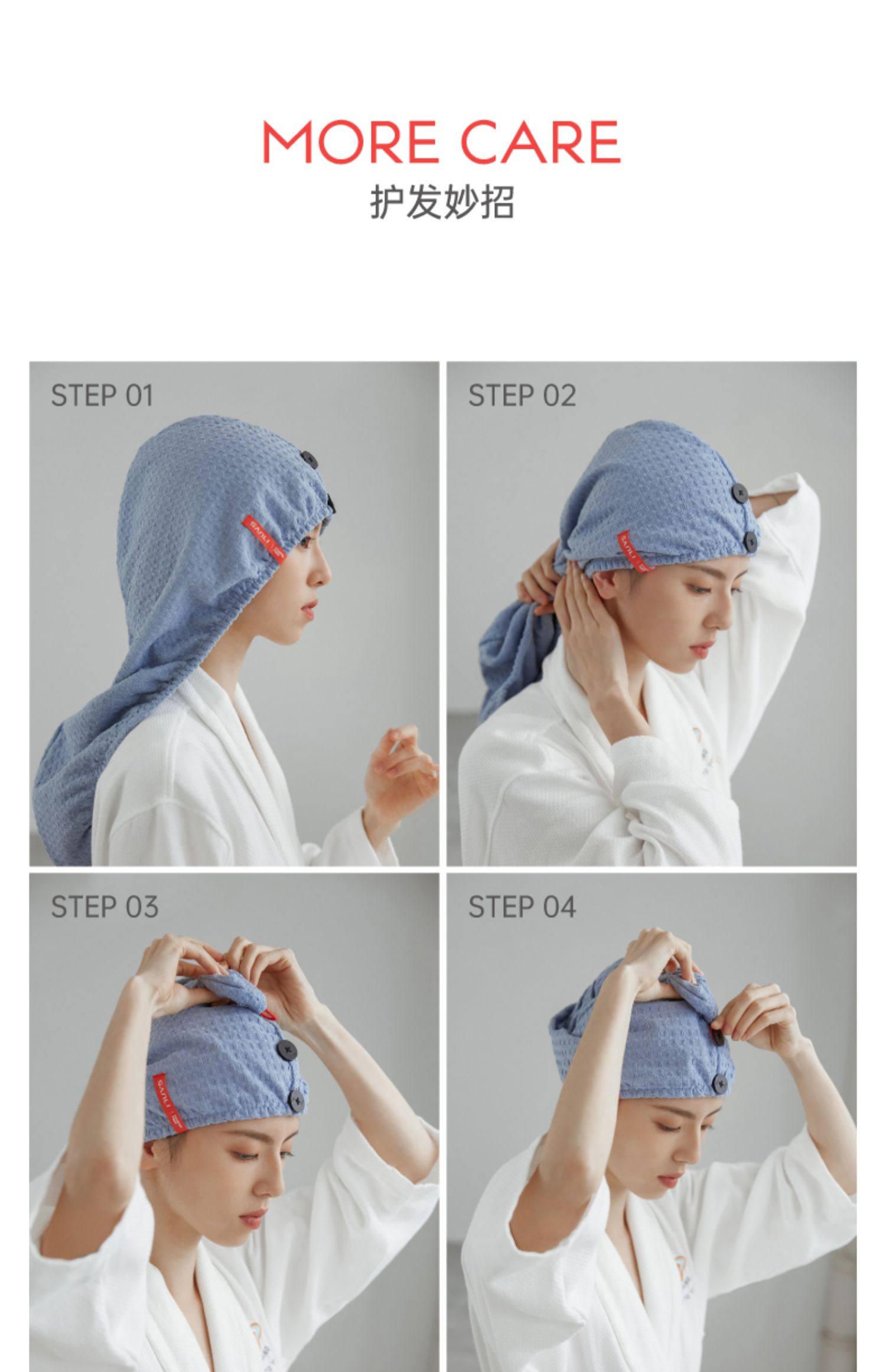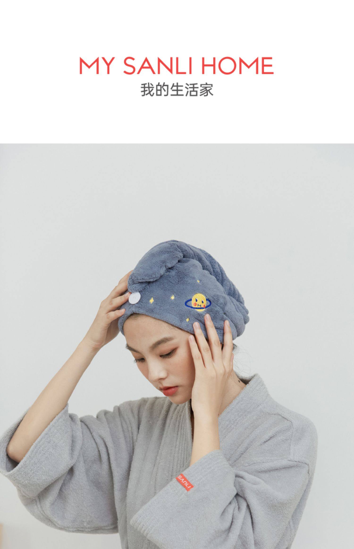 三利7A抗菌云朵格珊瑚绒柔软吸水浴巾干发帽套装