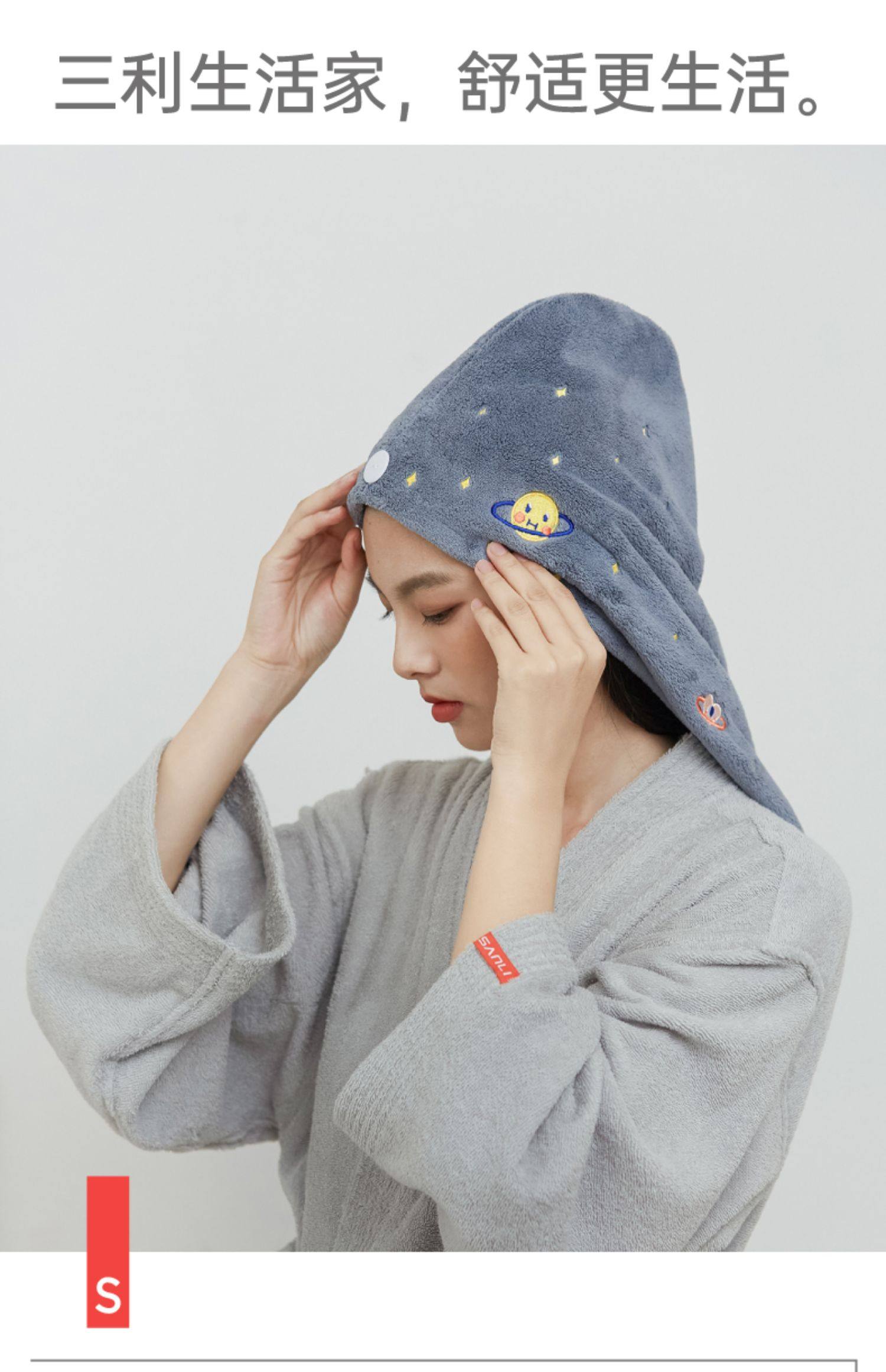 三利刺绣干发帽女吸水速干强加厚擦头发干发巾毛巾可爱包头浴帽