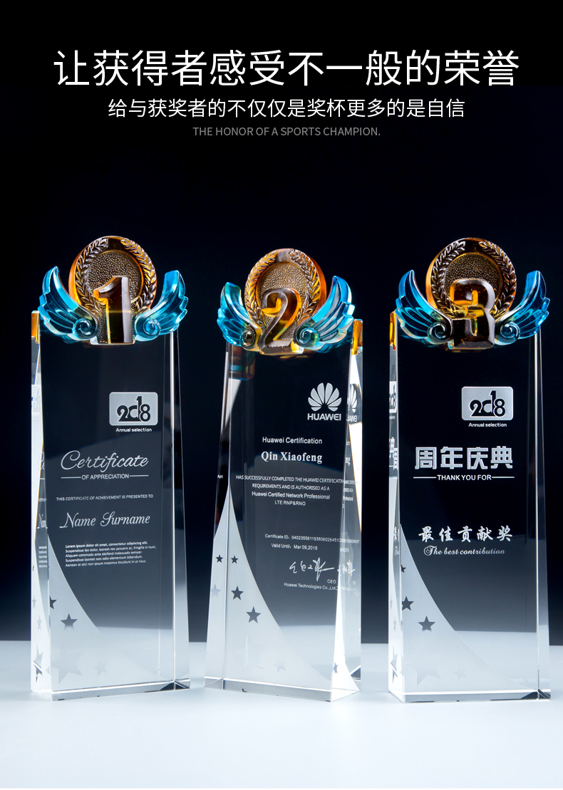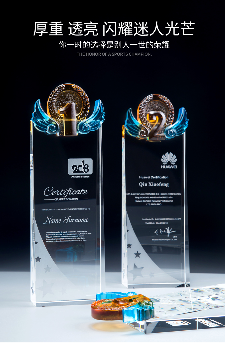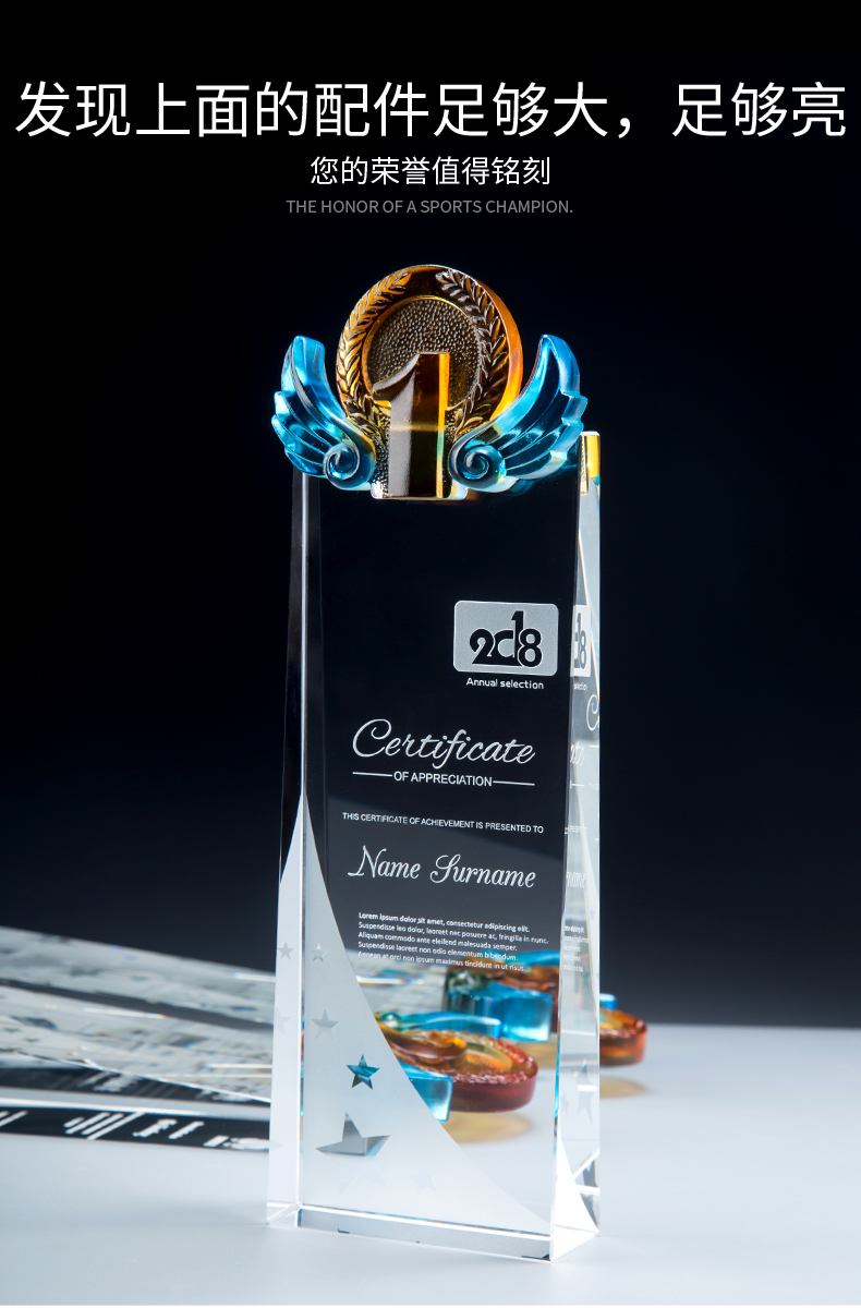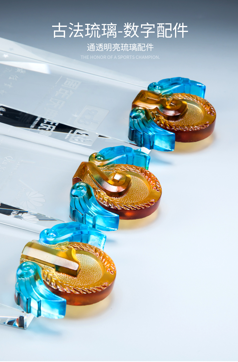 玻璃水晶奖杯定制创意奖杯奖牌比赛冠军团队一二三数字周年颁奖