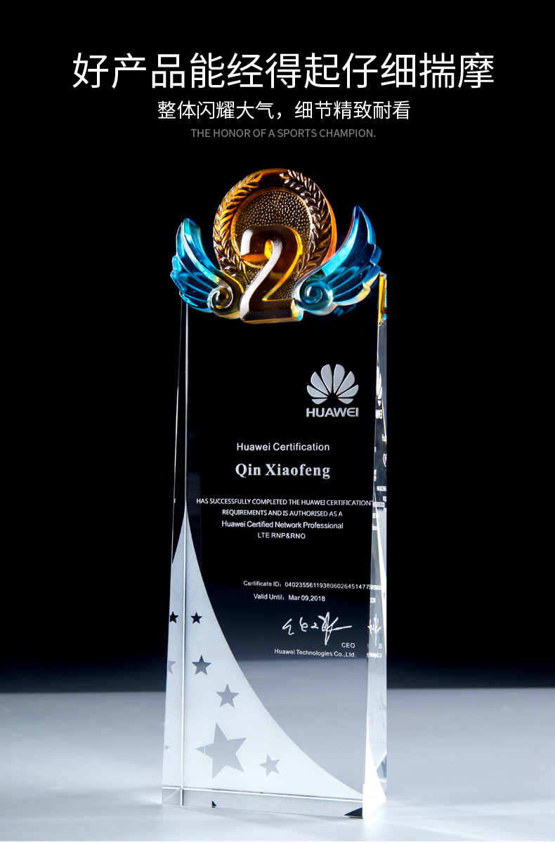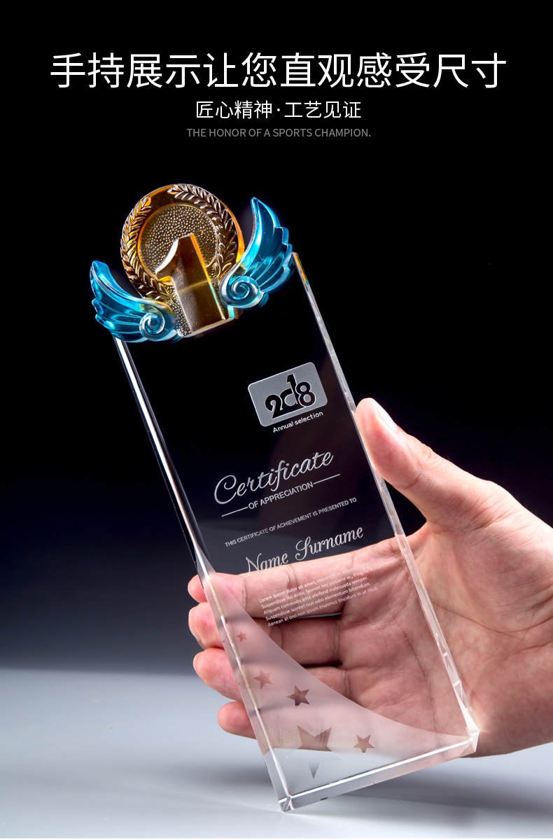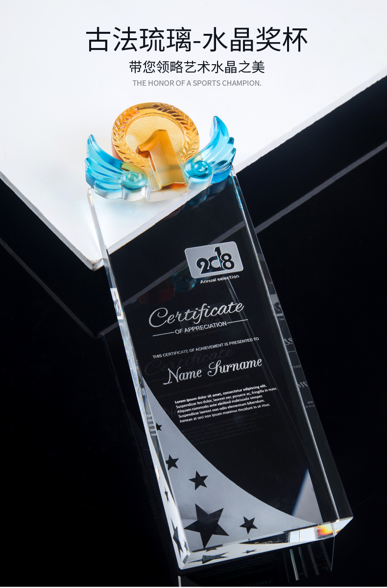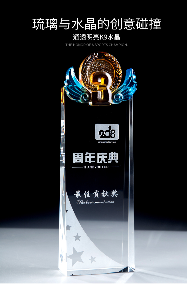 玻璃水晶奖杯定制创意奖杯奖牌比赛冠军团队一二三数字周年颁奖
