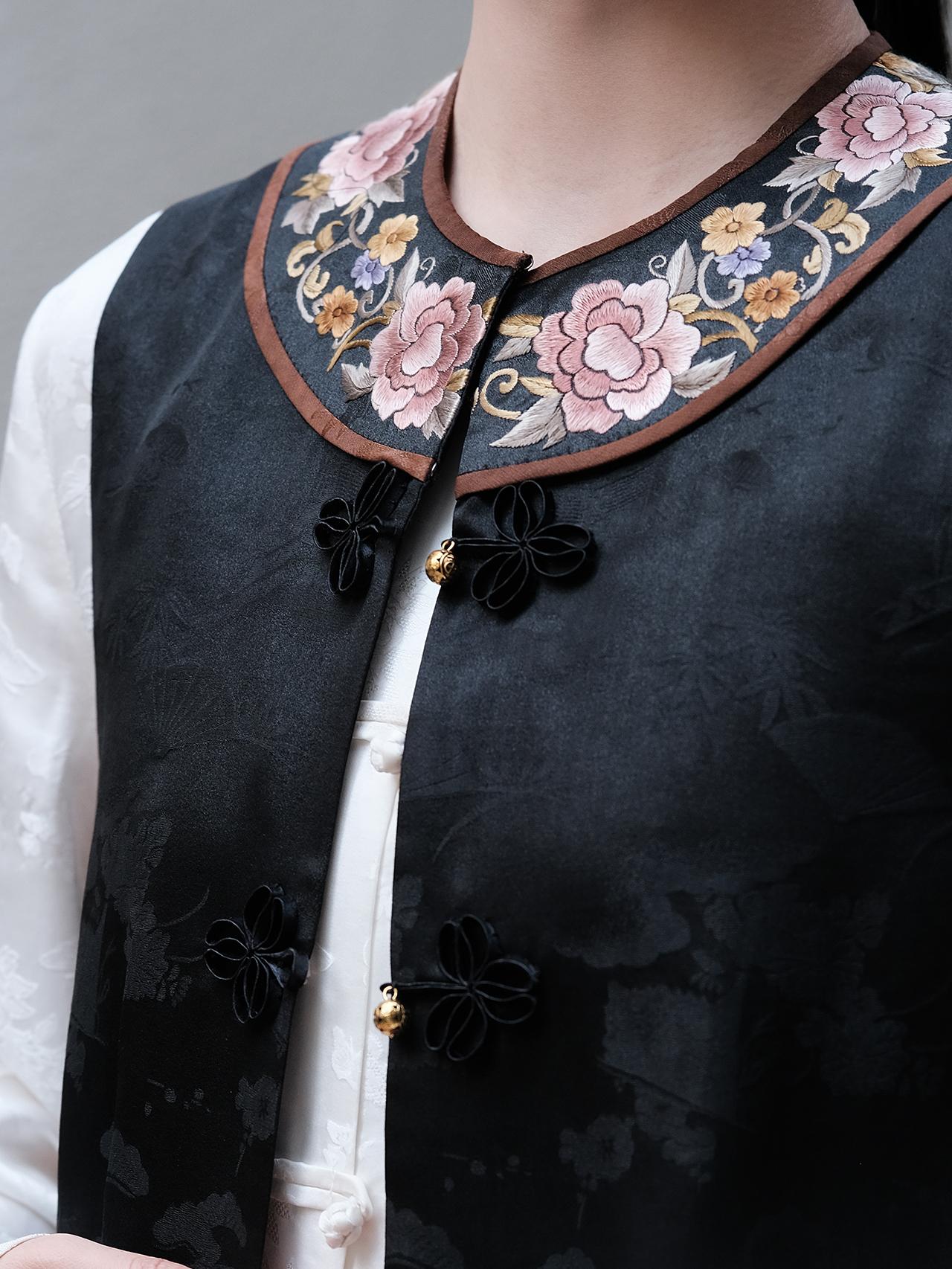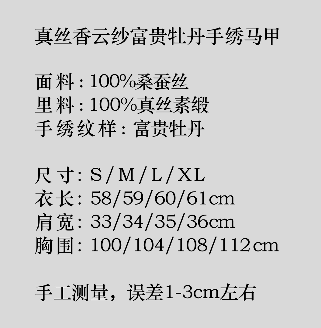 盛唐牡丹|真丝香云纱富贵牡丹手绣马甲