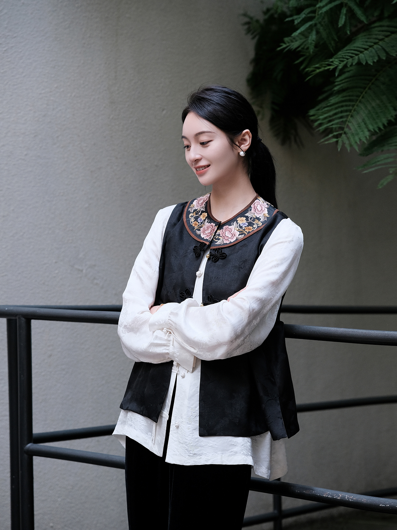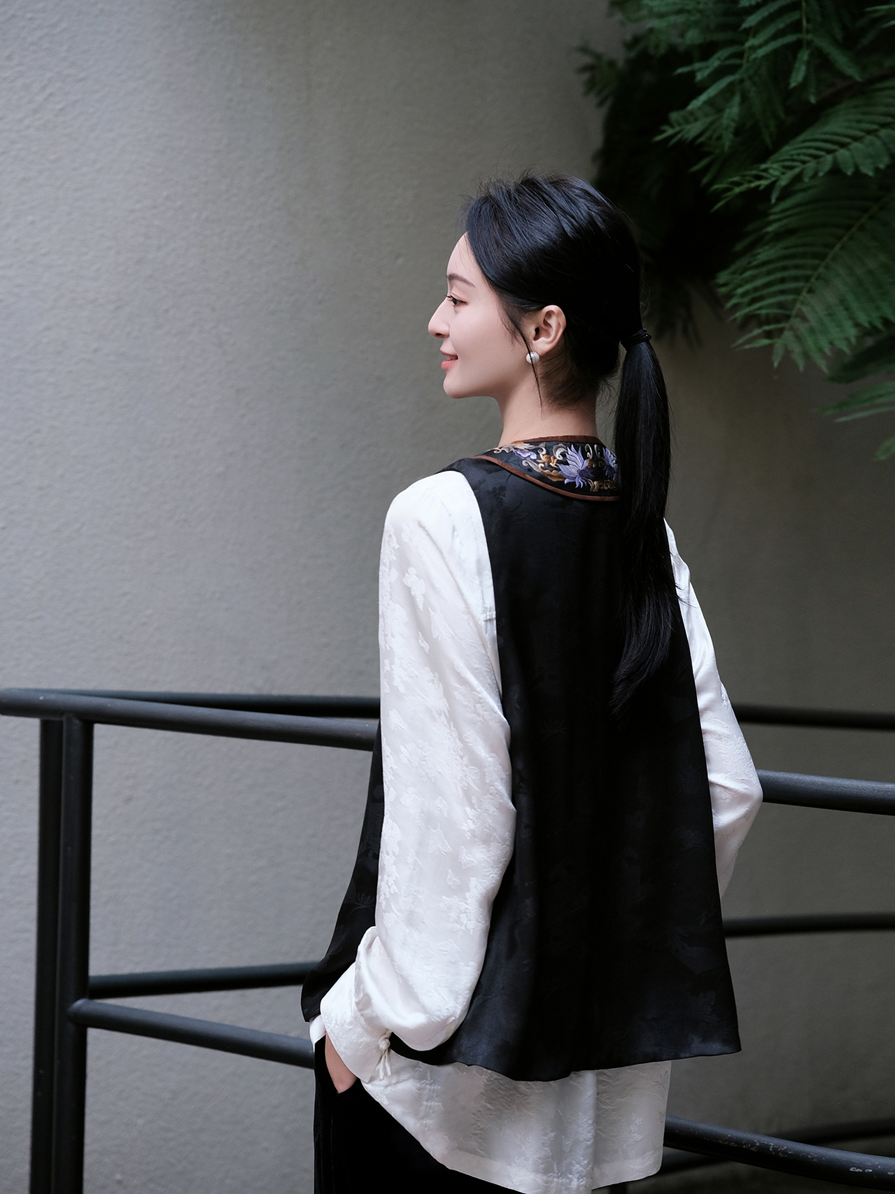 限量款| 盛唐牡丹|花开祥瑞宋锦圆领马甲