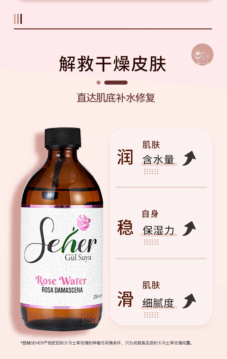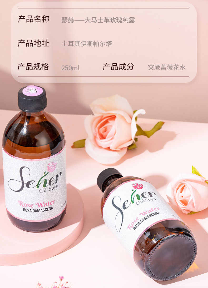 250ml瑟赫-SEHER土耳其进口大马士革玫瑰纯露护肤爽肤水润透保湿保湿天然纯露