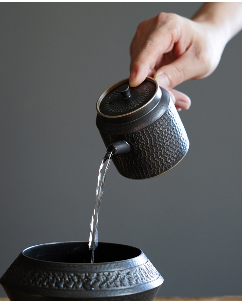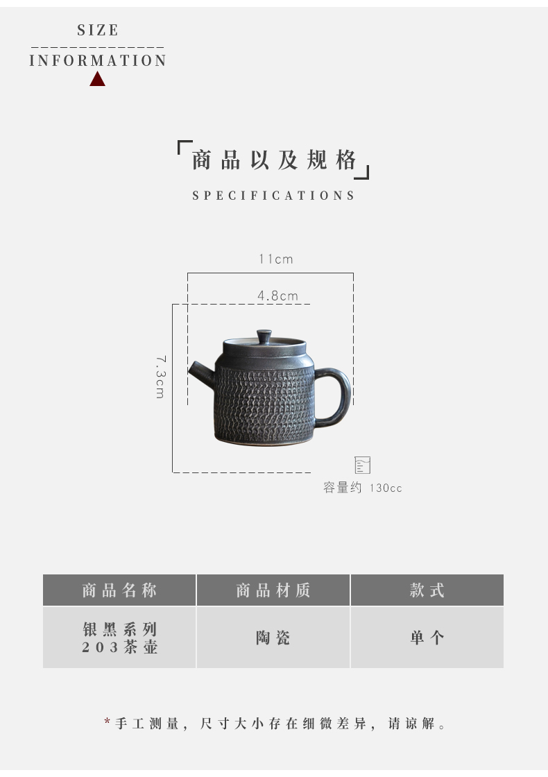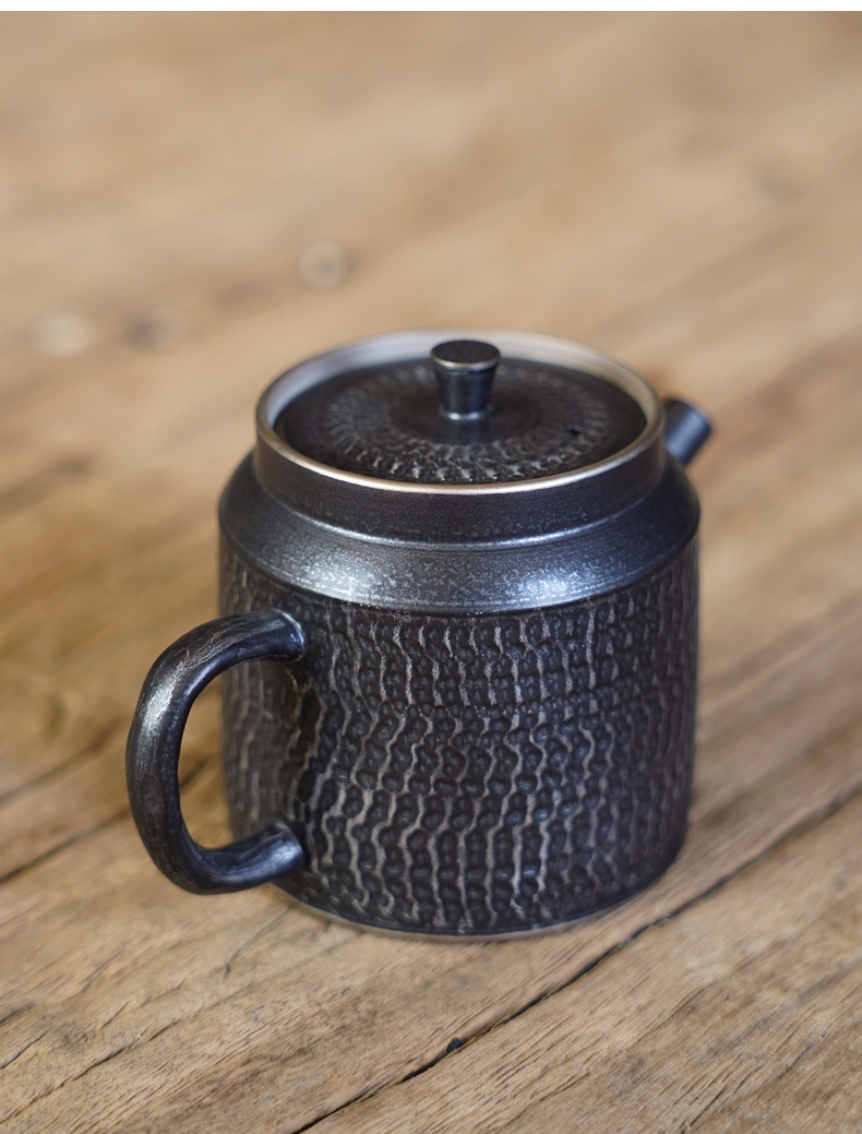 永利汇功夫茶具日式手工单壶陶瓷观瞻壶银黑小茶壶泡茶壶家用