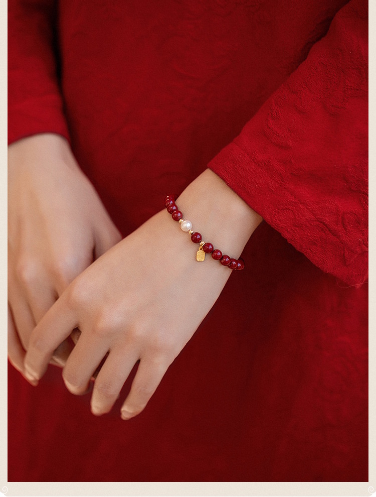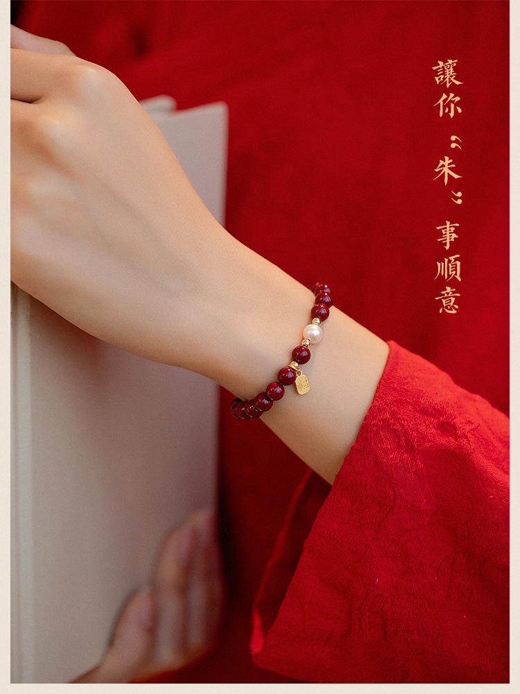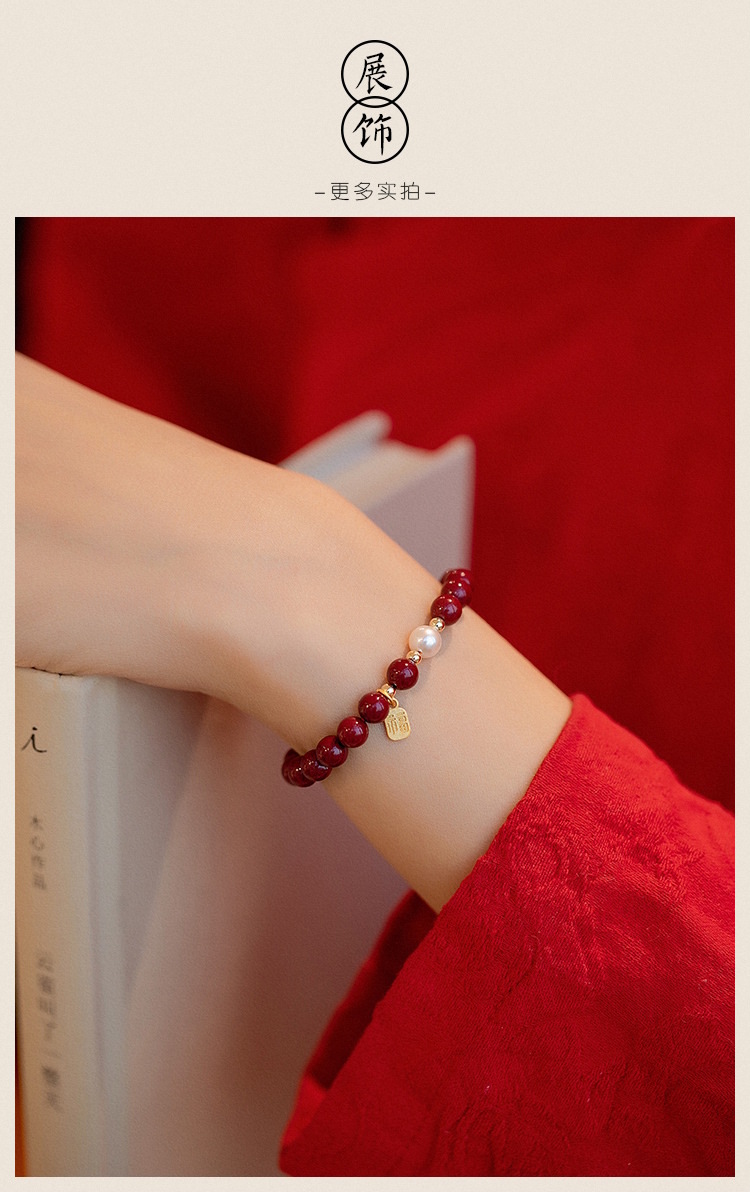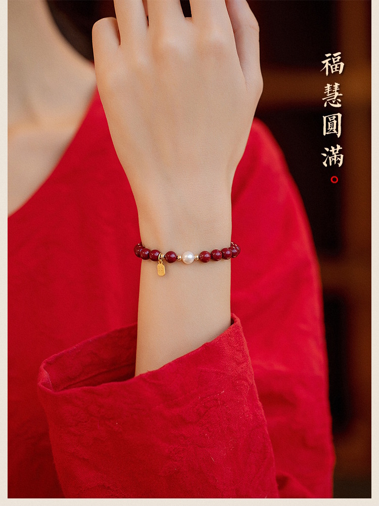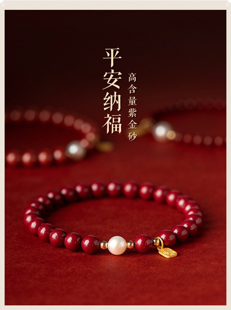 【新年本命年福牌朱砂手链】天然珍zhu紫金砂转运zhu 小福牌手串礼物