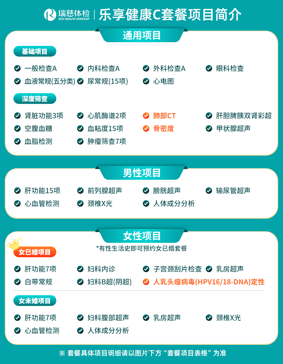 | 套餐名称:乐享健康C套餐 | |||||