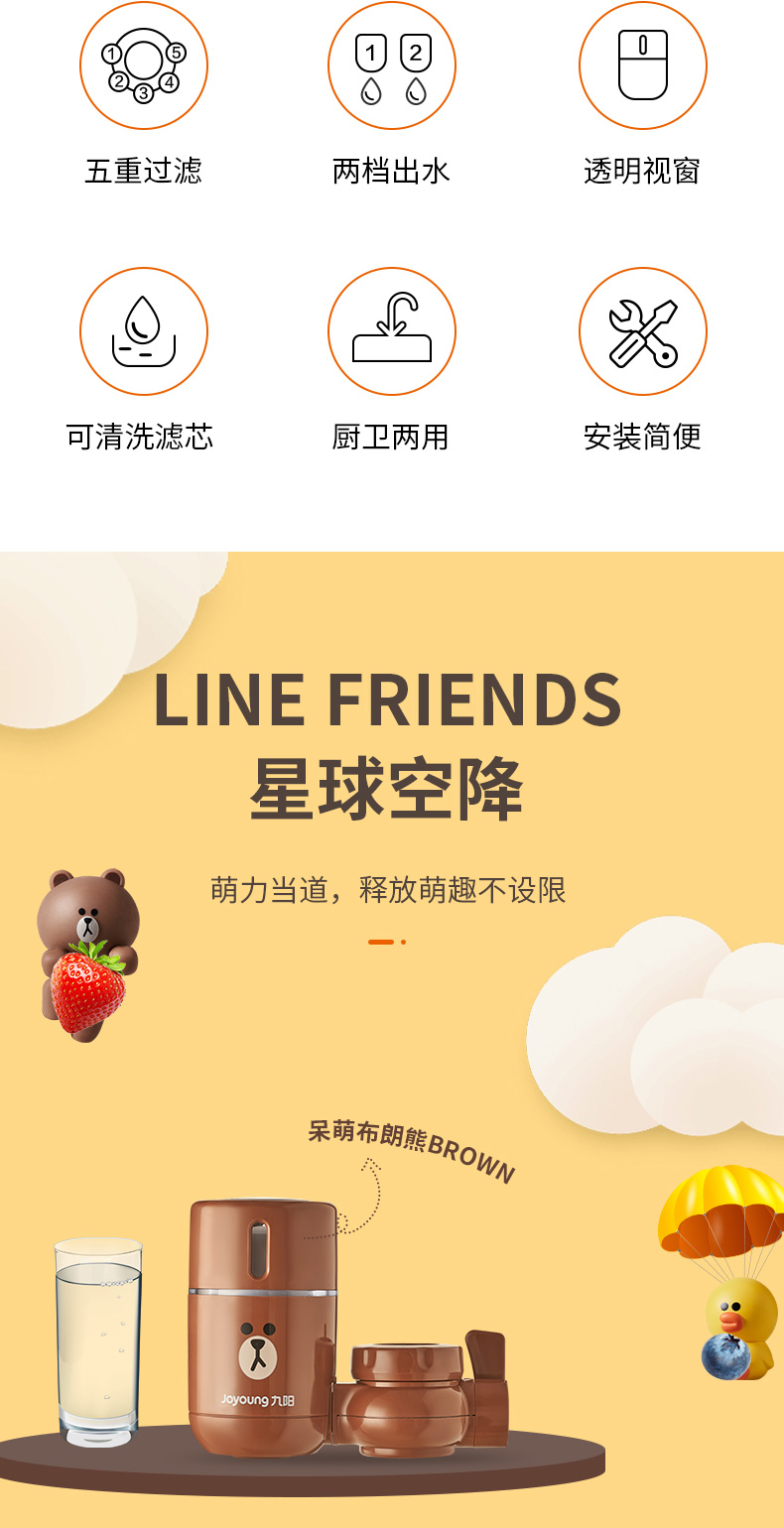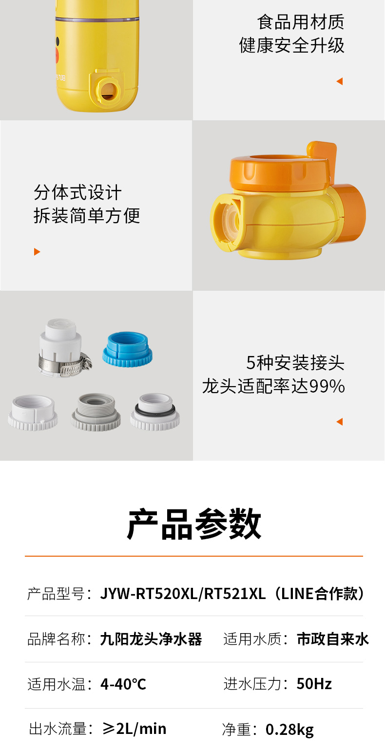 九阳line净水器水龙头过滤器自来水净水机厨房净化滤水器万能接口