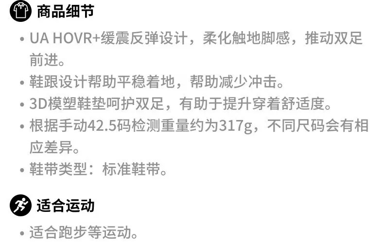 【云粉节】7楼安德玛 UA男子春夏新品HOVR厚底轻便透气舒适运动跑步鞋3028169吊牌价1299元