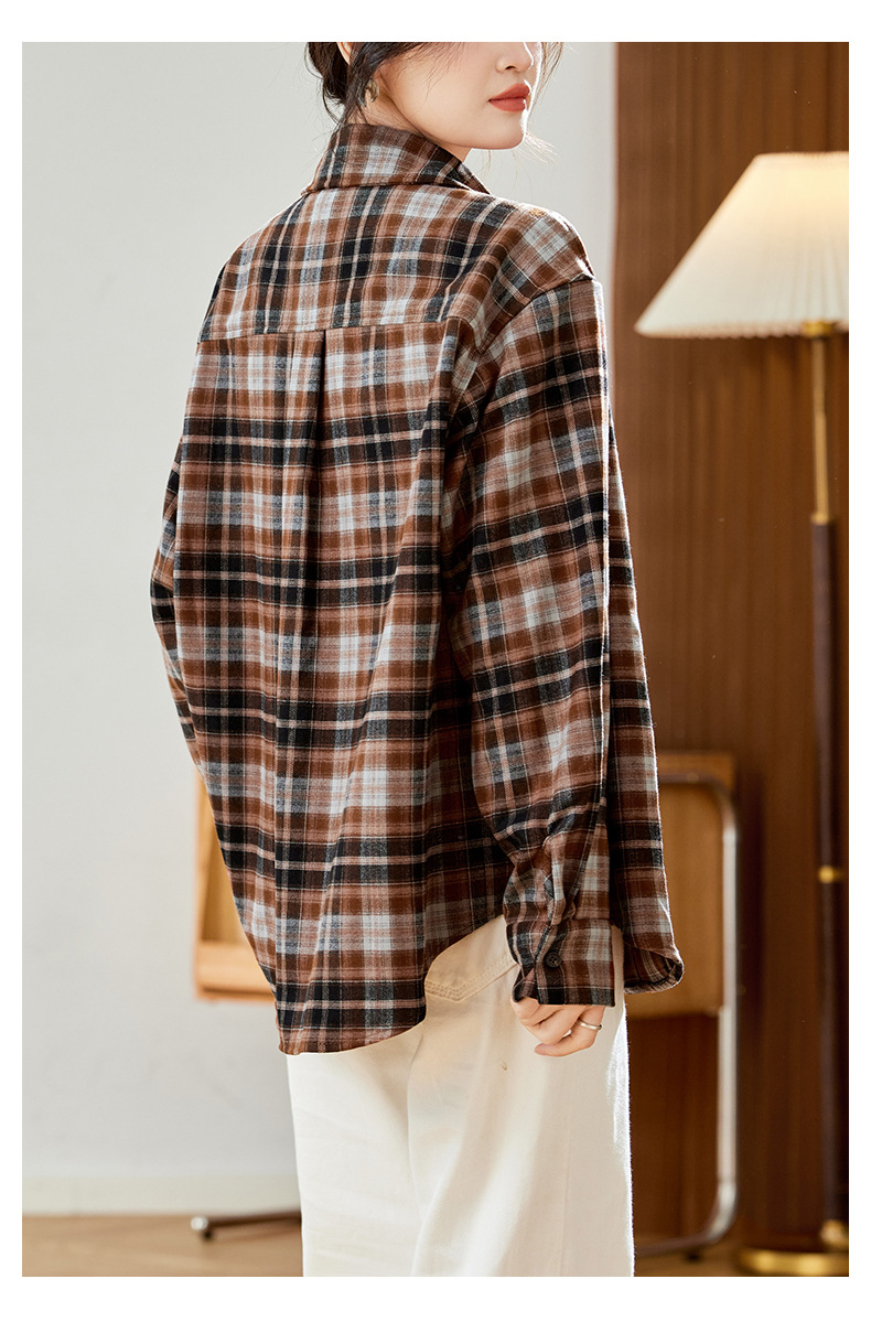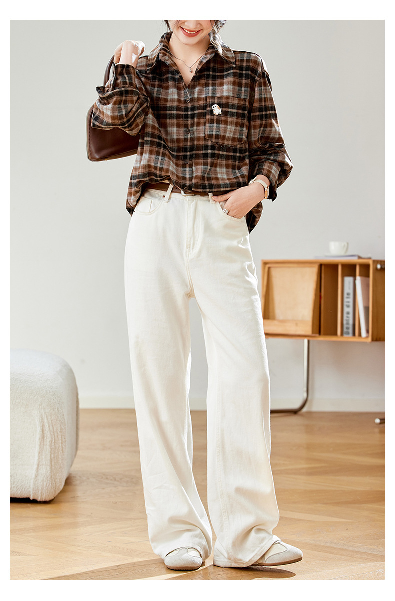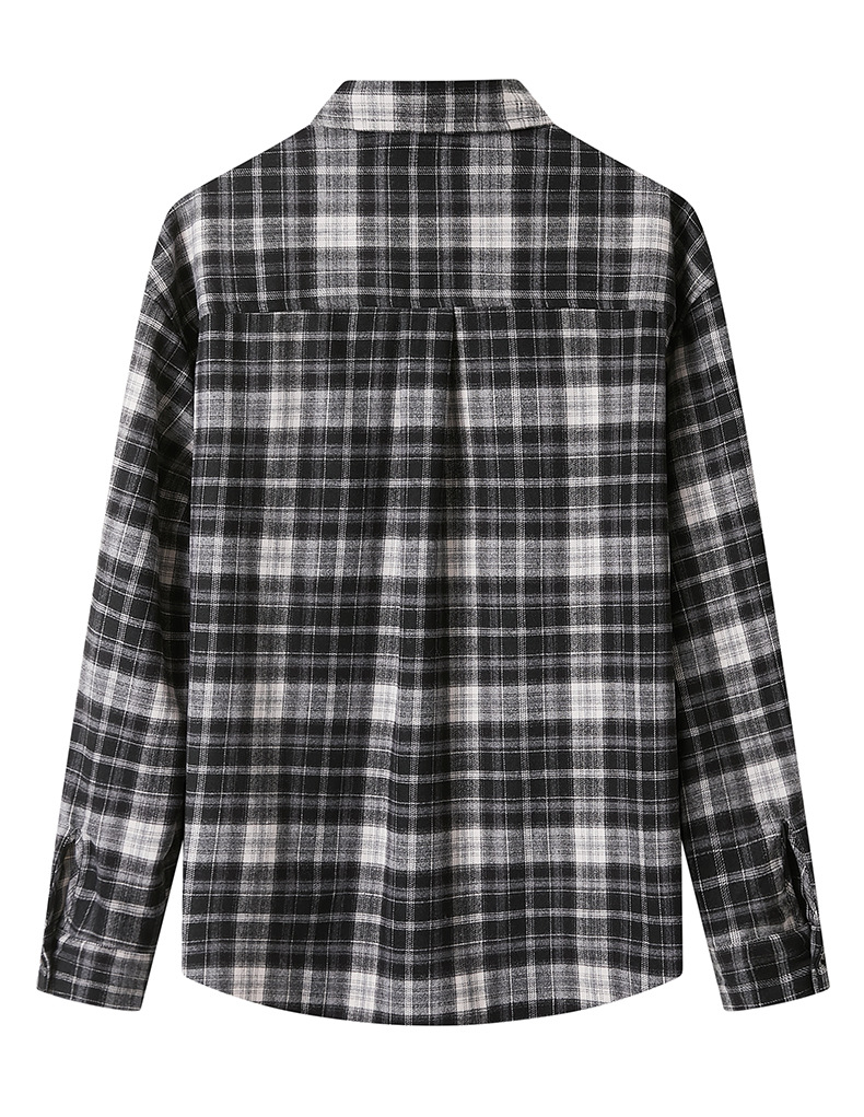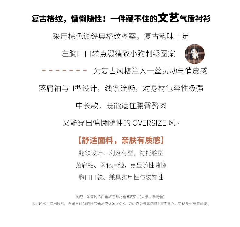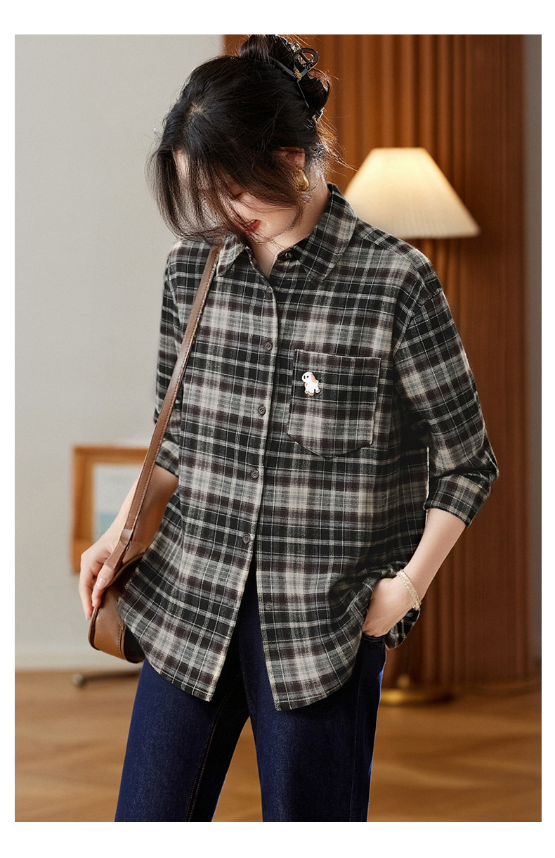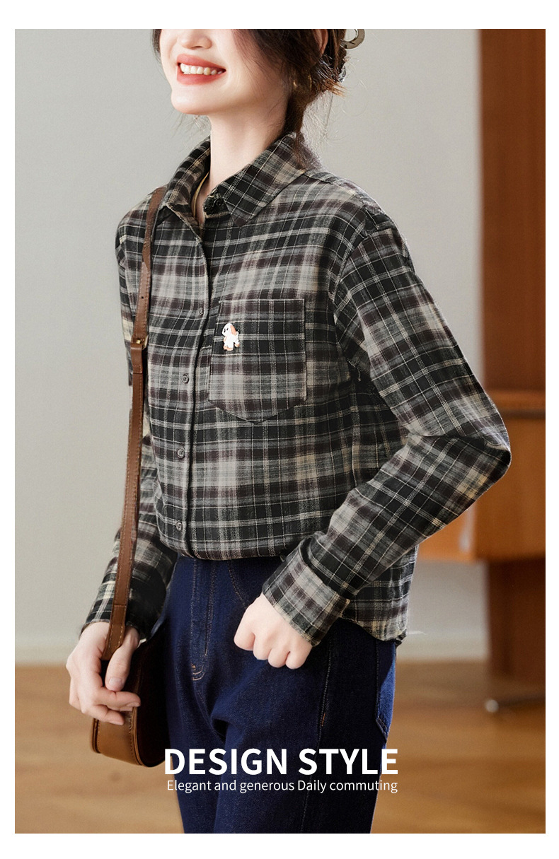 馥迦休闲百搭小狗刺绣磨毛格子衬衫