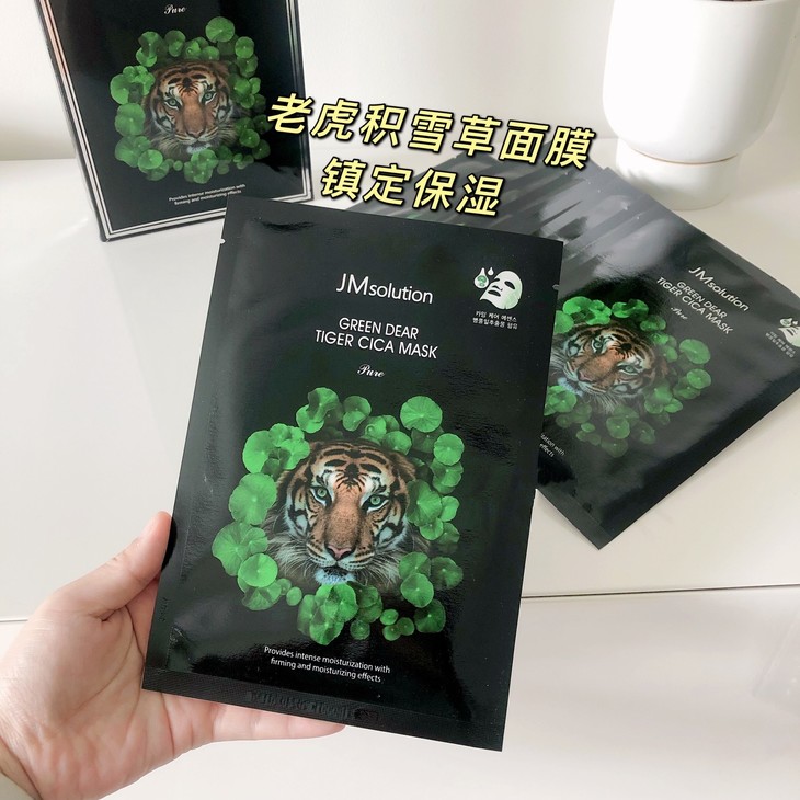 JM solution 老虎积雪草面膜👍 |原价💰30,JM新款🆕“积雪草”虎头🐯面膜。有效🉑镇静肌肤,深层补水👏🏻,修复肌肤屏障🍃。膜布上面非常贴🈴,精华超级多😆。淡淡的香气🌸,让人非常舒服😌。对痘油肌的集妹们👧🏻,非常友好🤝。