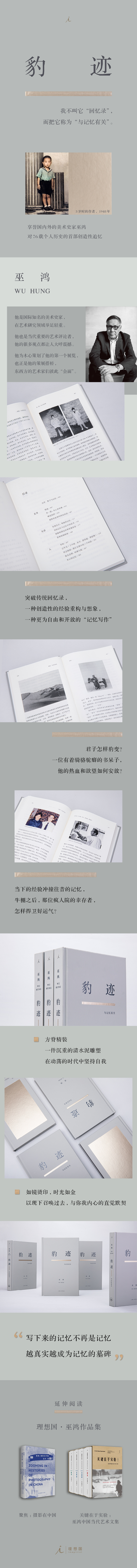 本书是巫鸿先生对76载个人历史的首部追忆。他突破一般回忆录式的写作,呈现给读者的既不是真实的往昔本身,也不是小说式的全然虚构,而是一种创造性的经验重构与想象,一种更为自由和开放的“记忆写作”。