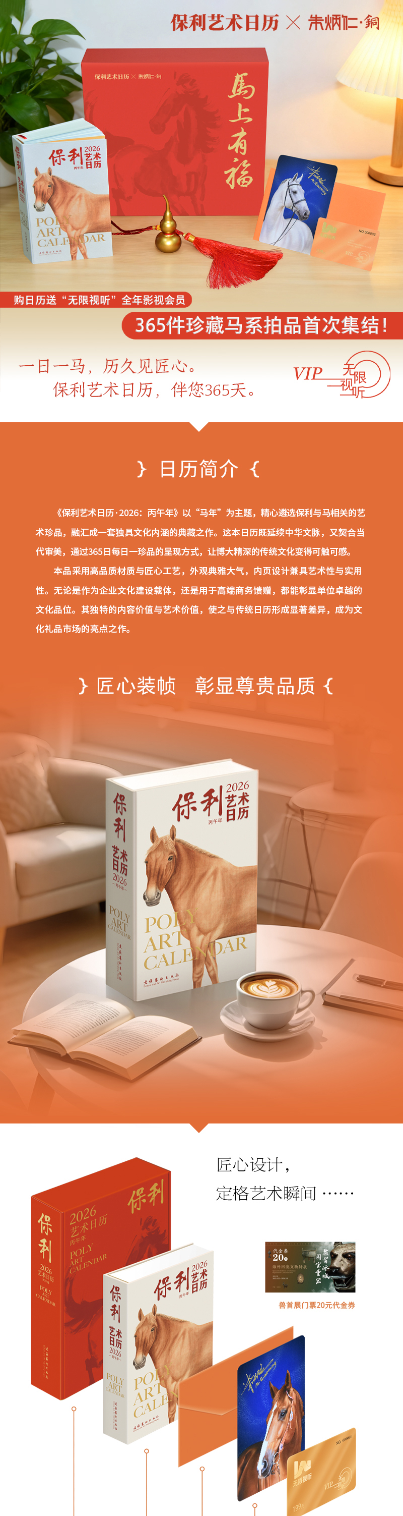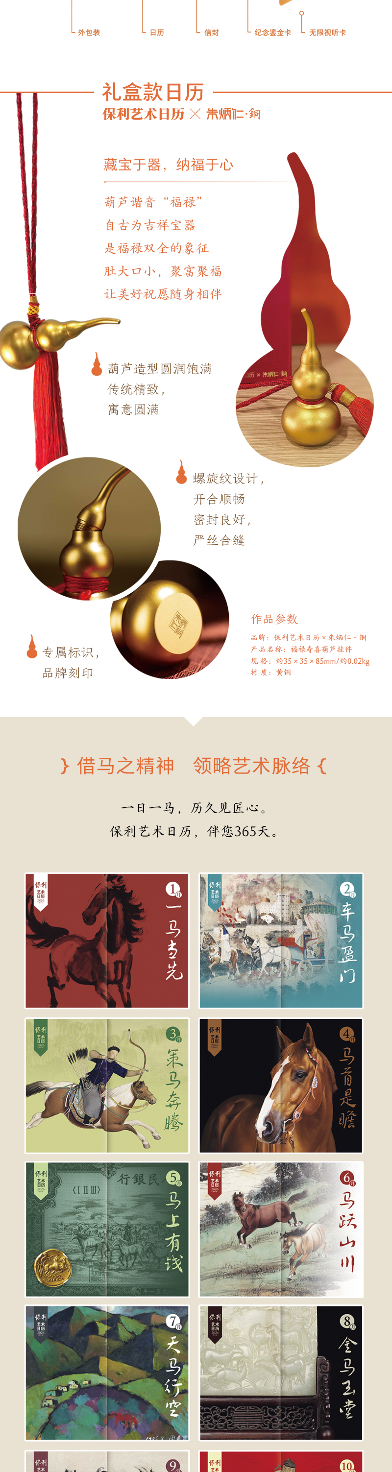 【限时团购】2026·保利日历&朱炳仁·铜 联名礼盒款,核心赠品为朱炳仁铜打造的纯铜“福禄寿喜葫芦”,高端定制礼盒装帧,自用馈赠皆显尊贵