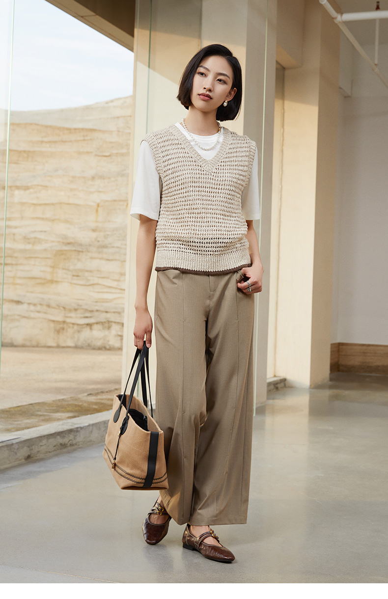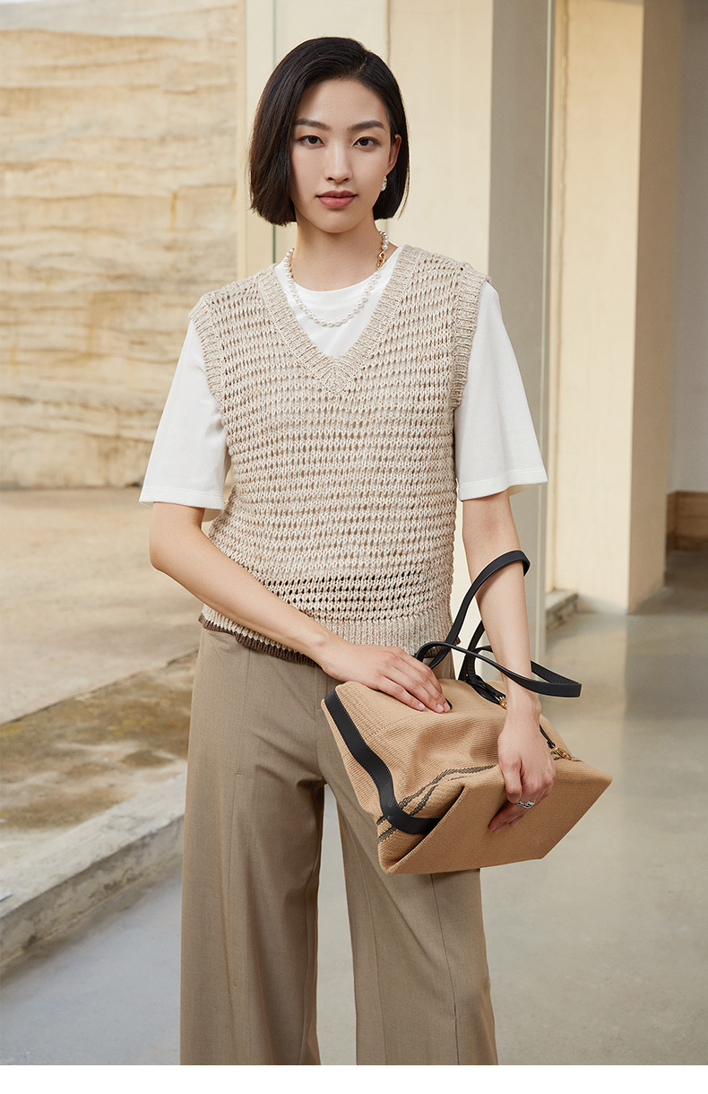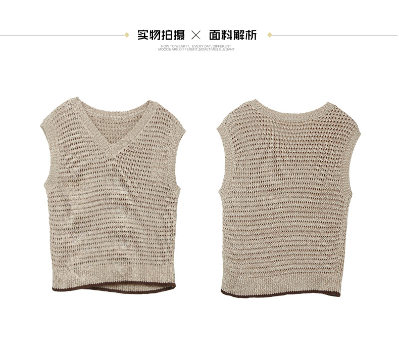 秋季新款 V 领针织马甲女 复古镂空宽松外搭叠穿无袖毛衣背心
