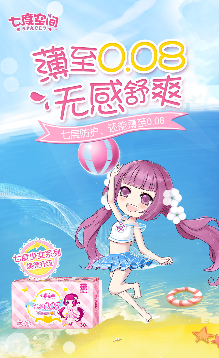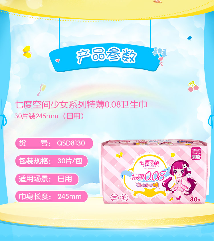 七度空间(SPACE7) 少女特薄0.08 棉柔表层日用卫生巾245mm*30片(新老包装随发货)