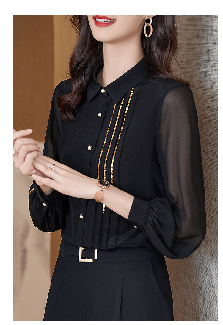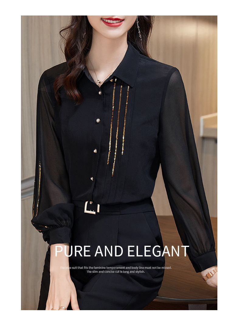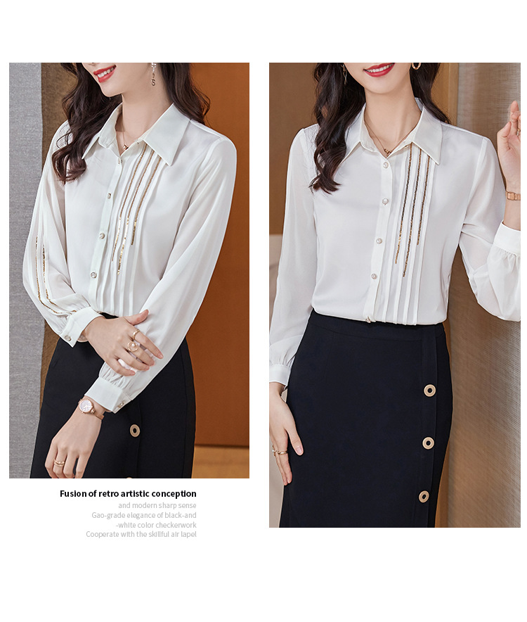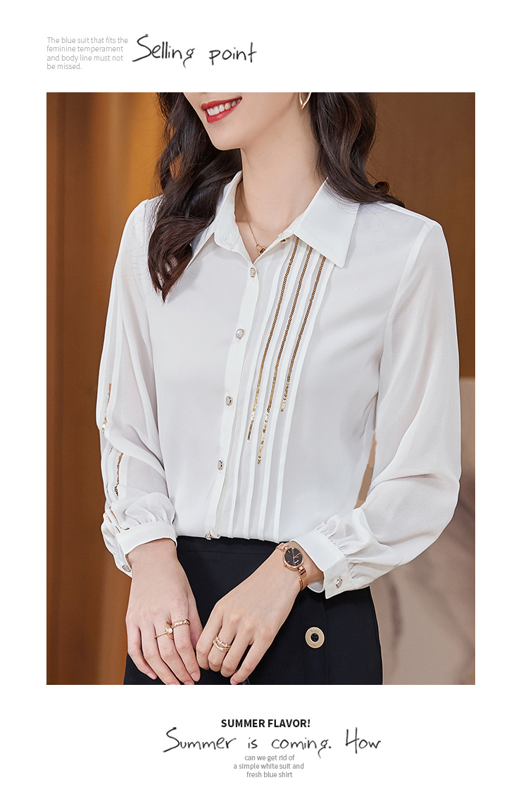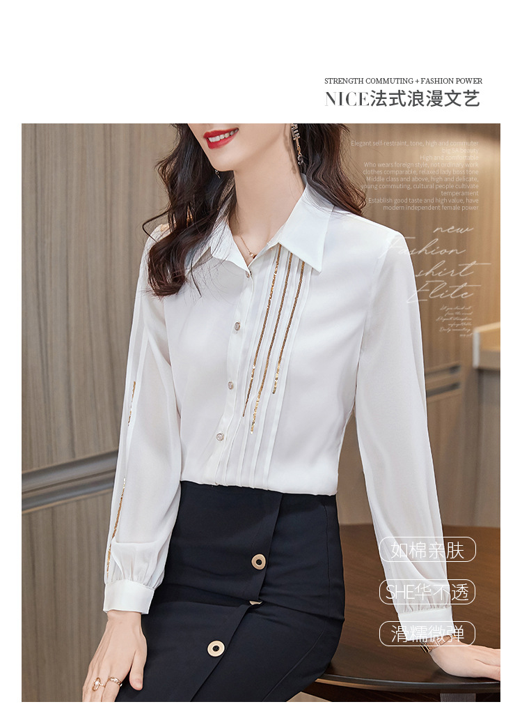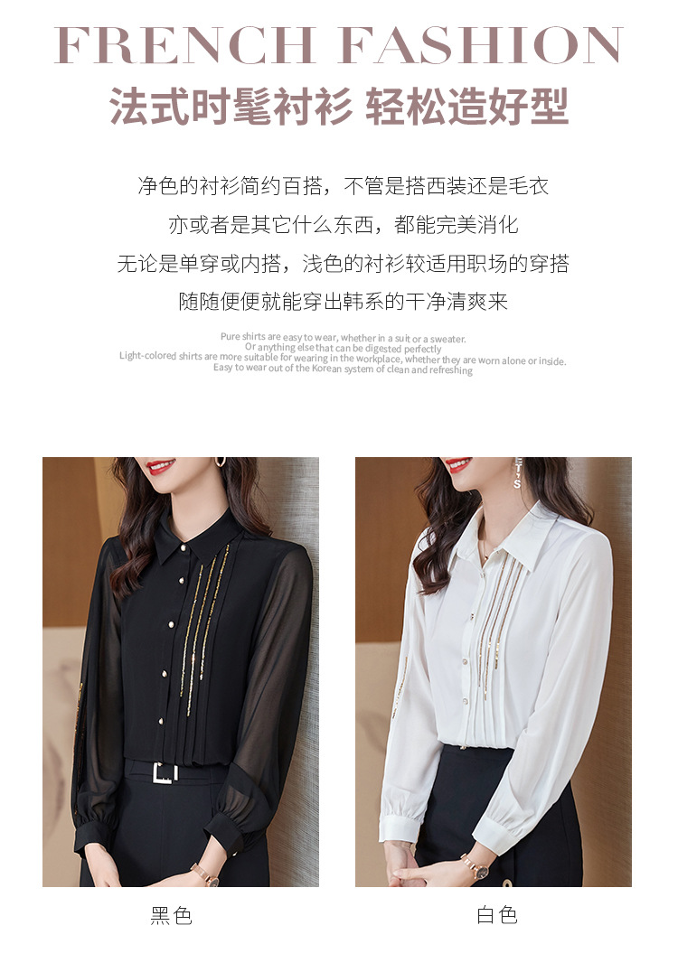 XZ-AL-651878535476秋季新款白色雪纺衬衫女设计感小众打底衬衣时尚洋气职业上衣