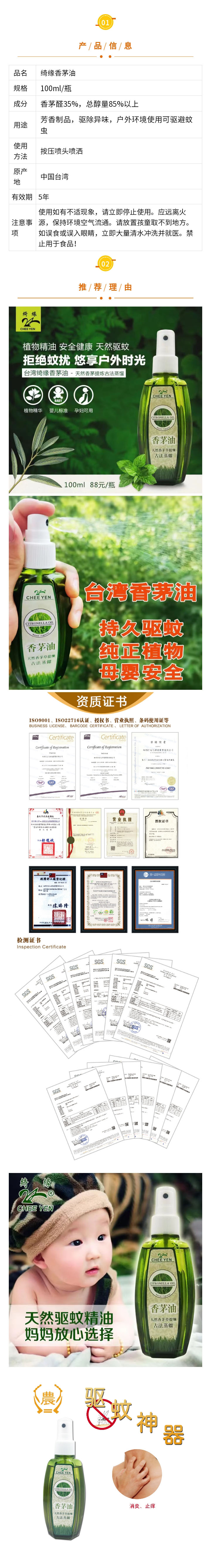 天然驱蚊水 绮缘香茅油(绿瓶)100ml/瓶