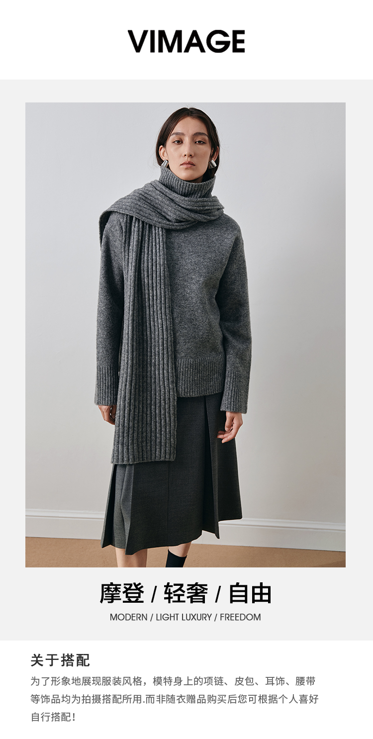 VIMAGE纬漫纪冬季新款时尚宽松舒适高领毛衣套头女上衣V2001610