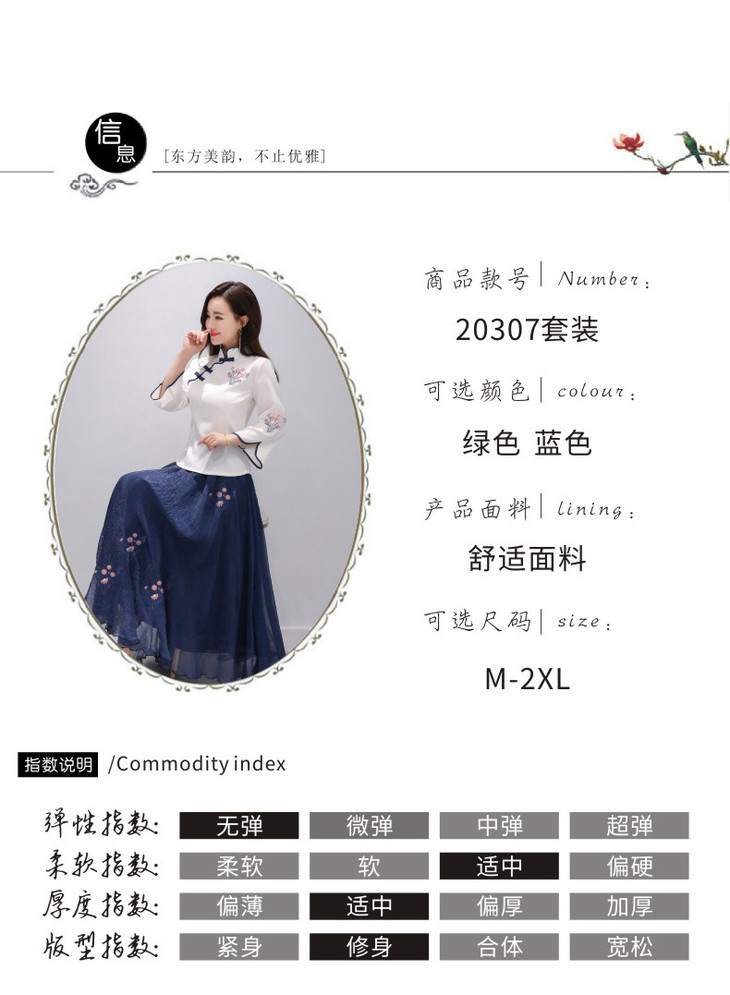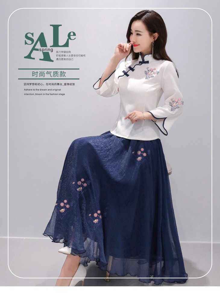 CQ20307时尚中国风文艺 复古绣花上衣+大摆裙 两件套