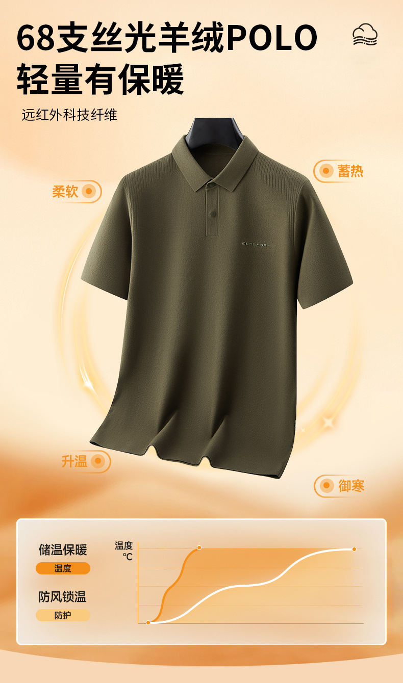 【丝光羊绒】【DKP】大依优型丝光羊绒云感POLO衫绵羊毛短袖男士秋季新款保暖时尚男大码针织POLO衫加肥丝光肥佬短袖毛衣7A抗菌