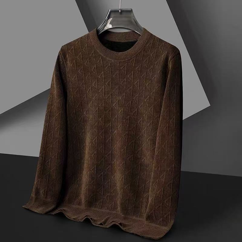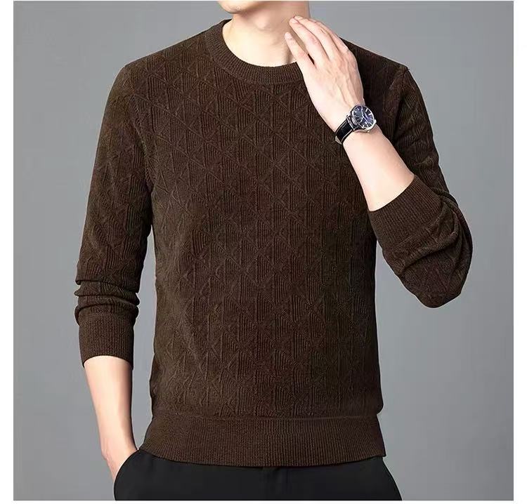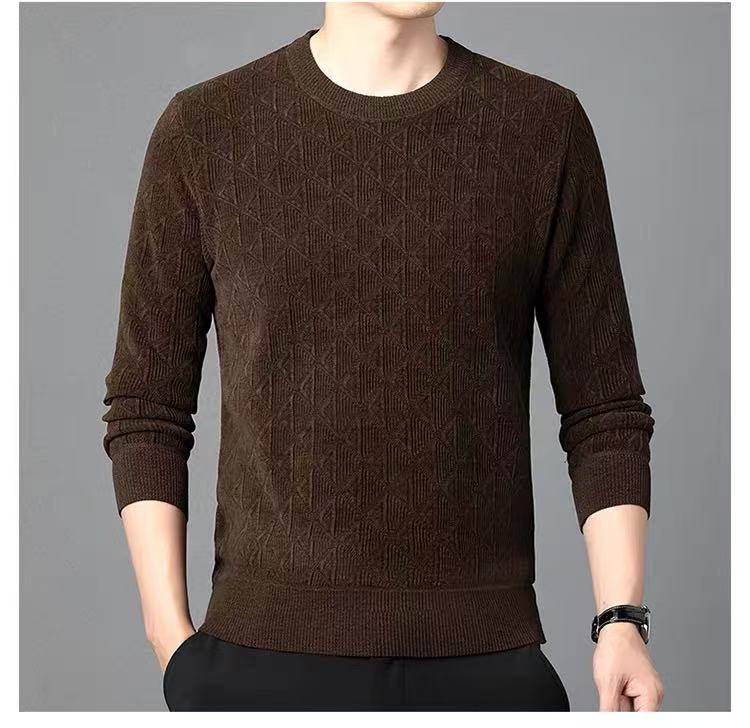【孤品捡漏】G54男款咖色雪尼尔加绒圆领针织衫-喜出