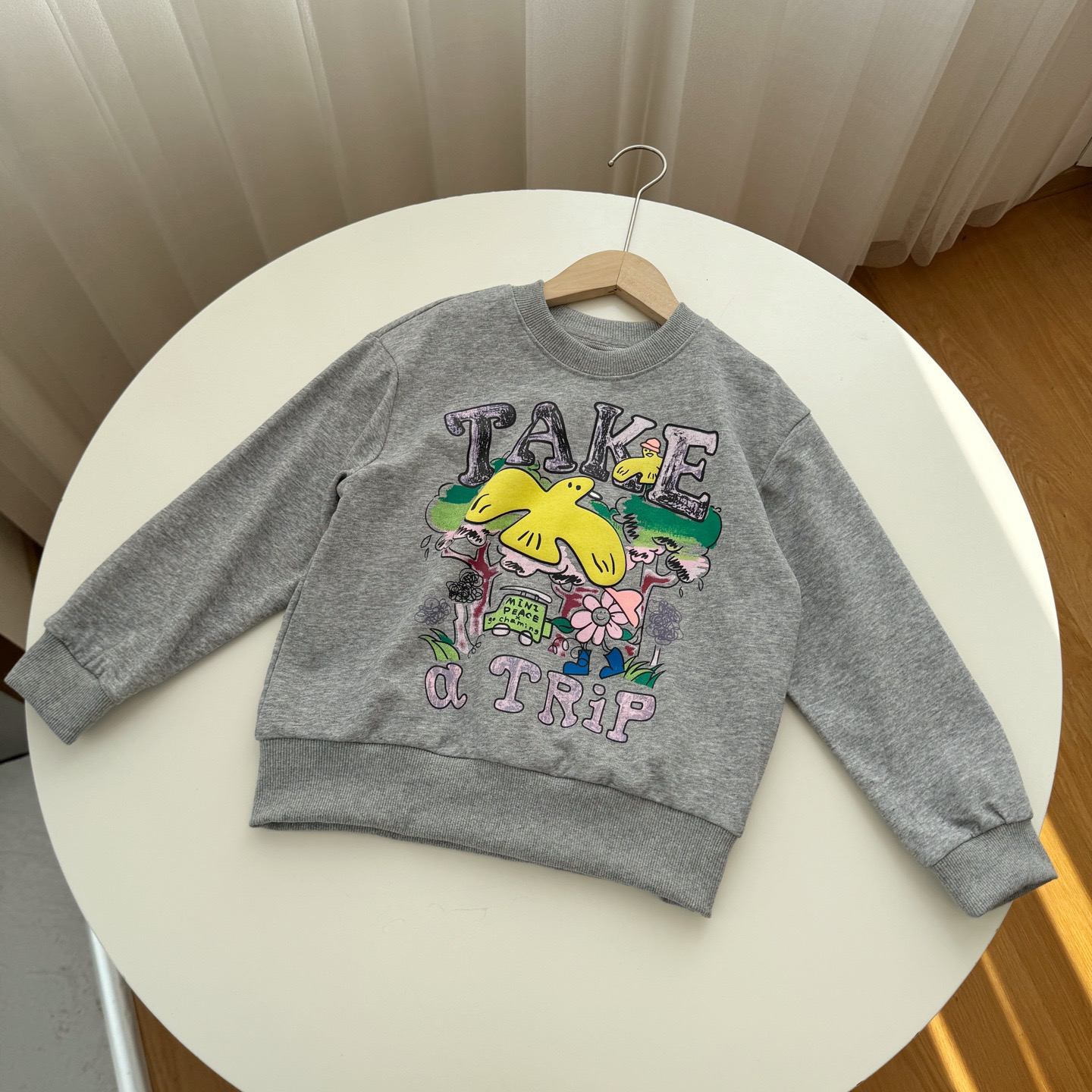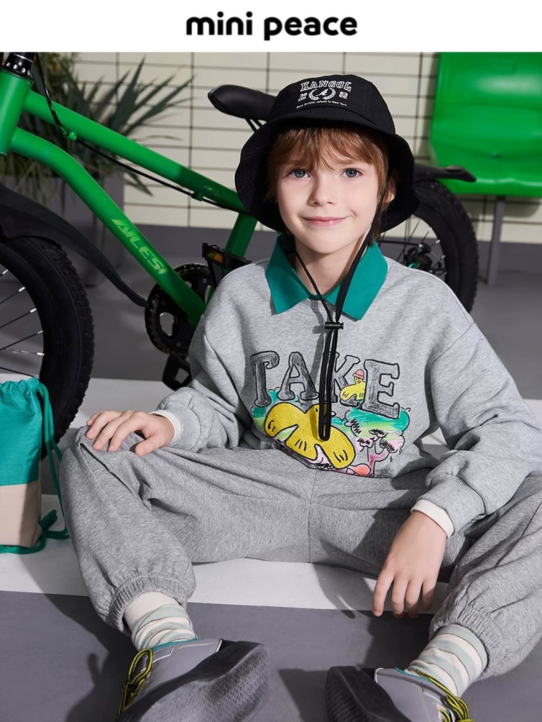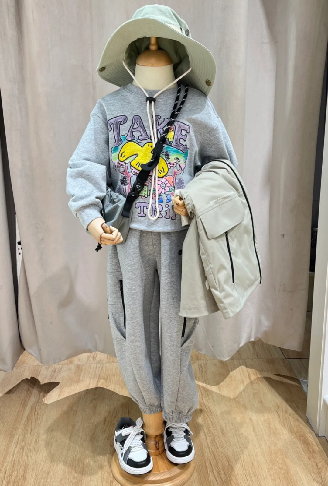 清新颜色搭配可爱的卡通图案,童趣十足,瞬间唤醒春日气息!尺码:120-160!