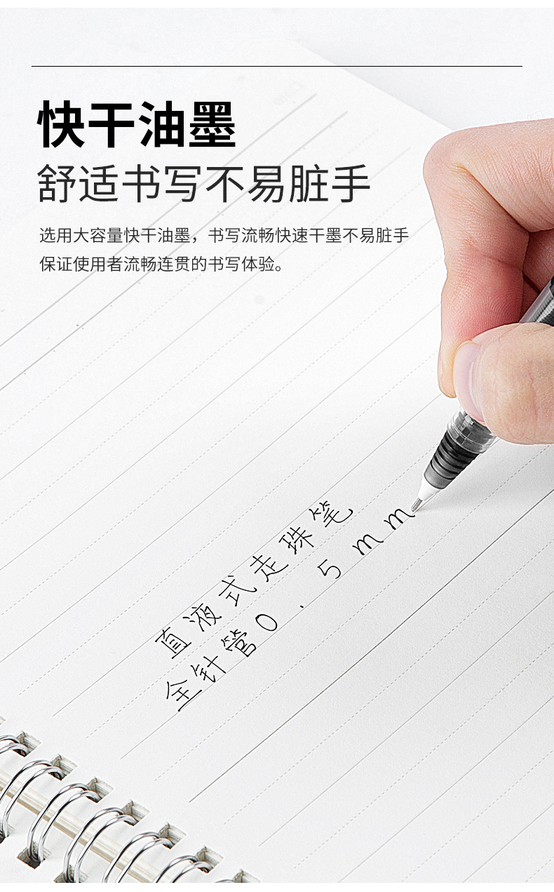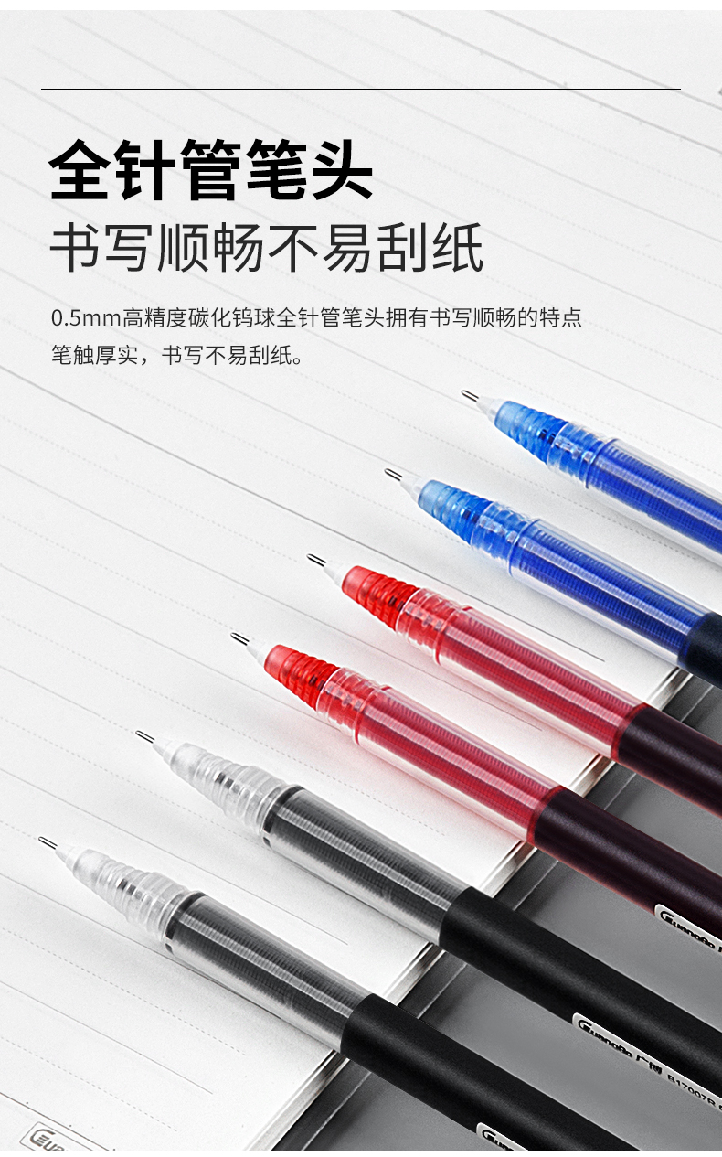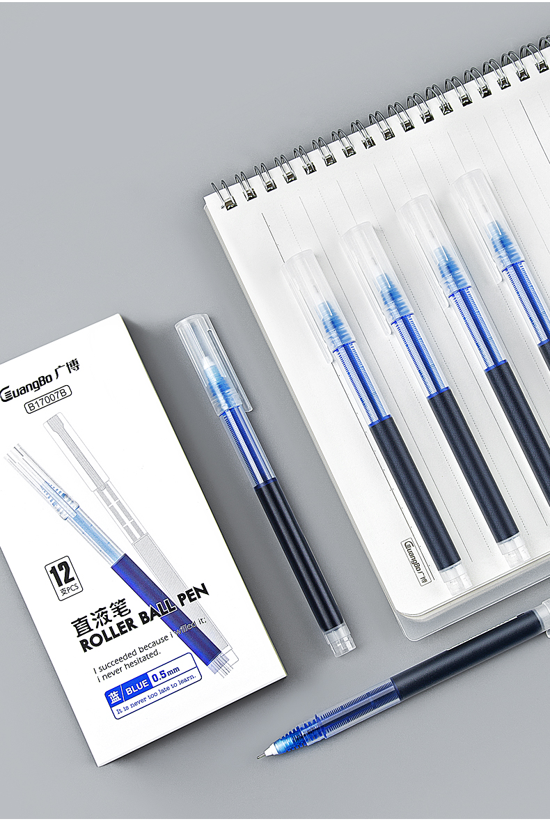 【广博】中性笔ins日系直液式走珠笔黑色笔学生用签字碳素水性笔子弹头速干手账笔练字针管圆珠笔油原子笔记