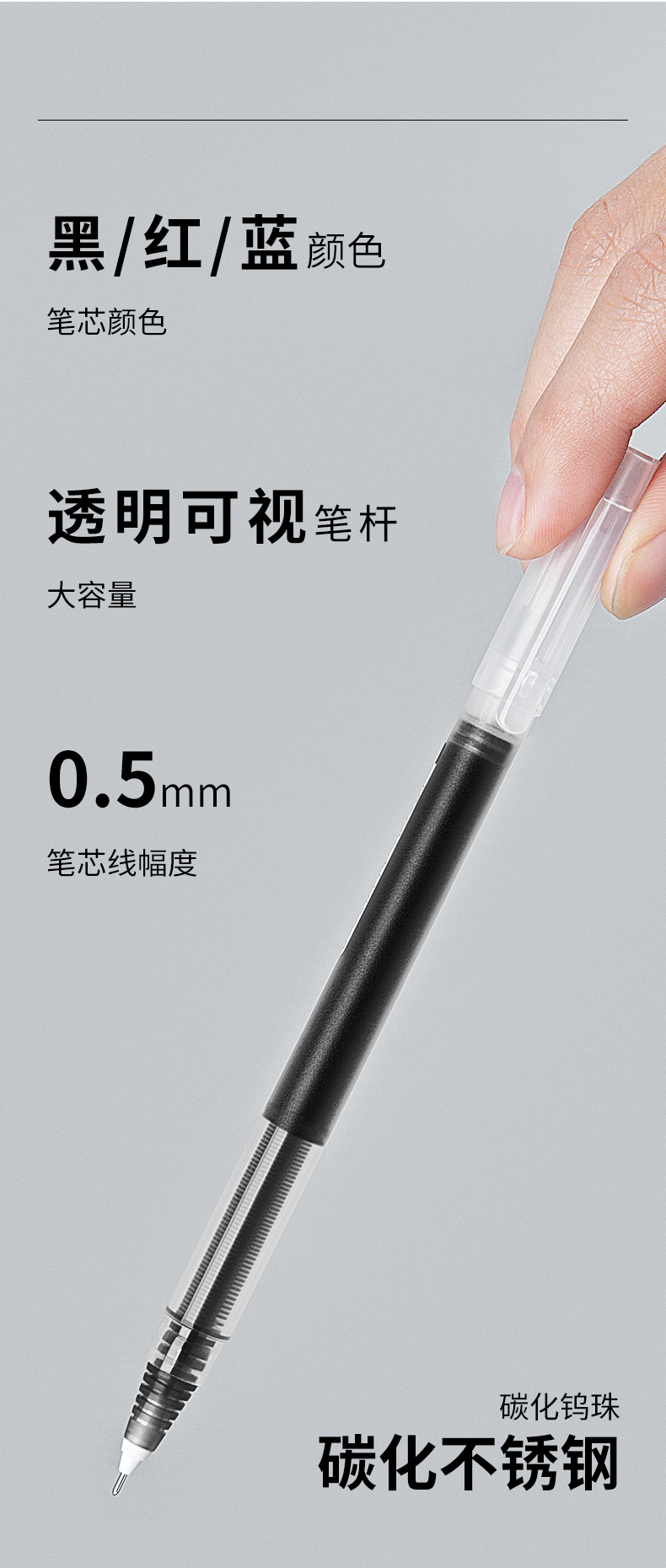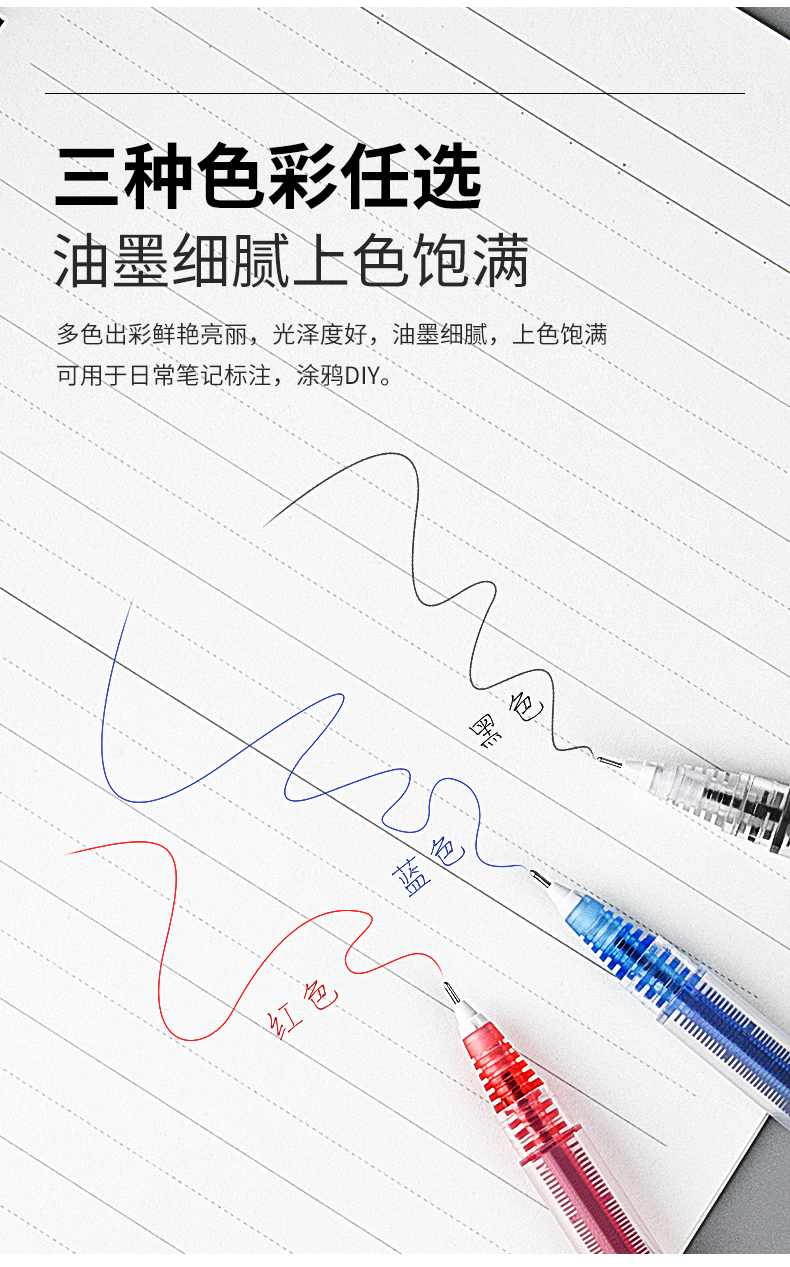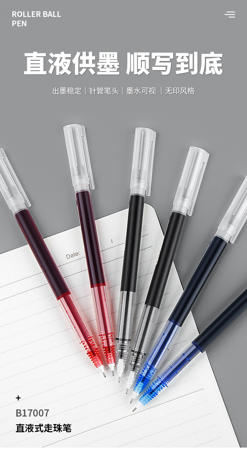 【广博】中性笔ins日系直液式走珠笔黑色笔学生用签字碳素水性笔子弹头速干手账笔练字针管圆珠笔油原子笔记