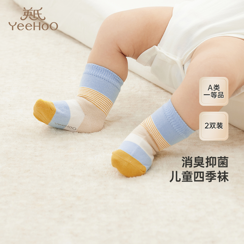 【老带新拼团19元】英氏儿童袜子夏季透气男童女童袜子两双装四季短袜