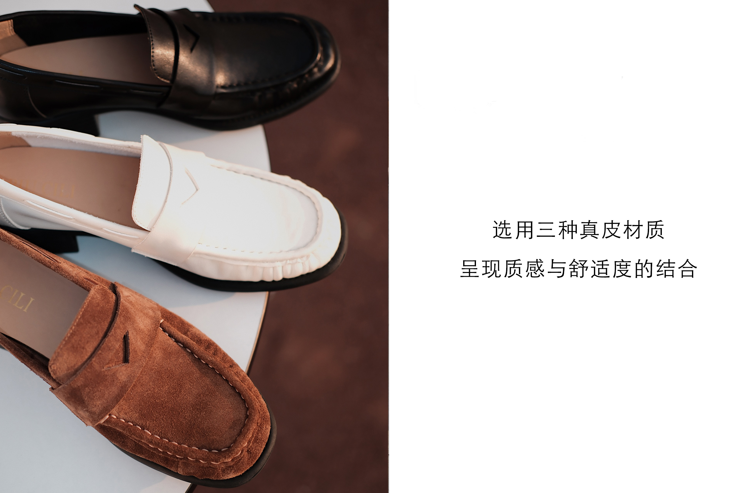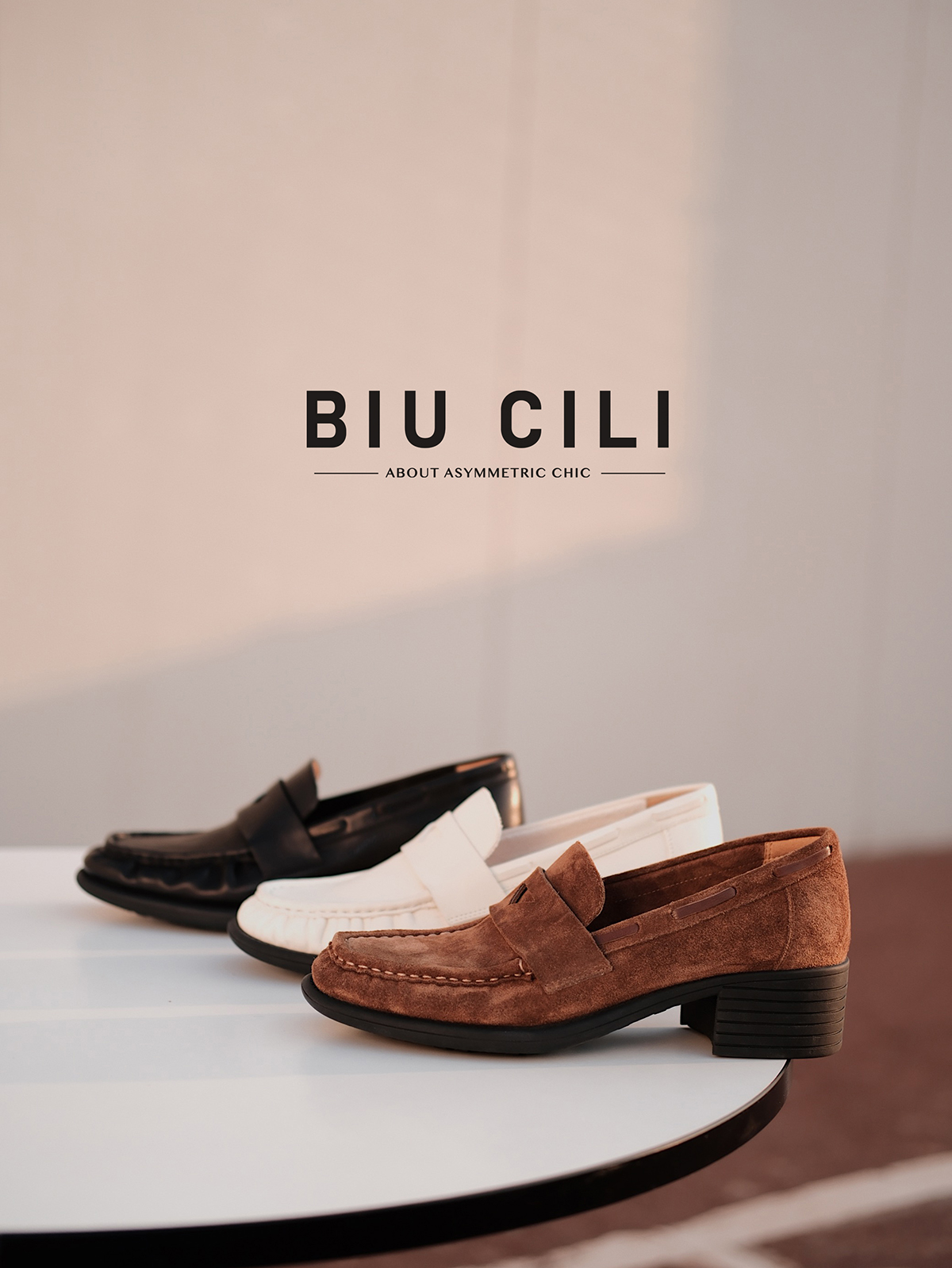 BIUCILI 优雅多色中跟复古百搭基础款粗跟乐福鞋