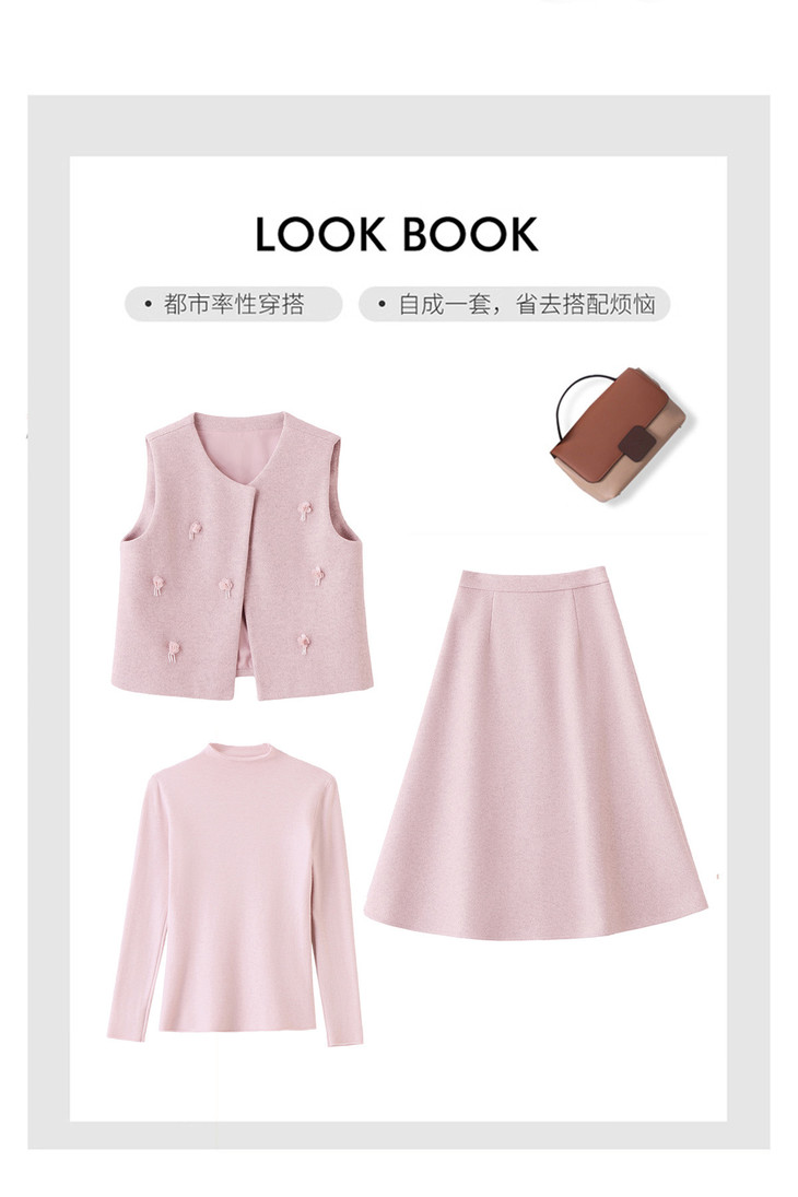 【预售7天】时尚套装2026春季新款小香风马甲+打底衫+半裙三件套裙 XM111 商品图3