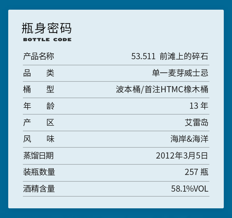 【SMWS】 53.511 前滩上的碎石 13年 单一麦芽 威士忌