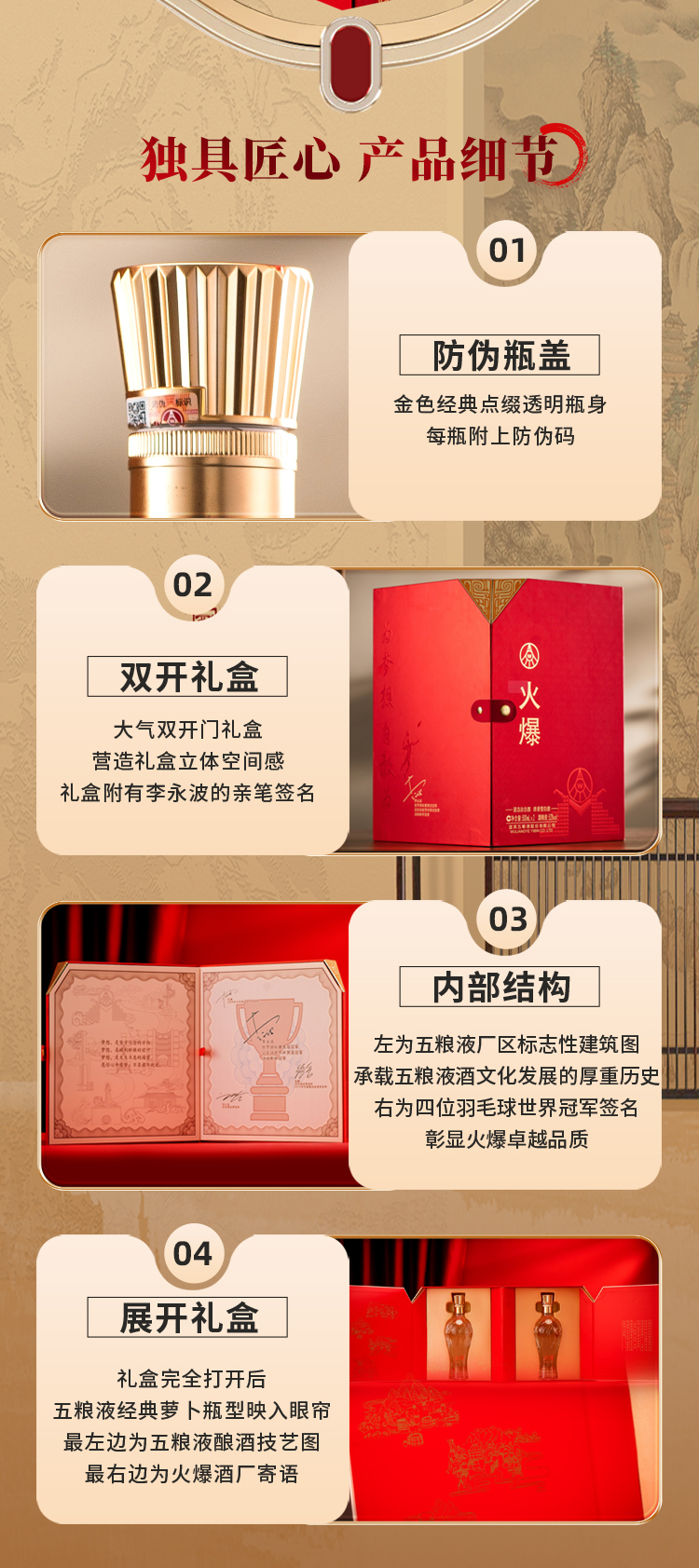 【自营嫡系 酒花绵密 入口甘美】五粮液火爆荣光礼盒52%vol浓香型(500ml*2)李永波领衔四位世界冠军联名限定