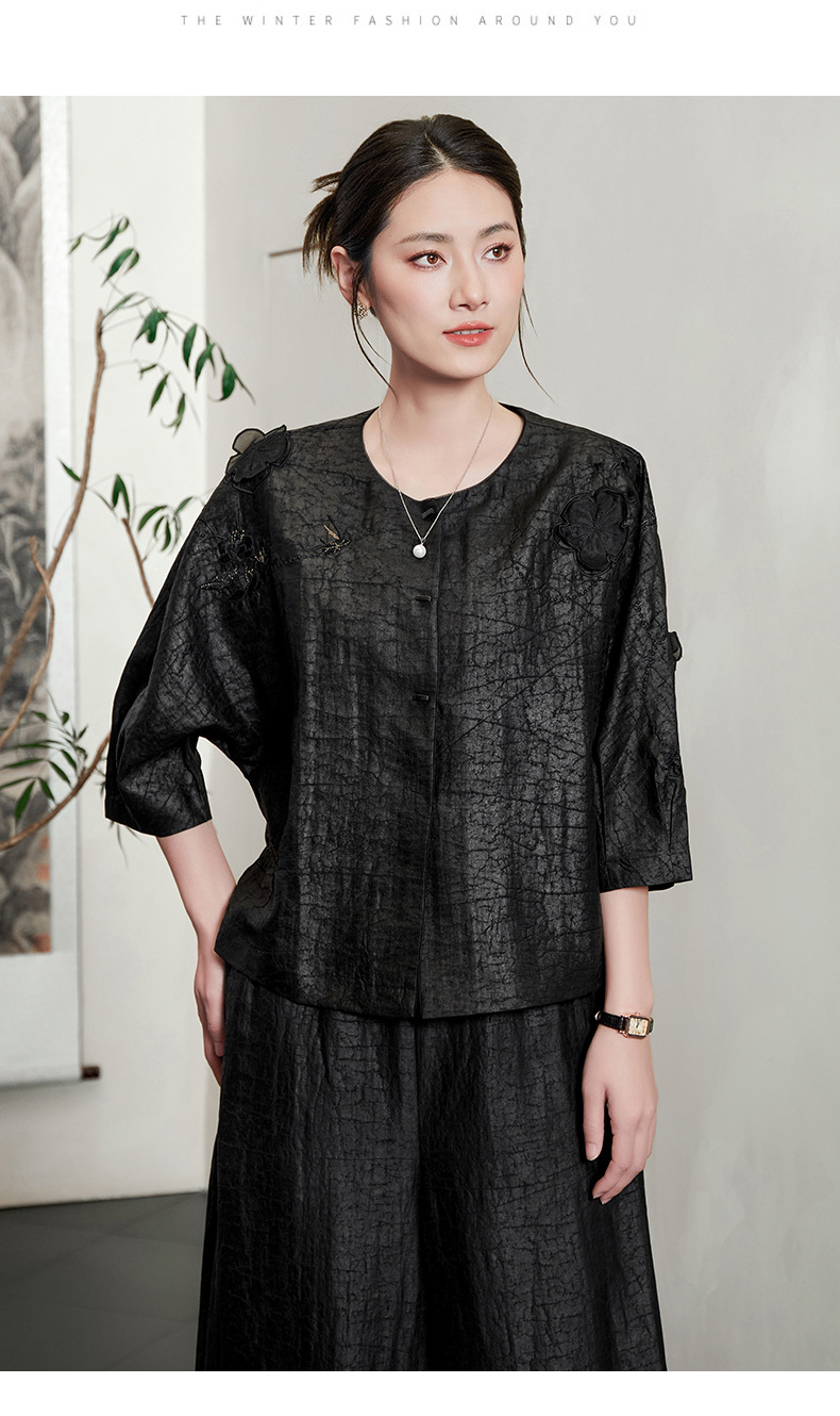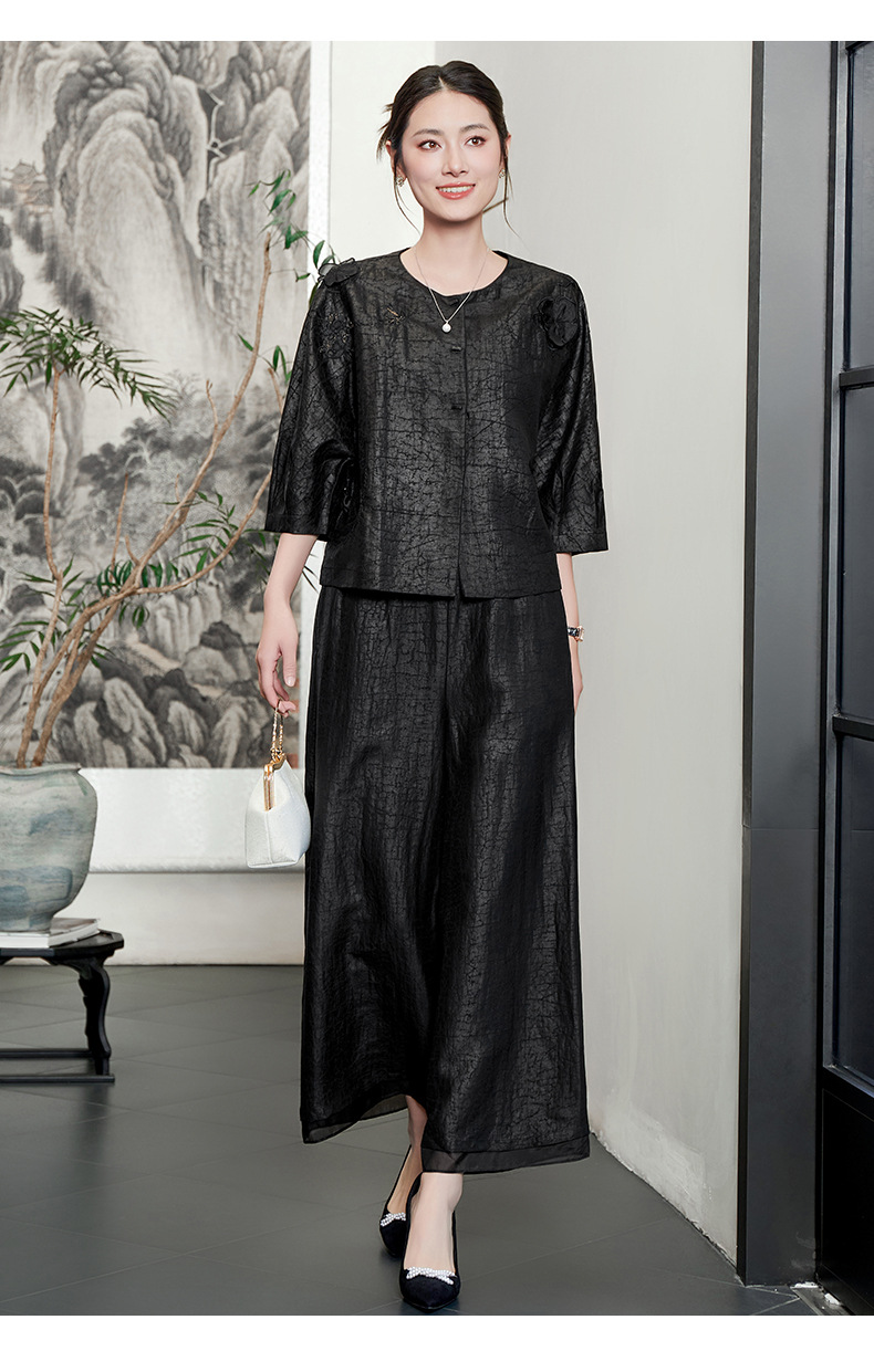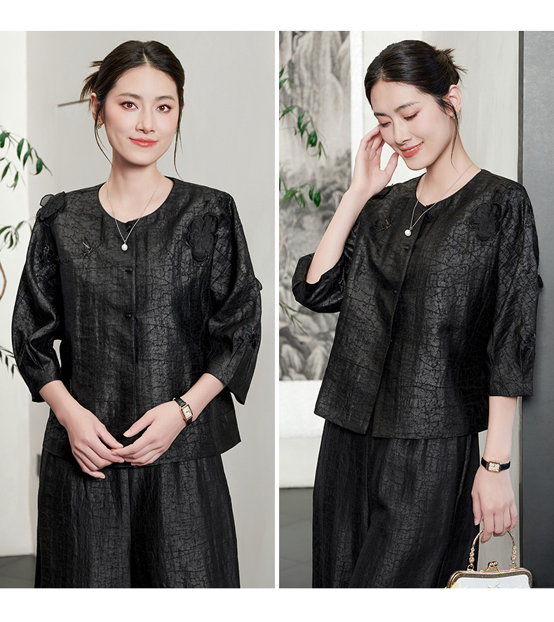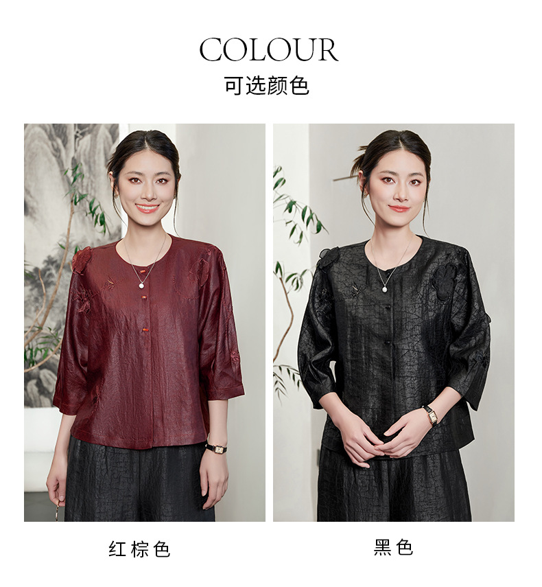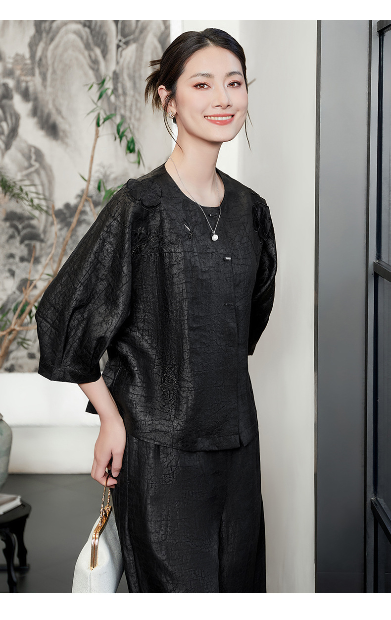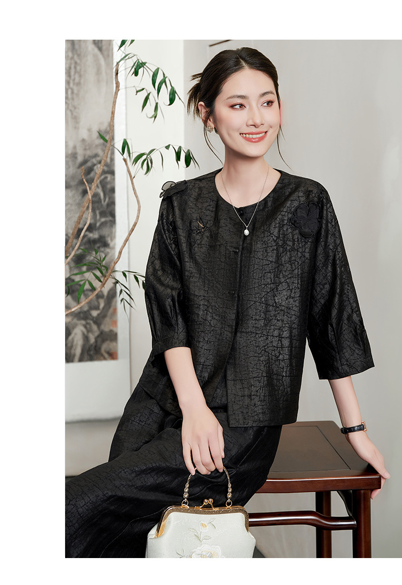 KQ-54822+54816香云纱真丝上衣女品牌两件套装桑蚕丝中式唐装2025新款七分袖夏季