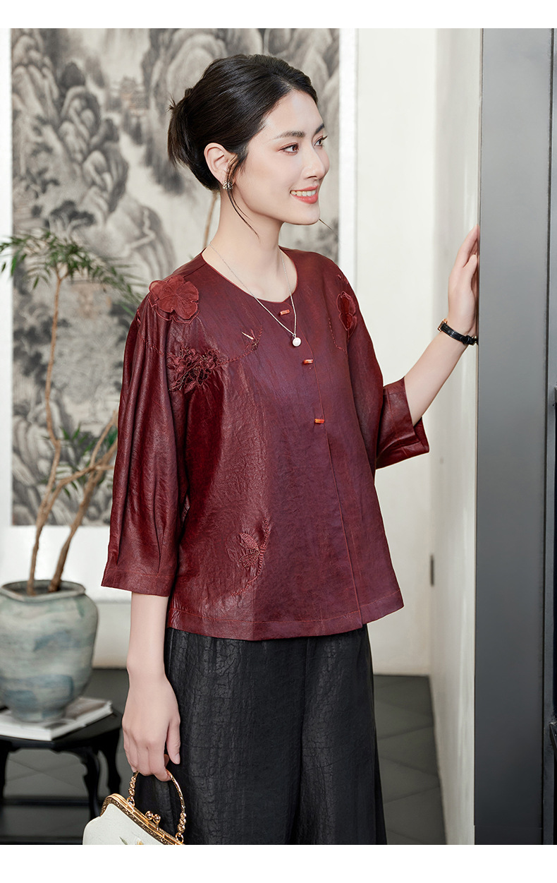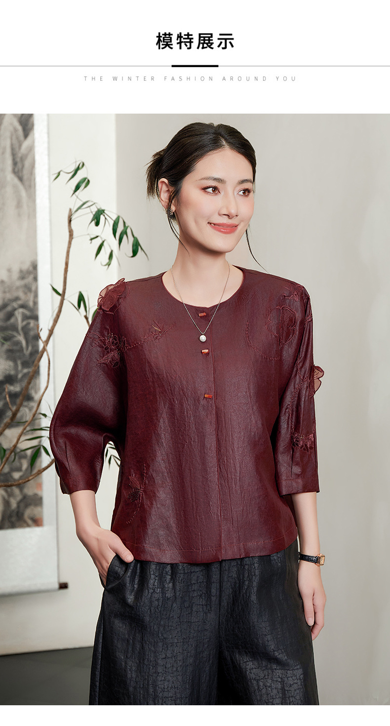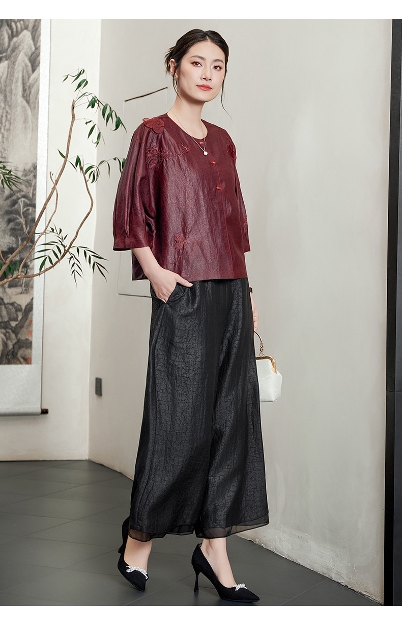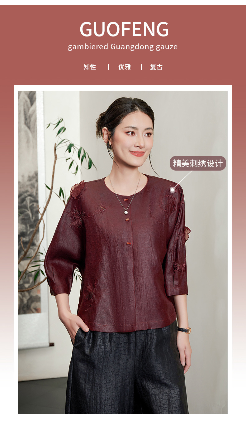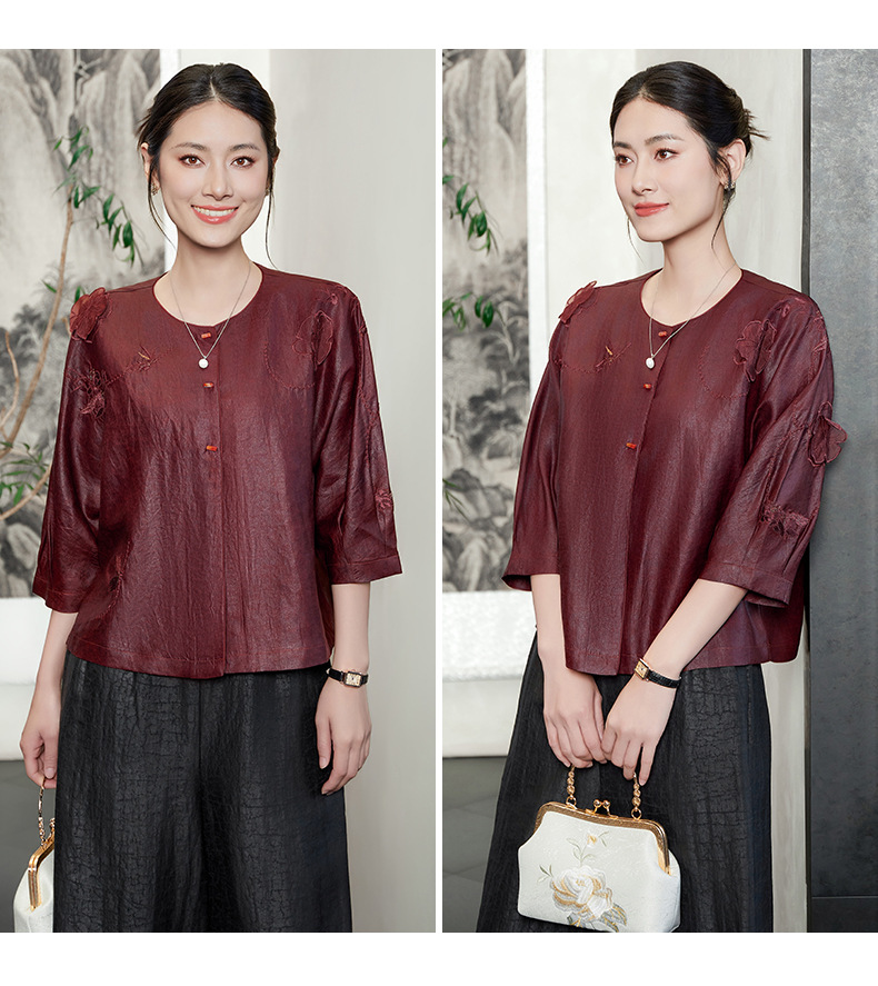 KQ-54822+54816香云纱真丝上衣女品牌两件套装桑蚕丝中式唐装2025新款七分袖夏季