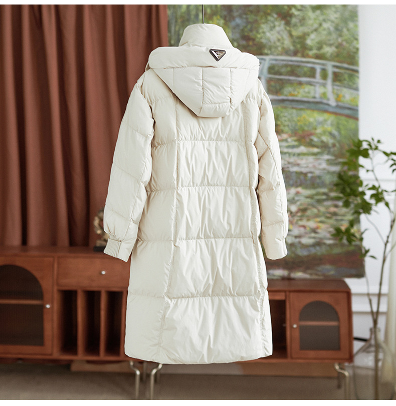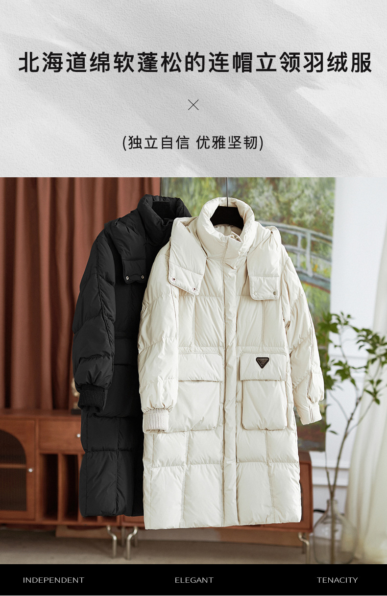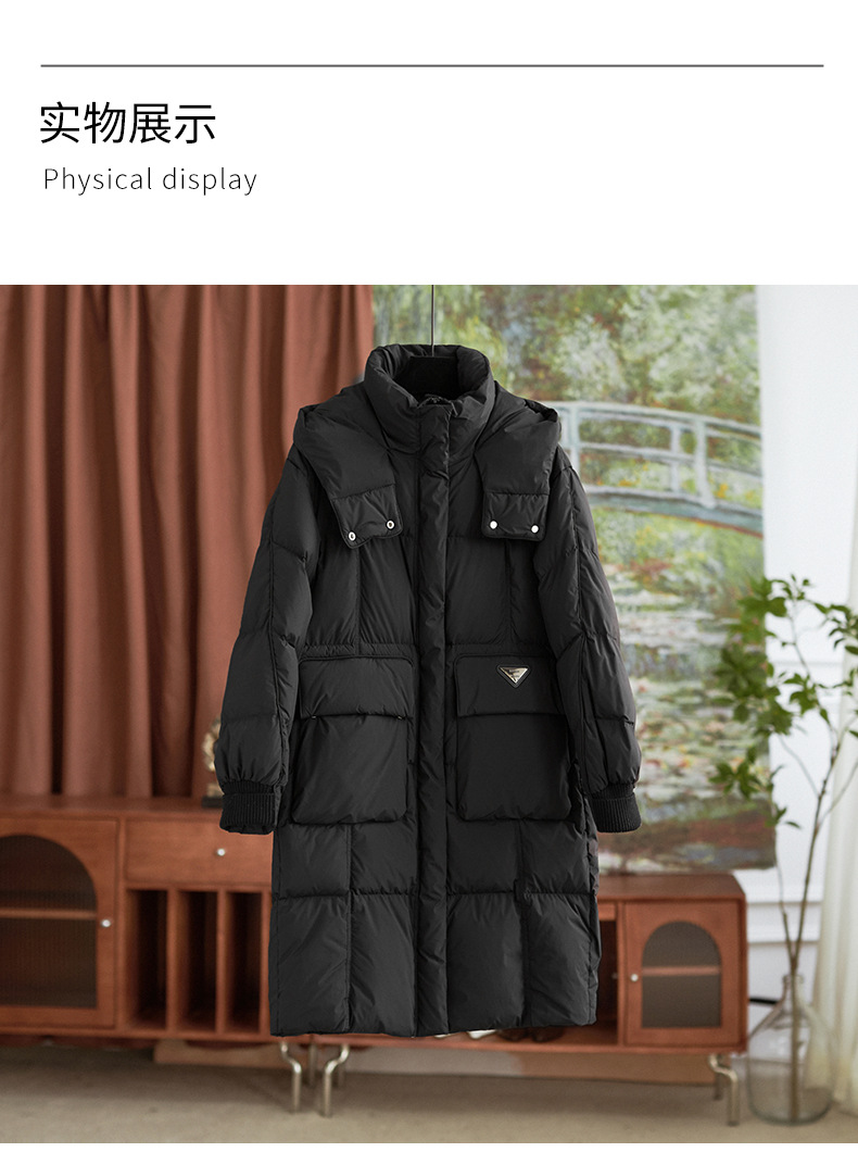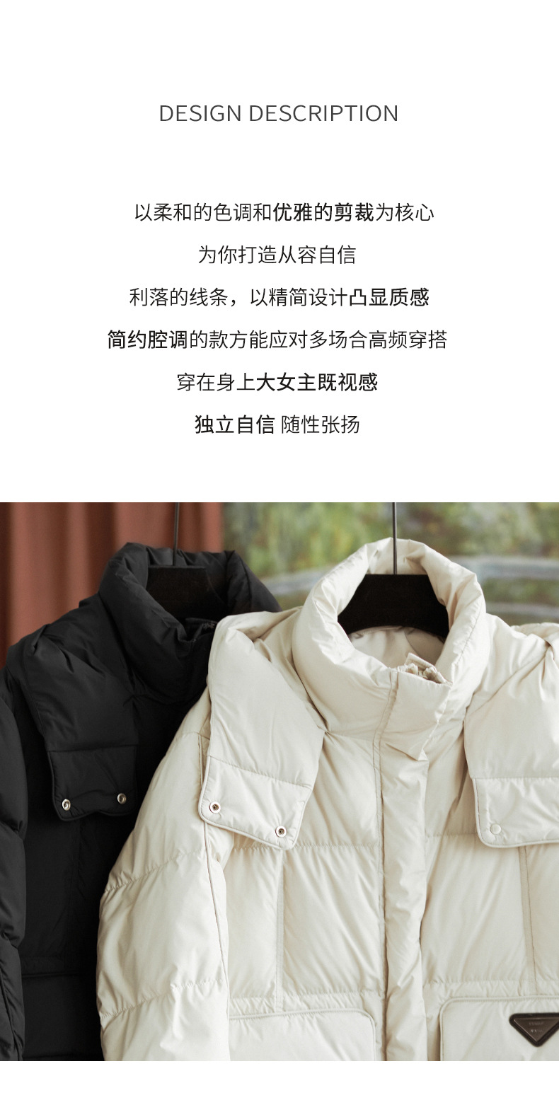 【高货wl】全新升级【铂金会员717/天猫969/差价252】(03619) 洛诗琳保暖羽绒服高级感连帽90白鸭绒中长款加厚面包服