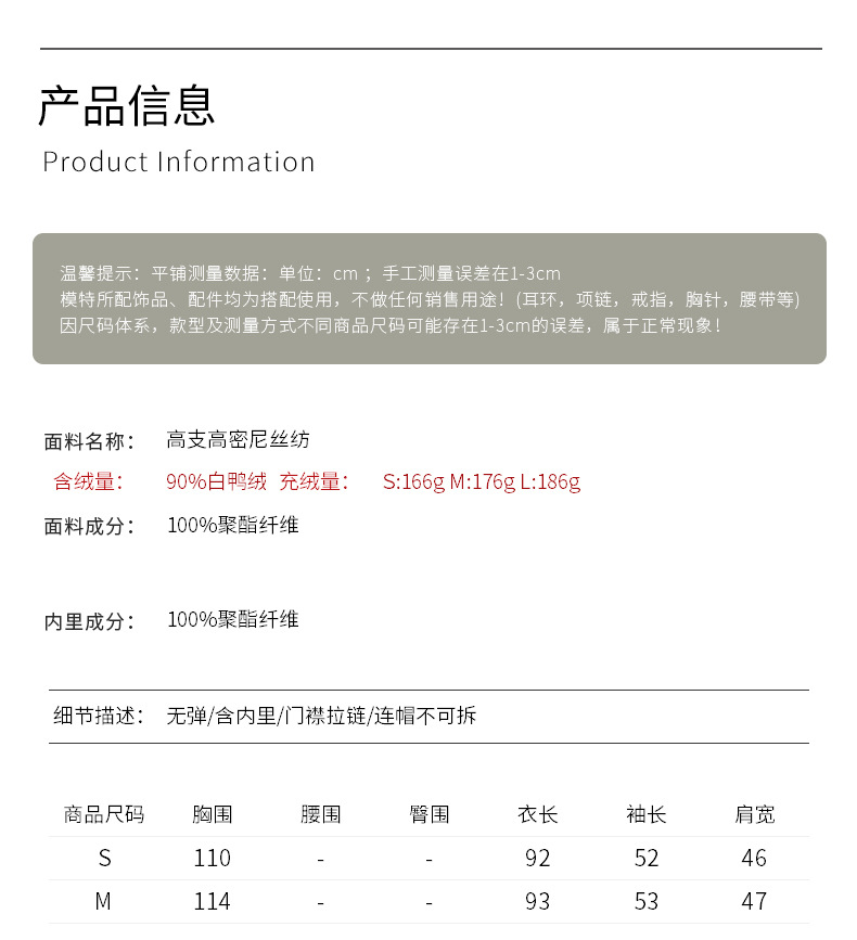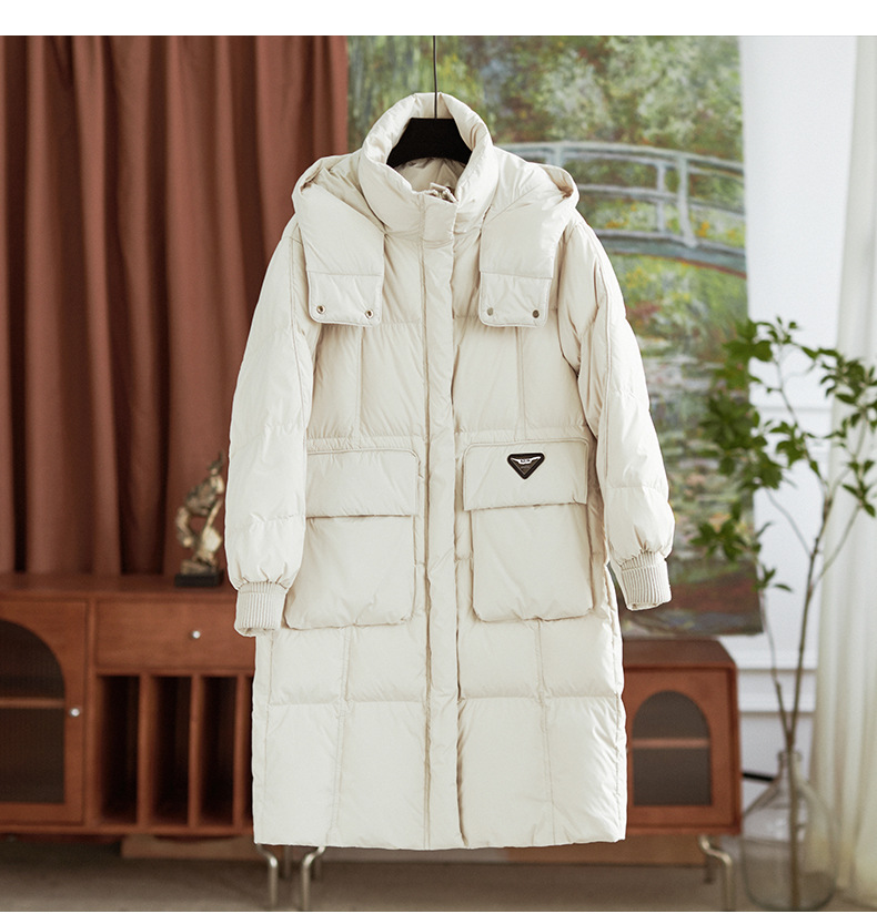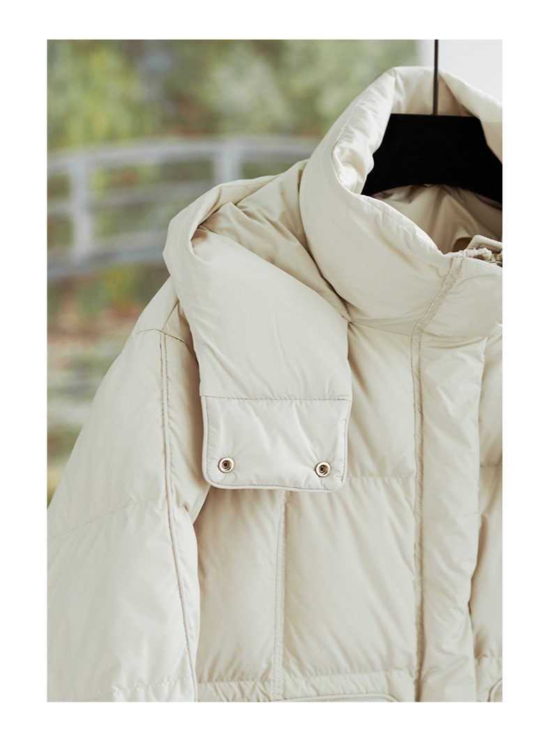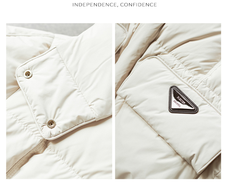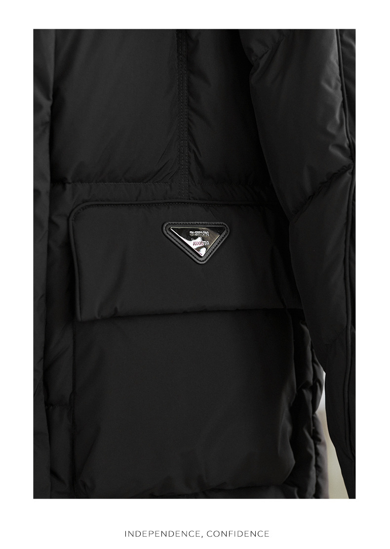 【高货wl】全新升级【铂金会员717/天猫969/差价252】(03619) 洛诗琳保暖羽绒服高级感连帽90白鸭绒中长款加厚面包服