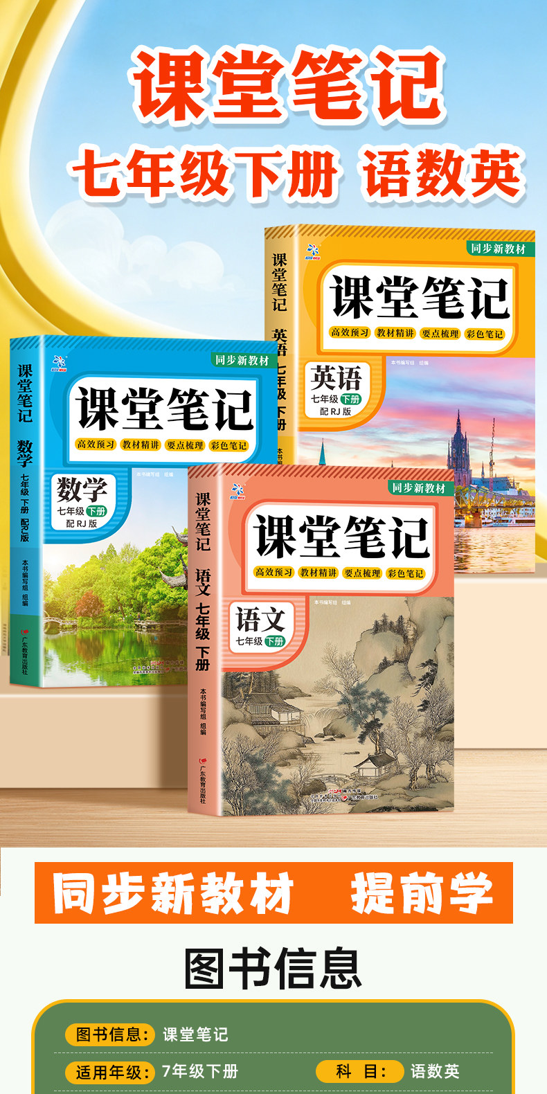 2026春初中课堂笔记语文数学英语七八年级下册任选初中同步课本新教材书全解预习详解广东教育出版社