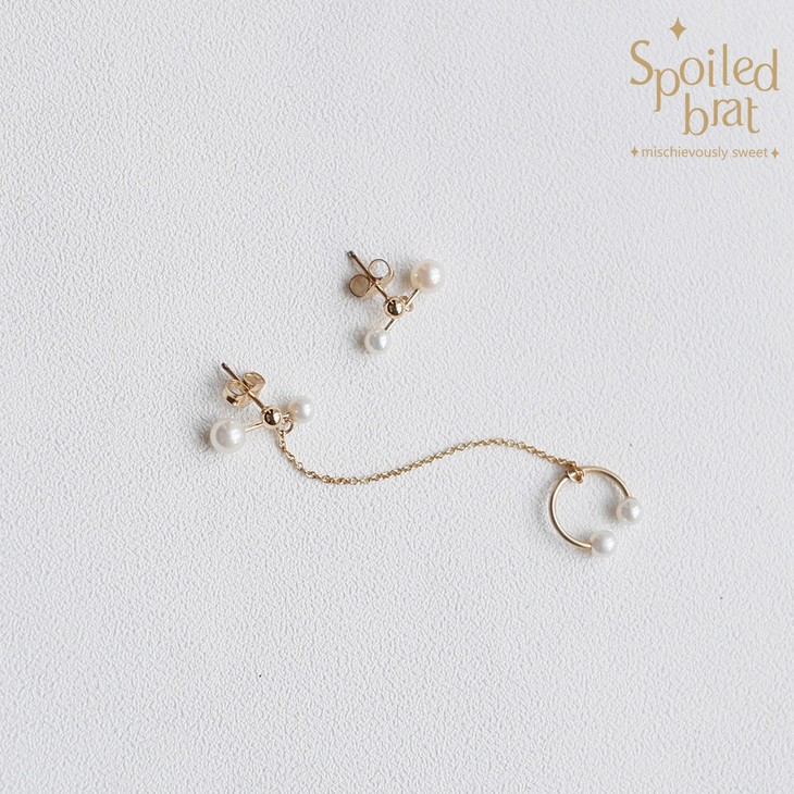 SpoiledBart Jewelry 14K注金 天然珍珠 小哑铃耳骨夹