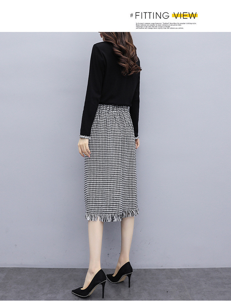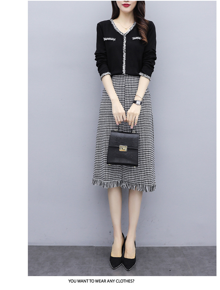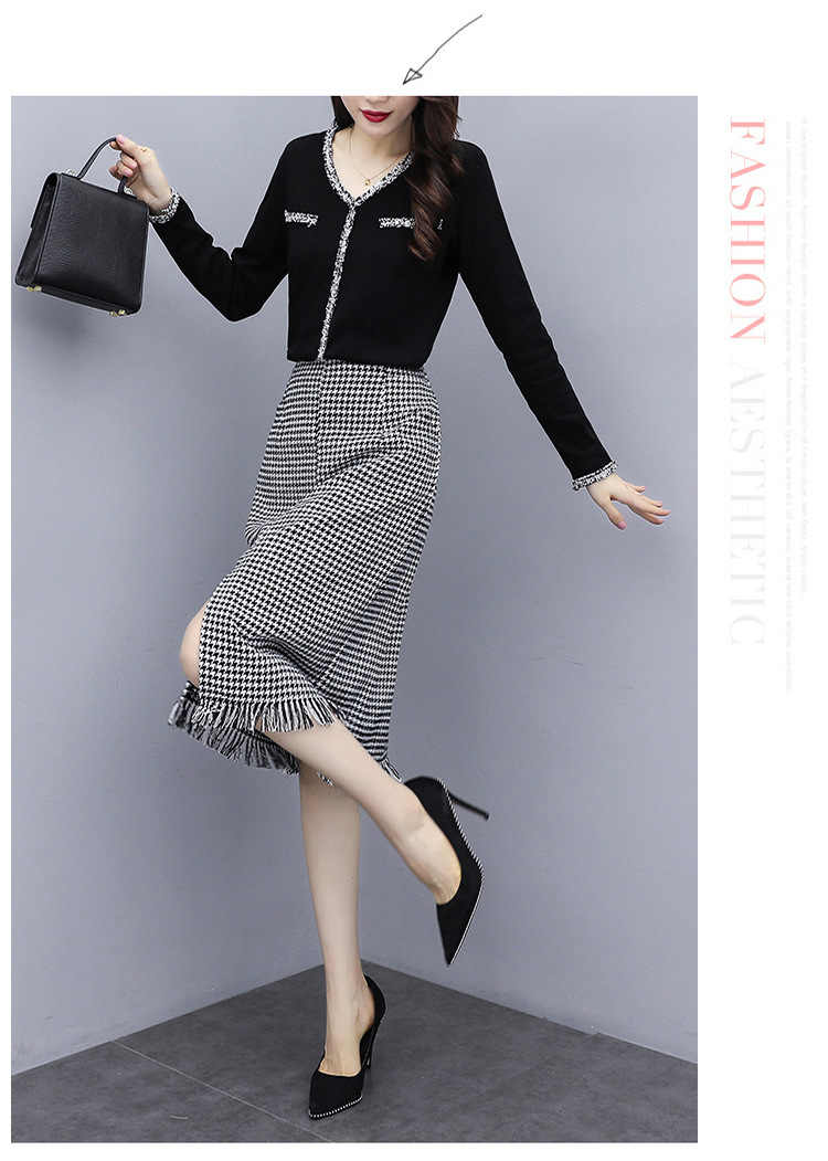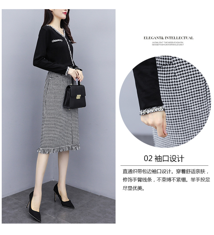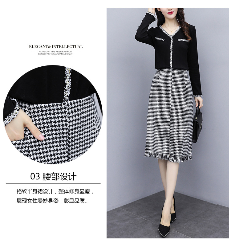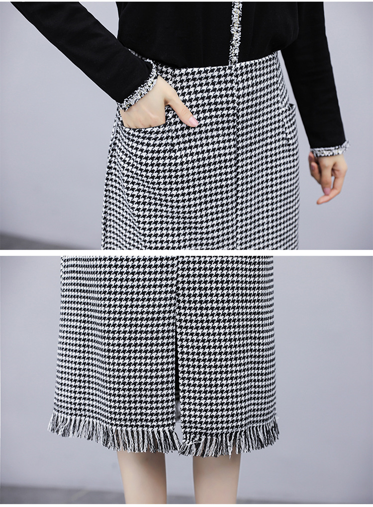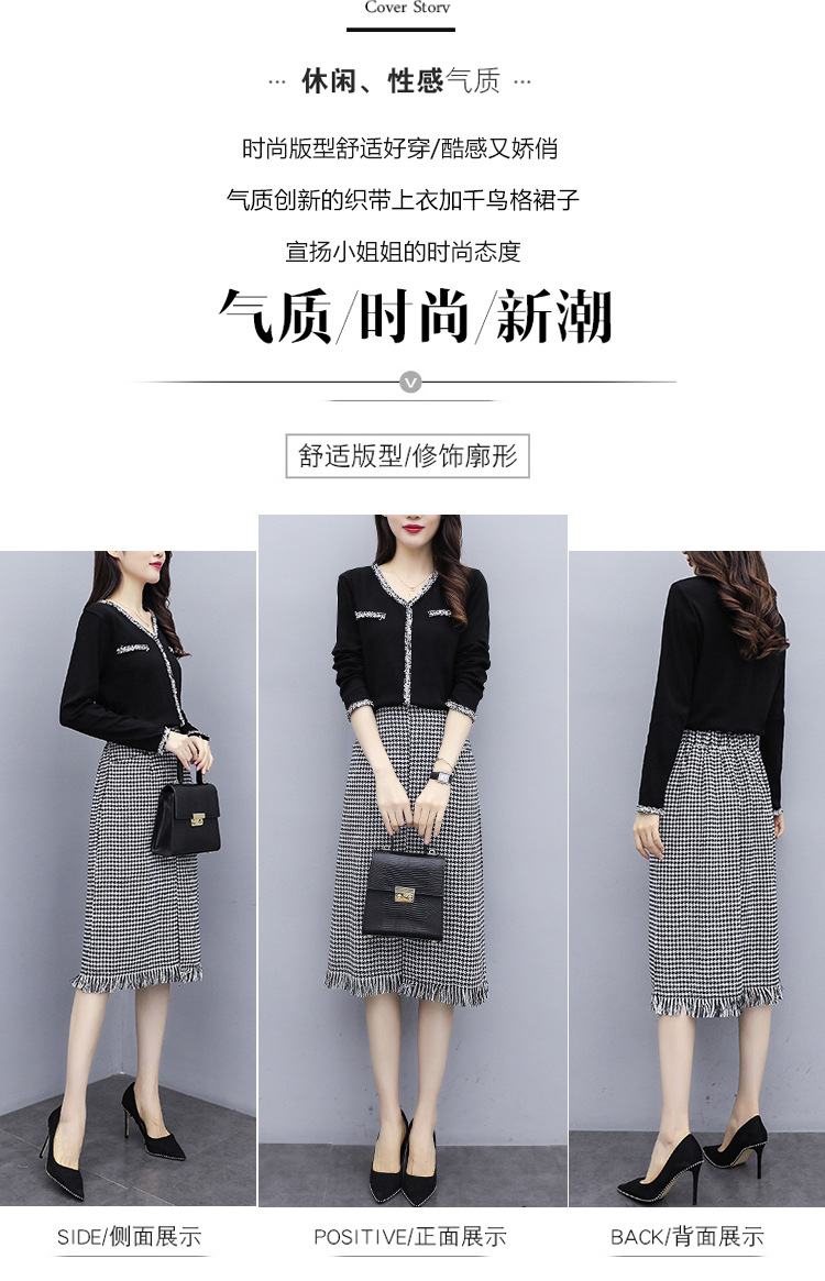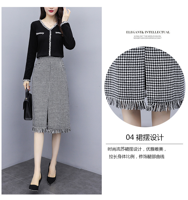 GZM-rqdm5232秋冬新款大码时尚套装小香风上衣流苏千鸟格毛呢半身裙两件套 商品图4