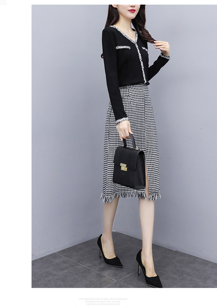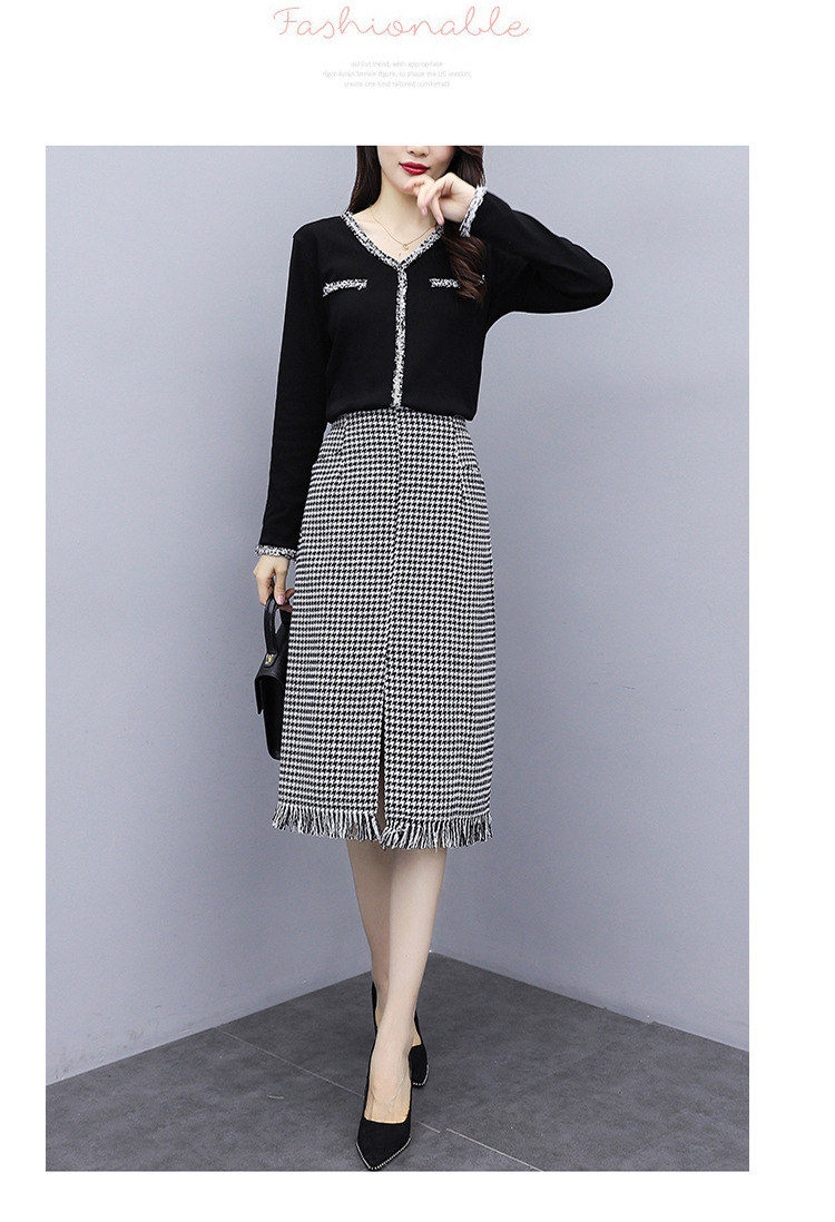 GZM-rqdm5232秋冬新款大码时尚套装小香风上衣流苏千鸟格毛呢半身裙两件套 商品图3