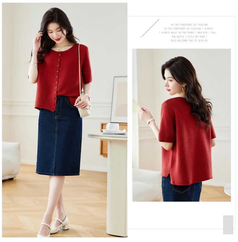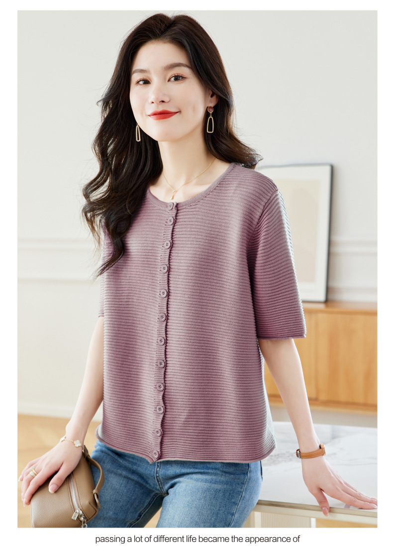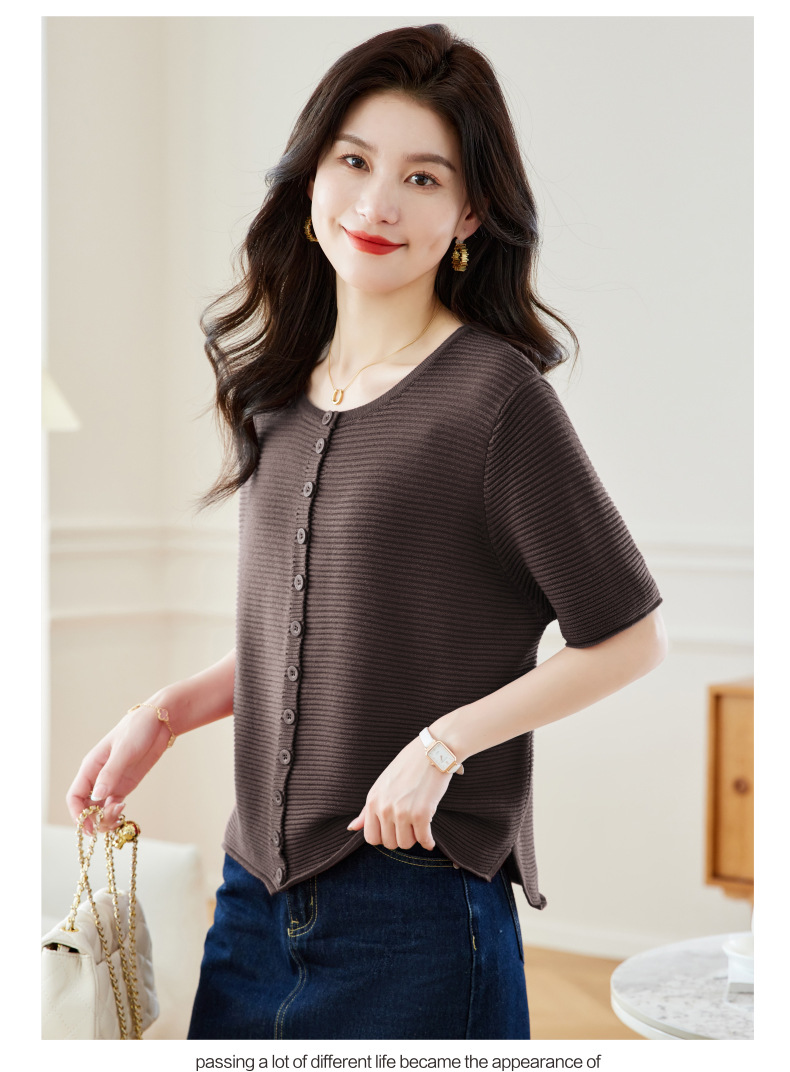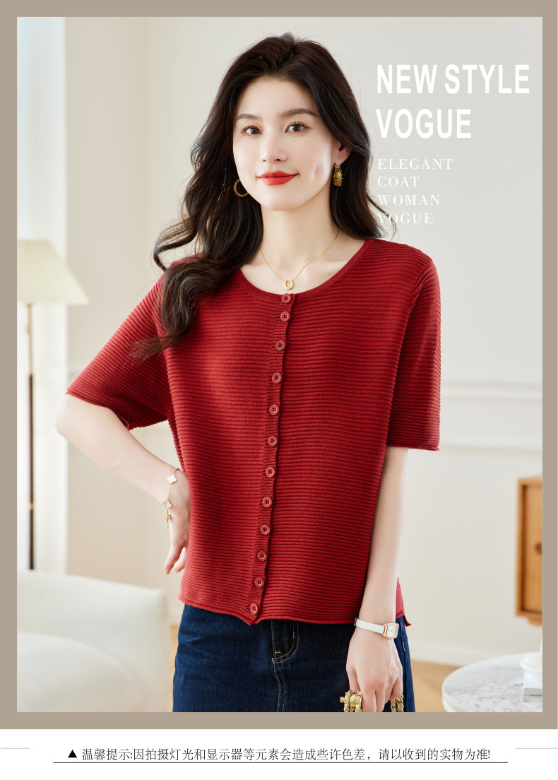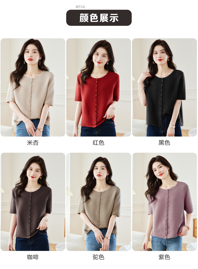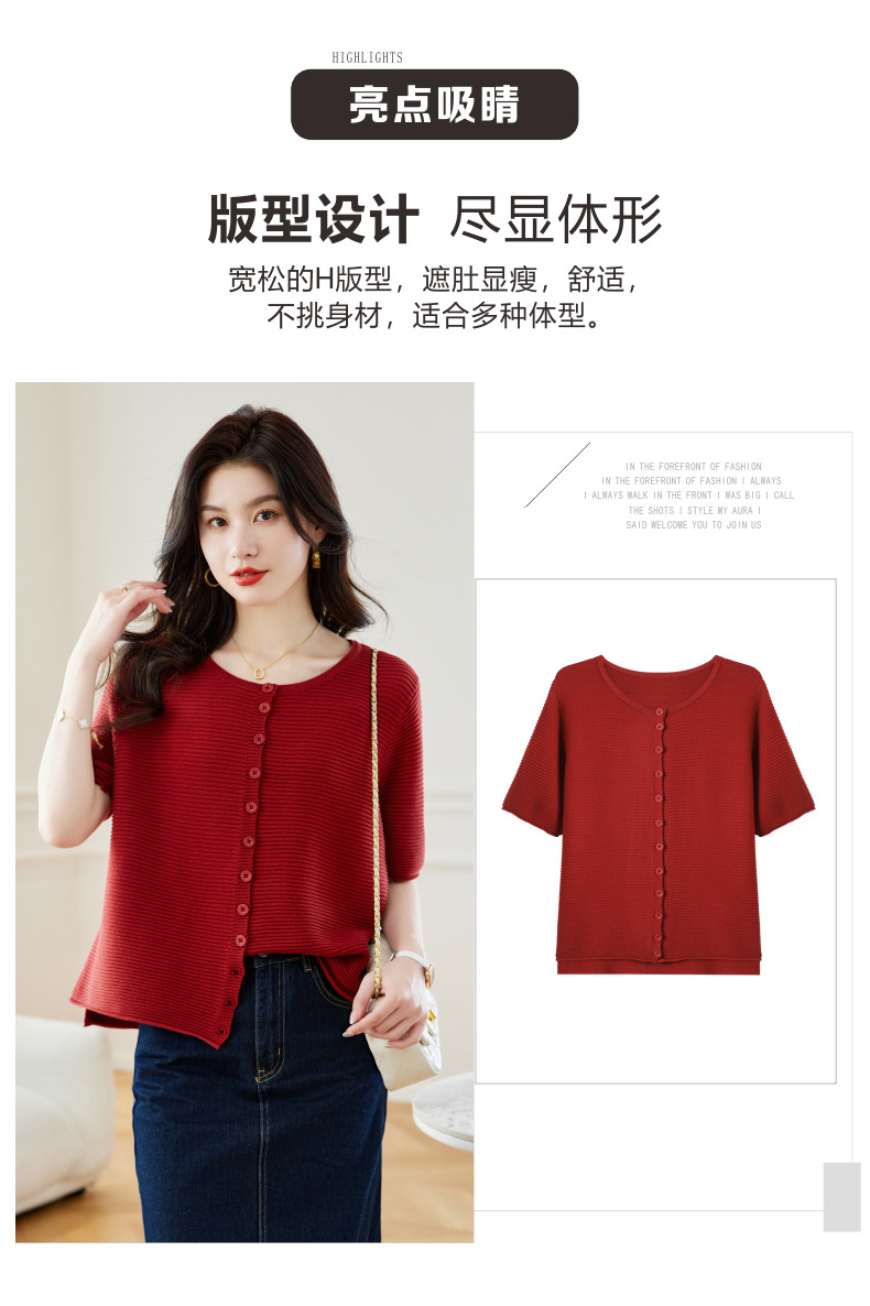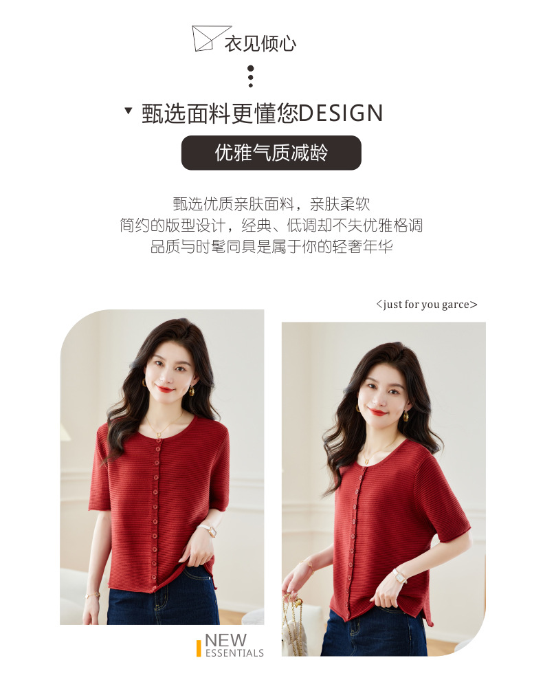 CC17-19762024新款圆领夏装短袖T恤妈妈针织衫宽松中老年显瘦遮肚子上衣女